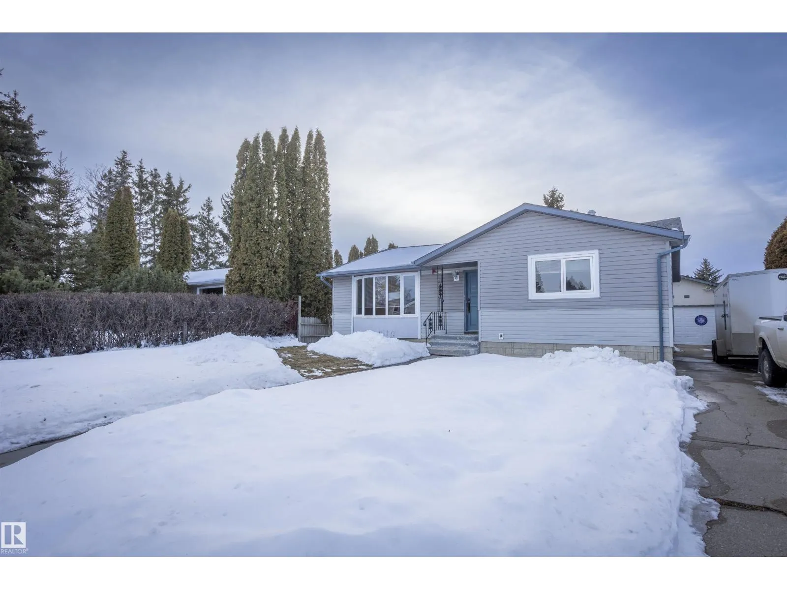 Tired of hunting for a home that fits your vehicles, work trailer, boat, RV, and all the toys, at a price that makes sense? This could be it! Sprawling front driveway off the main road + double car garage + back alley access = endless parking/storage options. Incredibly rare at this price point! Inside, a generous 3-bedroom bungalow awaits: oversized bedrooms, open main floor layout and a large kitchen boasting plenty of storage and countertop space. Basement is partially finished and ready for your personal touches. Backyard entertainer's dream: huge 2-tiered covered deck steps right off the kitchen, with still-plenty of green space despite the parking perks. Quiet location, close to everything Spruce Grove offers. The parking and storage of this property elevates it to Unicorn status and will make someone very happy. (id:27476)
