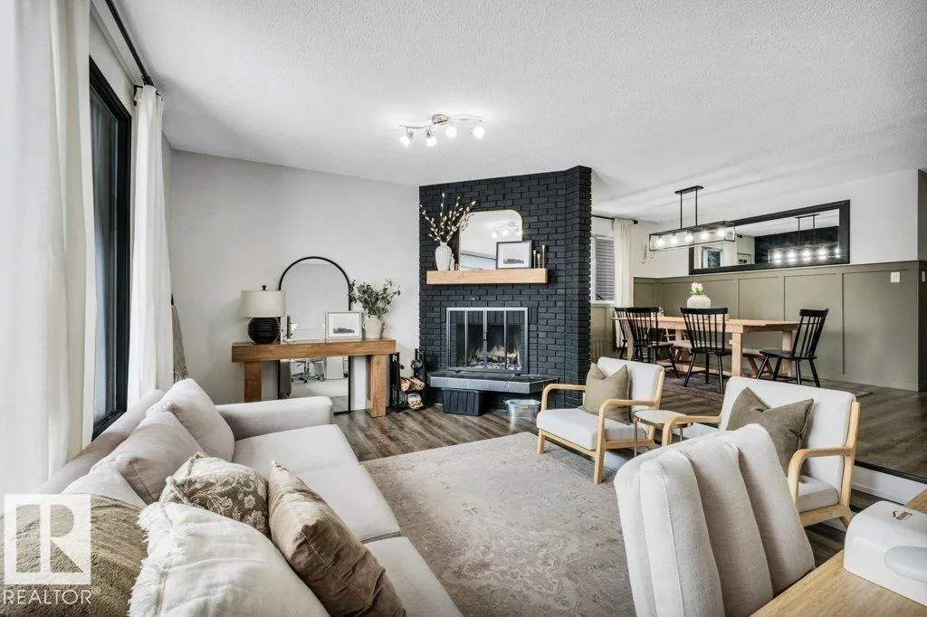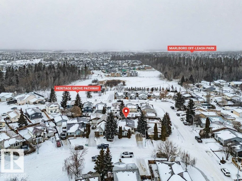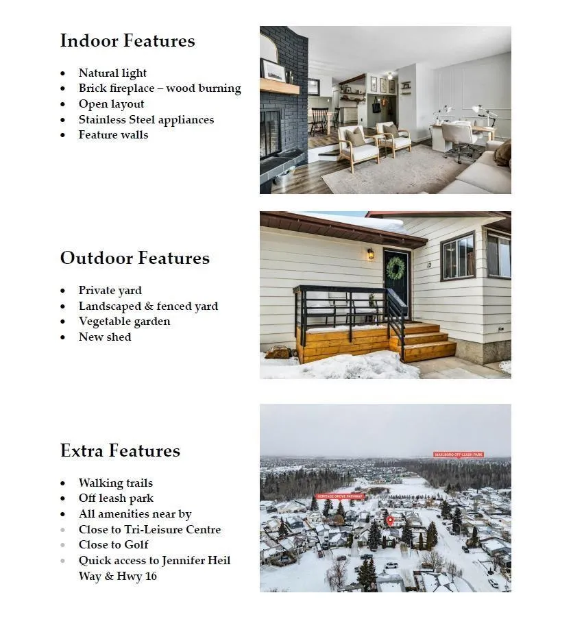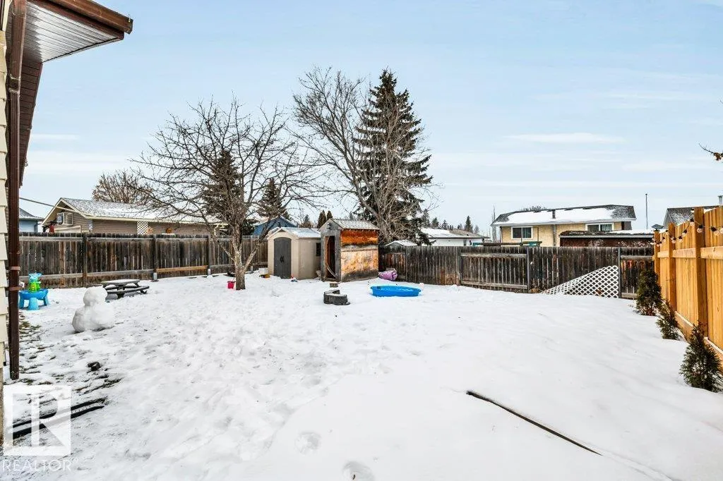 Welcome to this well-maintained 3-bdrm, 3-bath bungalow nestled in a quiet cul-de-sac, offering 1,220 sq ft of comfortable main floor living. The sunken living room w/ a charming corner brick fireplace & bright south-facing windows is highlighted by a lovely feature wall. A spacious dining area overlooks the living room, creating an easy, open flow for everyday living & entertaining. The updated kitchen offers generous counter space; S.S. appliances & windows above sink for natural light. With a feature wall, the primary bdrm includes a walk-in closet & private 3-pce ensuite. With 2 more bedrooms & 4-pce bath, the main level stands out. The bsmt provides still more living space: lrg family rm, 3-pce bath, playroom, den & storage. Outside, enjoy established landscaping, fully fenced back yard w/ apple trees, fire pit, shed & garden as well as a front drive w/ parking pad. Great family home or for someone seeking single-level living. Walking trails, schools, shopping, & Tri Leisure Centre are all close by. (id:27476)
