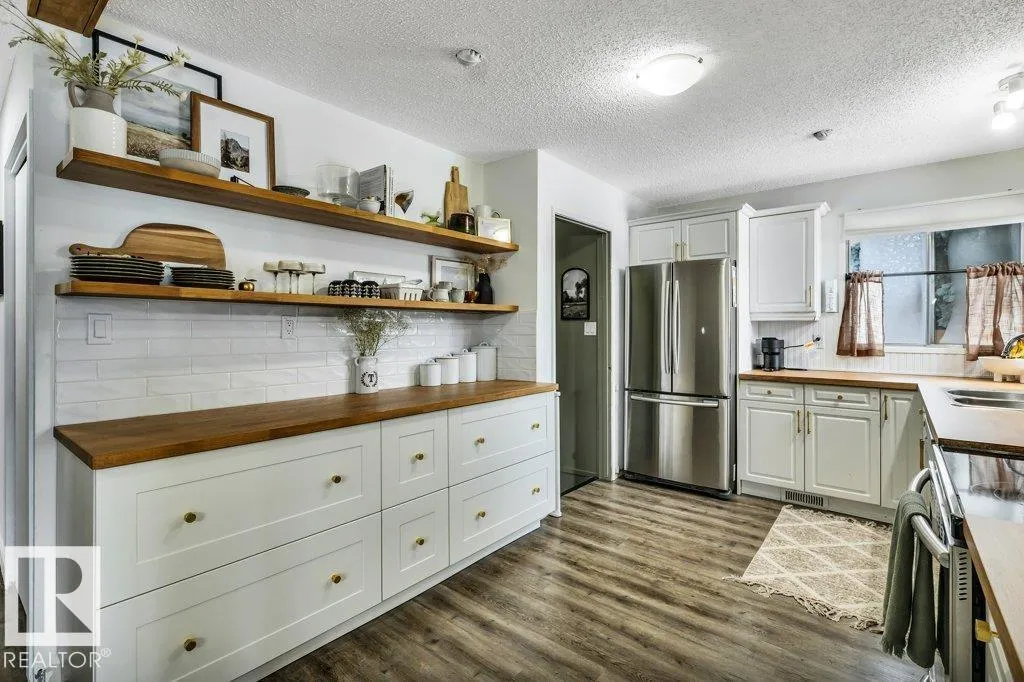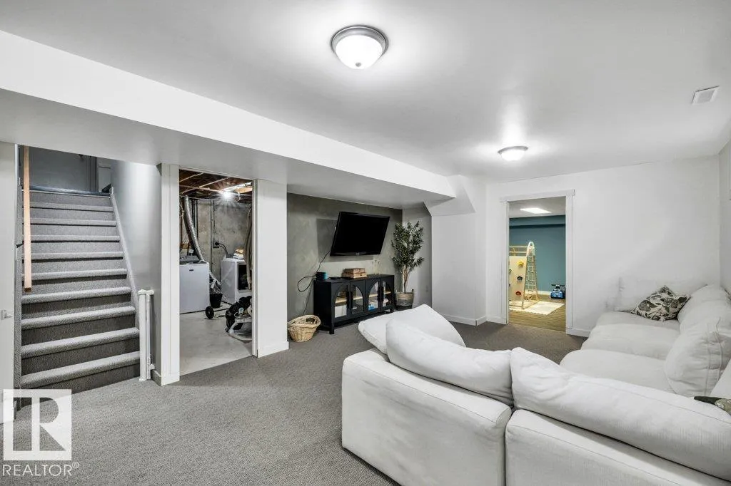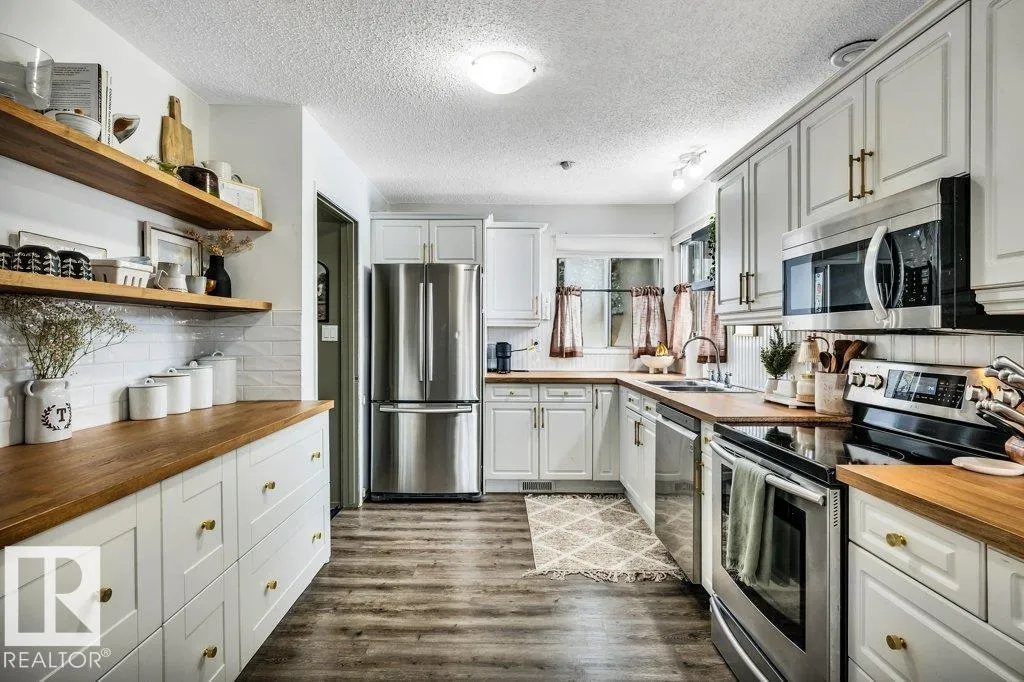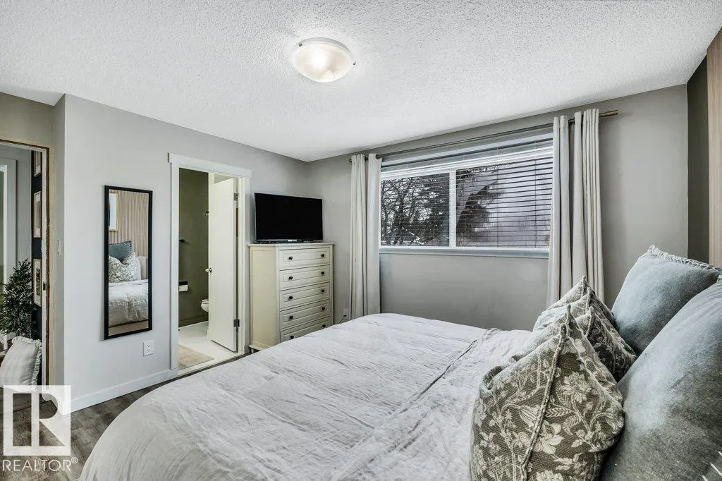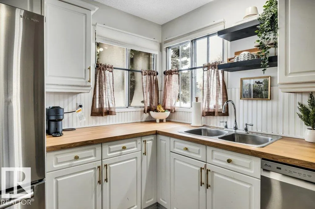 Welcome to this well-maintained 3-bdrm, 3-bath bungalow nestled in a quiet cul-de-sac, offering 1,220 sq ft of comfortable main floor living. The sunken living room w/ a charming corner brick fireplace & bright south-facing windows is highlighted by a lovely feature wall. A spacious dining area overlooks the living room, creating an easy, open flow for everyday living & entertaining. The updated kitchen offers generous counter space; S.S. appliances & windows above sink for natural light. With a feature wall, the primary bdrm includes a walk-in closet & private 3-pce ensuite. With 2 more bedrooms & 4-pce bath, the main level stands out. The bsmt provides still more living space: lrg family rm, 3-pce bath, playroom, den & storage. Outside, enjoy established landscaping, fully fenced back yard w/ apple trees, fire pit, shed & garden as well as a front drive w/ parking pad. Great family home or for someone seeking single-level living. Walking trails, schools, shopping, & Tri Leisure Centre are all close by. (id:27476)