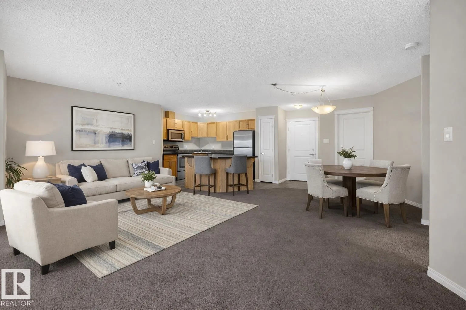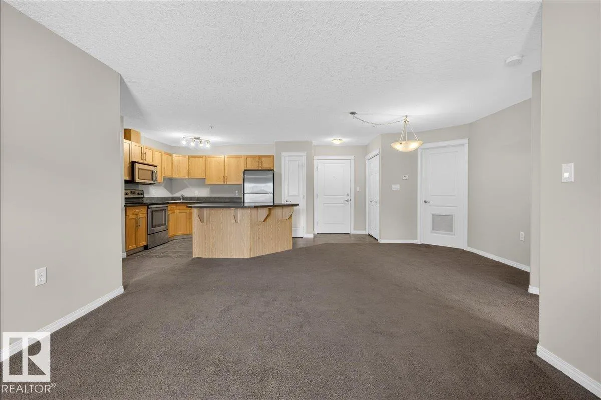 This well-maintained, freshly painted main level condo offers comfort, convenience, and immediate availability. Featuring 2 spacious bedrooms and 2 full bathrooms, the home includes a functional open-concept living and dining area, ideal for everyday living and entertaining. The large kitchen includes stainless steel appliances and a central island with ample prep space and storage, while the living room opens directly onto a private ground-level patio, perfect for seamless indoor-outdoor living and convenient for pet owners. Additional features include in-suite laundry, air conditioning, and a new HVAC system installed in January 2026. Heated underground parking is included, with your stall located just steps from the elevator for exceptional convenience. Ready for immediate possession. (id:27476)