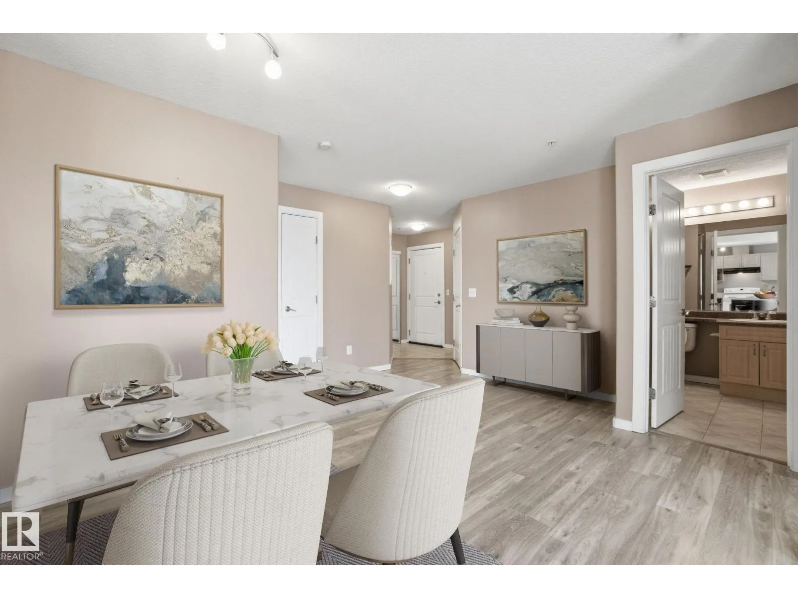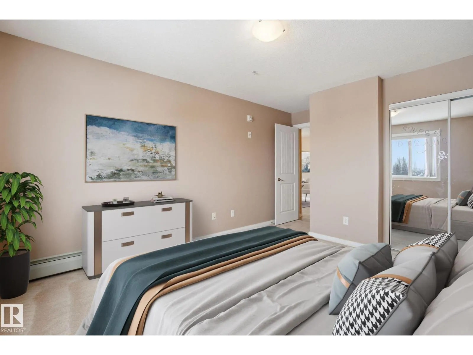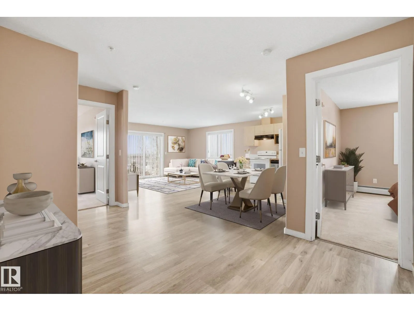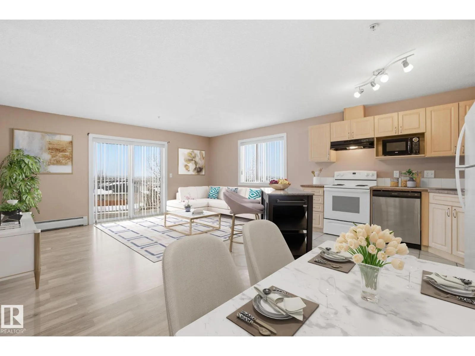 Stop renting and get into home ownership in one of the nicest condo units in Spruce Grove. This 3rd floor unit features 2 bedrooms and 2 bathrooms. Large entry as you walk in the door, space for everyone to get off coats and shoes. Open floorplan. Very functional kitchen with good storage and even comes with movable island! Great dining area can fit all shapes & sizes of table. Big living room has tons of natural light with both west & north facing windows. Master bedroom has tons of room for furniture! Walk through closet & 4pc ensuite! 2nd bedroom is great for a roommate, guests, kids or work from home! 2nd Full bathroom too. INSUITE LAUNDRY with extra storage too. Underground parking to keep the car warm all winter! Great location with views all the way to the west to watch the sunset. Super close to Tri Liesure Centre, transit, shopping!!! This one is a must see!!! some photos are virtually staged (id:27476)