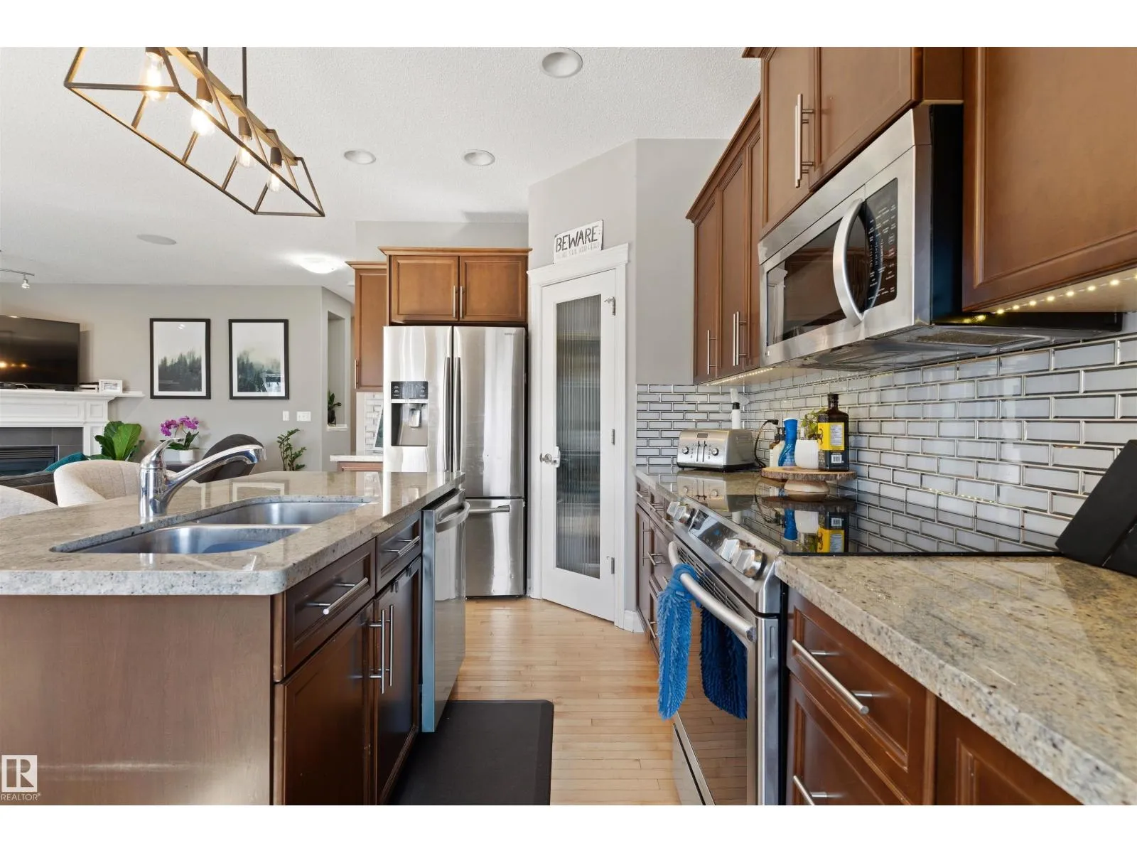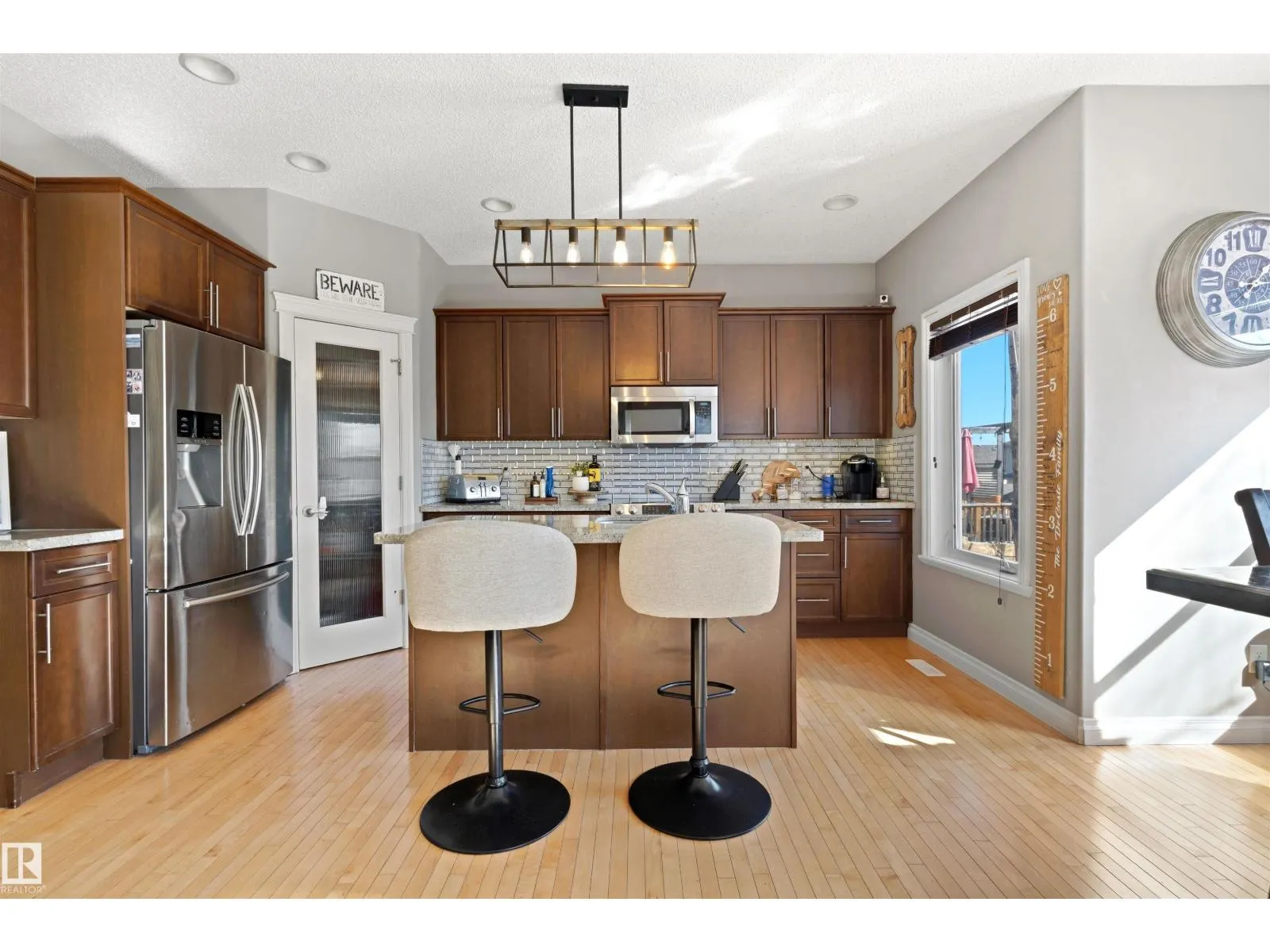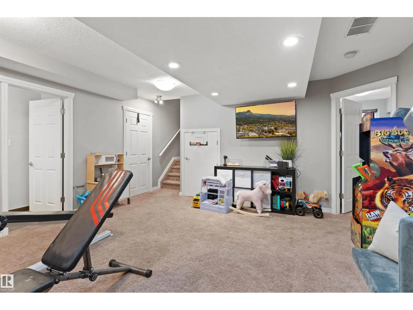 Permanent Gemstone (year round Christmas) lighting, a fully developed heated garage, whole-home speaker system, A/C, newer roof (2021), and a beautifully landscaped yard with sprinkler system, shed and charming treehouse set this exceptional, fully finished 2-storey apart. Step inside to 9â ceilings, a vaulted entry with open staircase, and a bright living room with gas fireplace. The kitchen features stainless steel appliances, updated backsplash, corner pantry, and views of the mature south-facing backyard. Upstairs offers 3 bedrooms, convenient 2ND FLOOR laundry, and a spacious primary retreat with walk-in closet and 4pc ensuite. The fully finished basement includes a rec room with wet bar, 4th bedroom, and full bath. Enjoy the two-tier deck with BBQ gas line (hot tub negotiable). Close to schools, parks and the Tri-Leisure Centre. Homes with this level of finish and outdoor space rarely come available (id:27476)