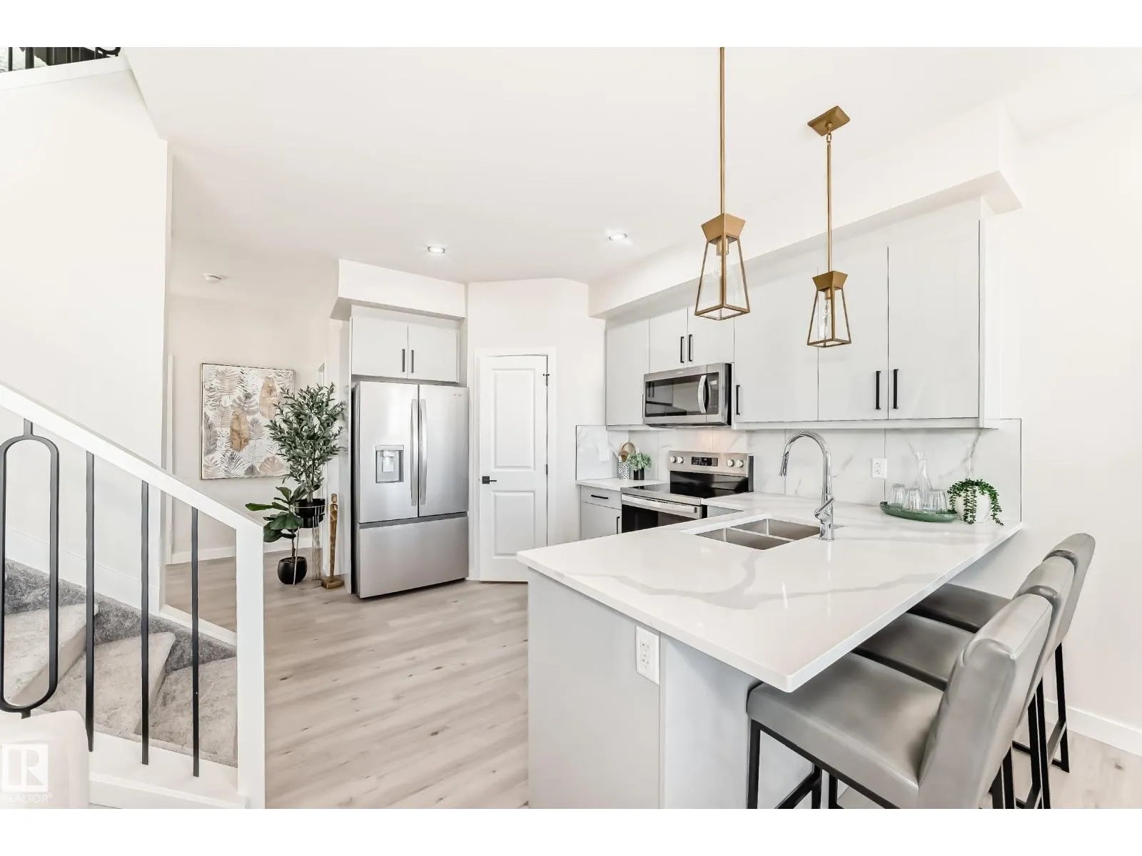 Brand new front double attached garage duplex in the growing community of Prescott. The main floor features an L-shaped kitchen with appliances included, a walk-through pantry, and an open-concept living and dining area. Large windows provide plenty of natural light. Upstairs offers two bedrooms, a bonus room, upper-floor laundry, and a primary bedroom with a 5-piece ensuite. The rear deck overlooks a massive backyard backing onto a walking trail and green space with no rear neighbours. A separate side entrance provides potential for a future legal suite or multi-generational living. Located close to parks, walking trails, and everyday amenities. (id:27476)