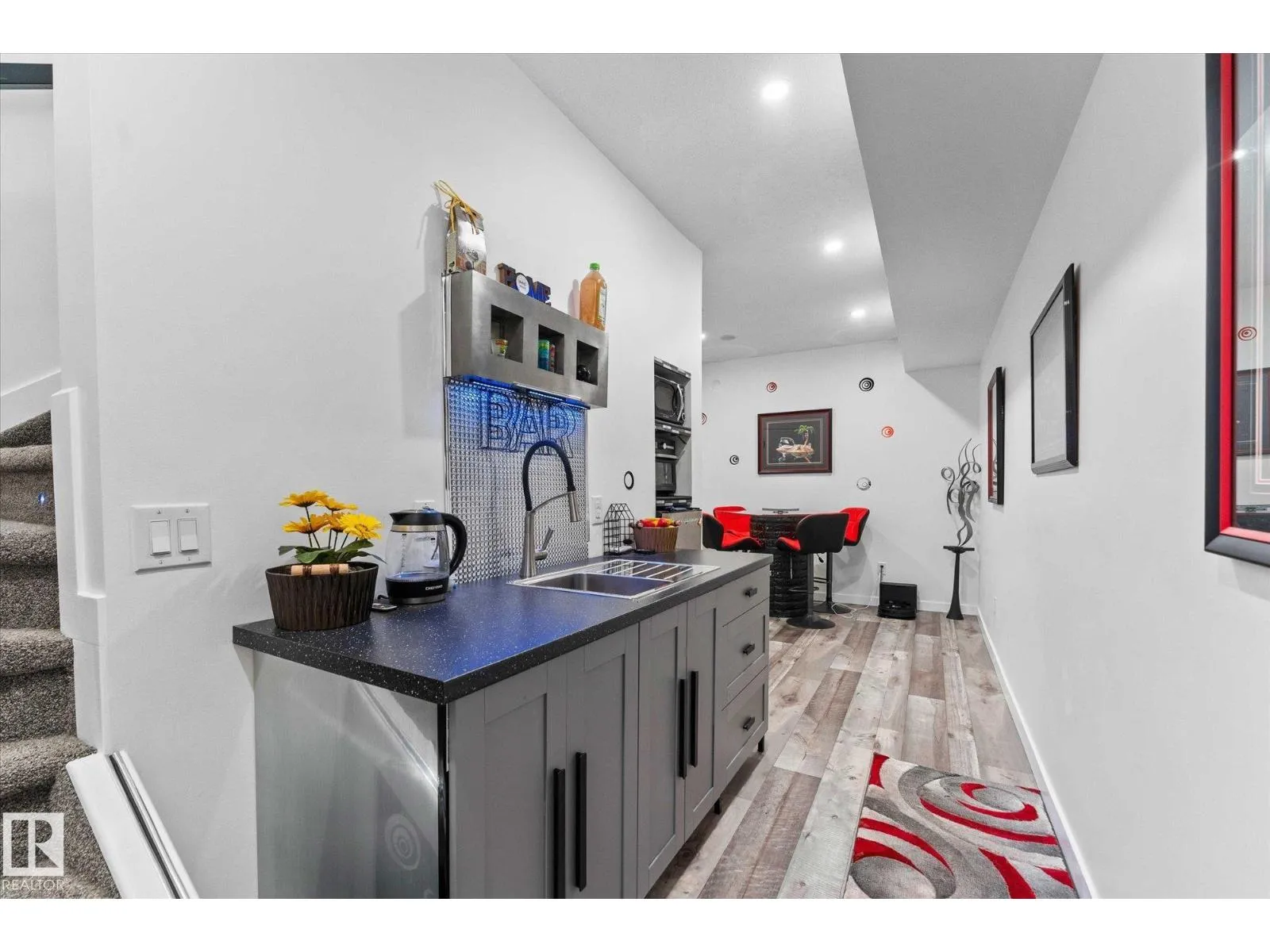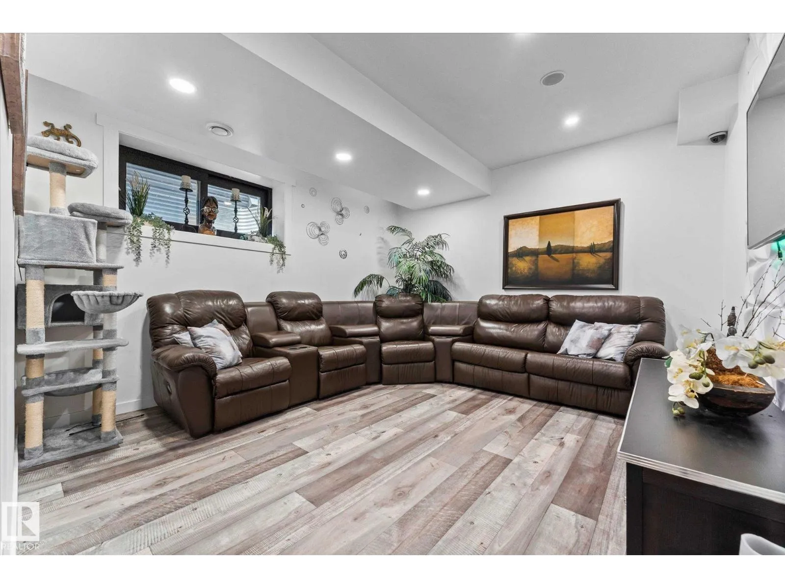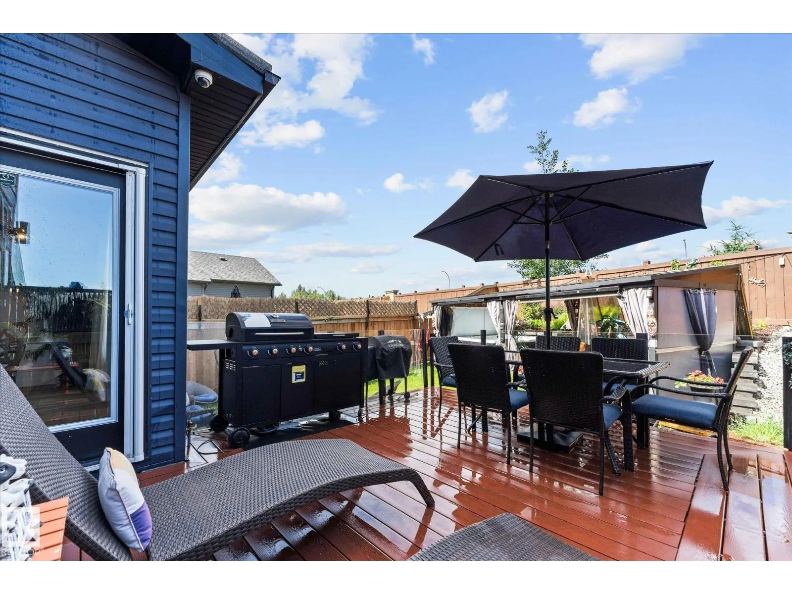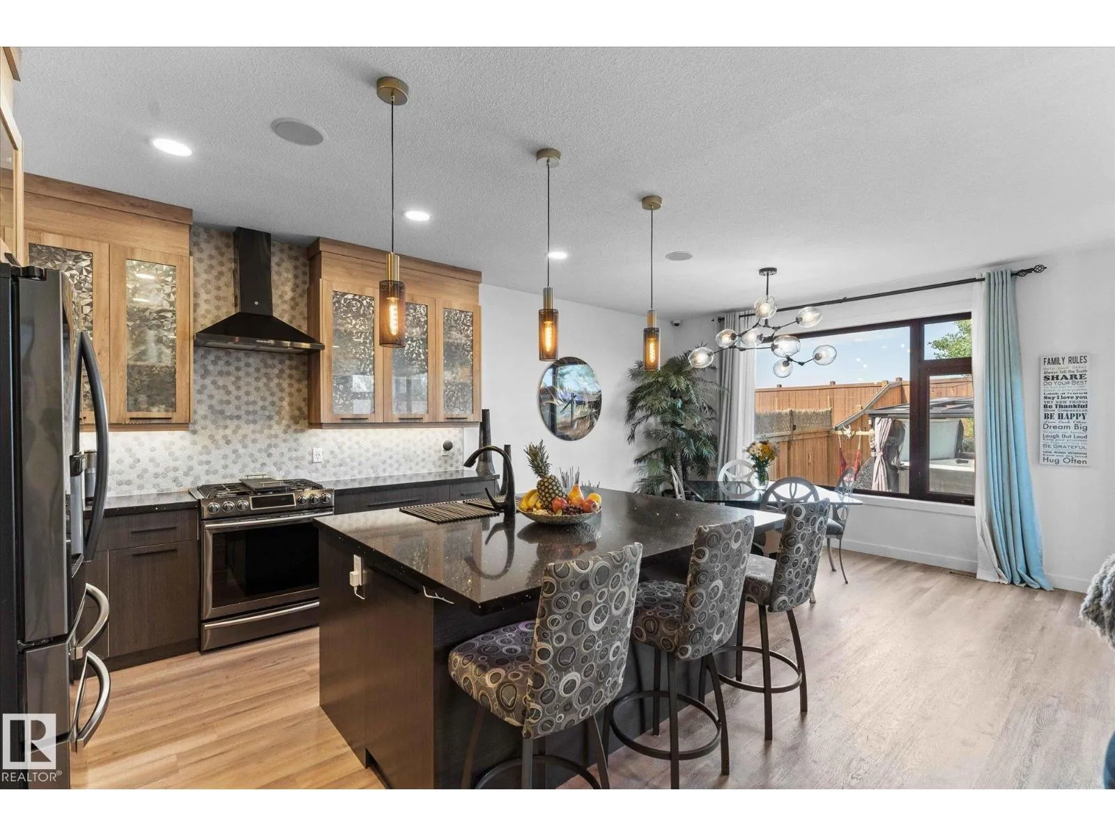 Welcome to 9 Brunwyck in Fenwyck. With almost 2800 sq ft of luxurious living space, this stunning home is perfect for the family w/4 spacious bdrms & a ton of upgrades. Custom quartz kitchen boasts floor-to-ceiling 2-tone cabinetry, under-cabinet lighting, single-level waterfall island, premium vinyl flooring, walk-through pantry, black SS appliances, soft-close drawers, & beautiful mosaic backsplash. Stunning stone-surround fireplace in LR. Dining area provides access to spacious deck w/glass railings. On main floor, you'll find a grand entrance, half bath, & 8-ft doors that add to overall appeal. Upstairs, there are 3 generous sized bdrms, bonus rm, office space & laundry rm. King-sized primary has luxurious ensuite w/standalone tub & custom shower. Fully developed bsmt has fully equipped kitchenette, bdrm & spacious area for family time. Triple-pane windows, surround sound throughout, stair lighting, garage w/epoxy flooring & drain, beautiful landscaping, hot tub & gazebo, & A/C. It wonât last long! (id:27476)