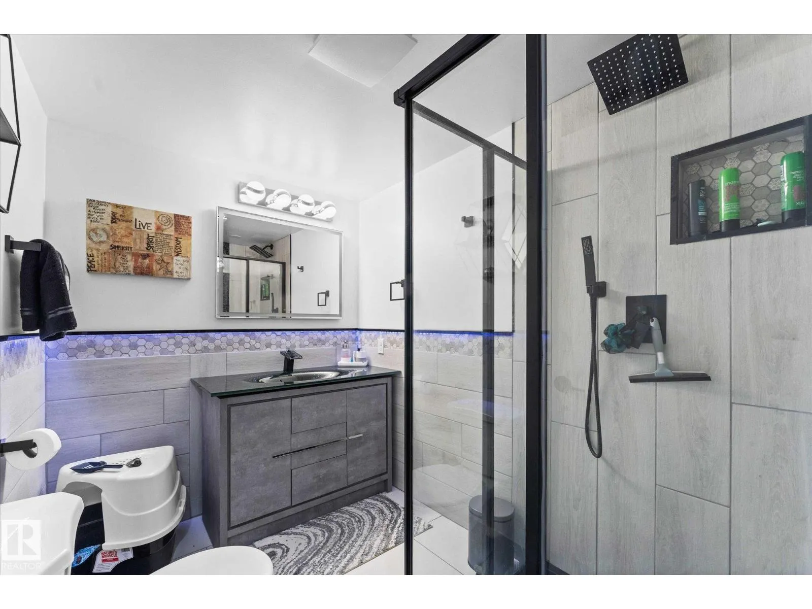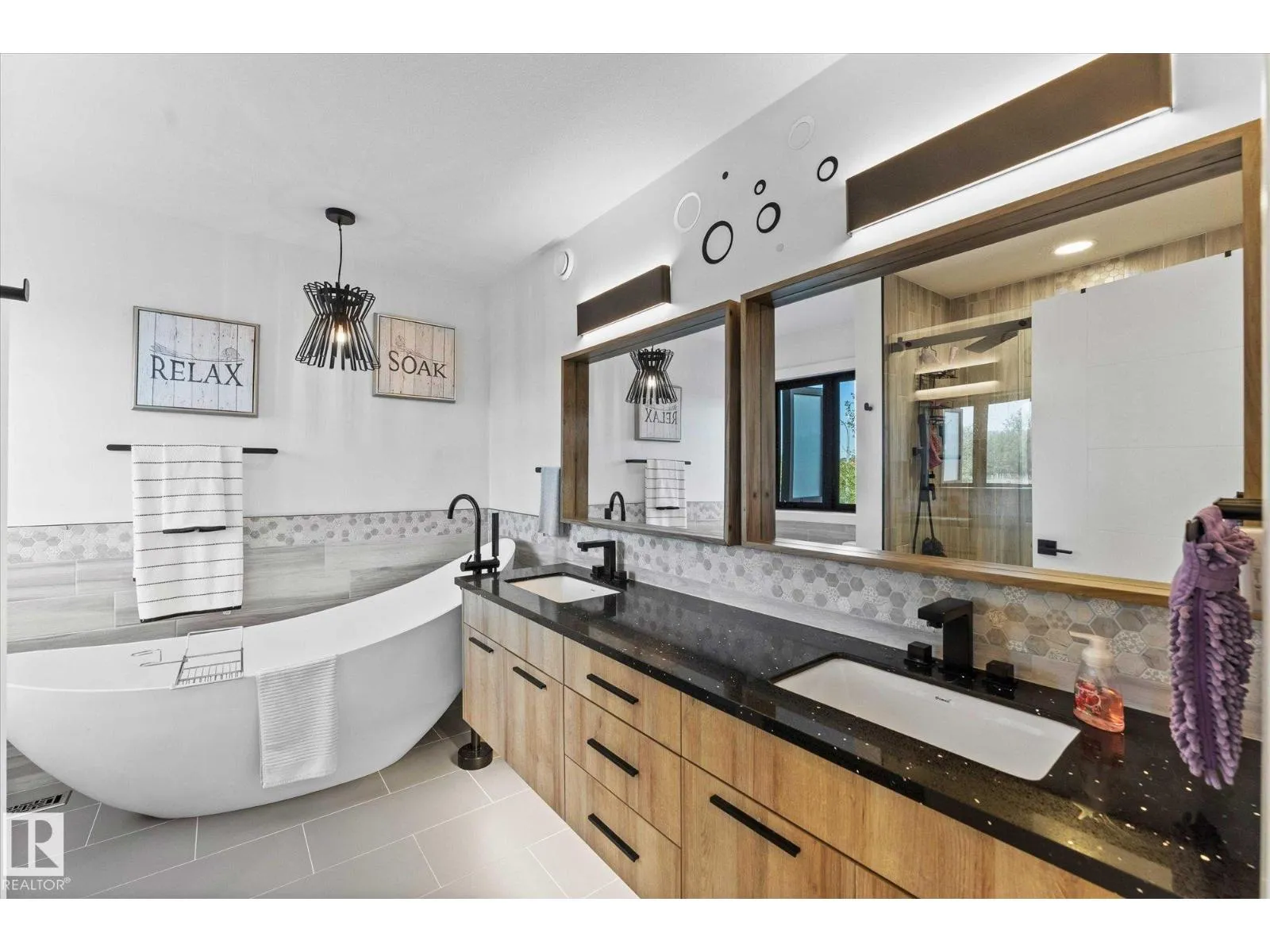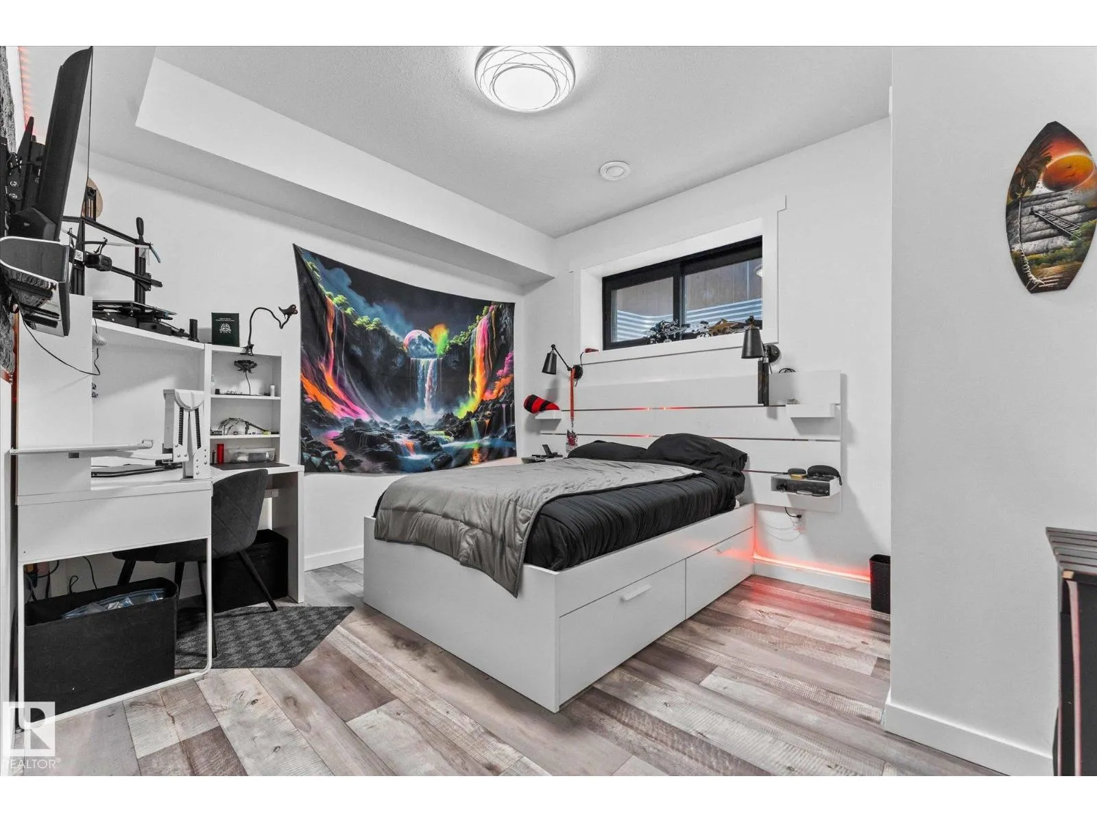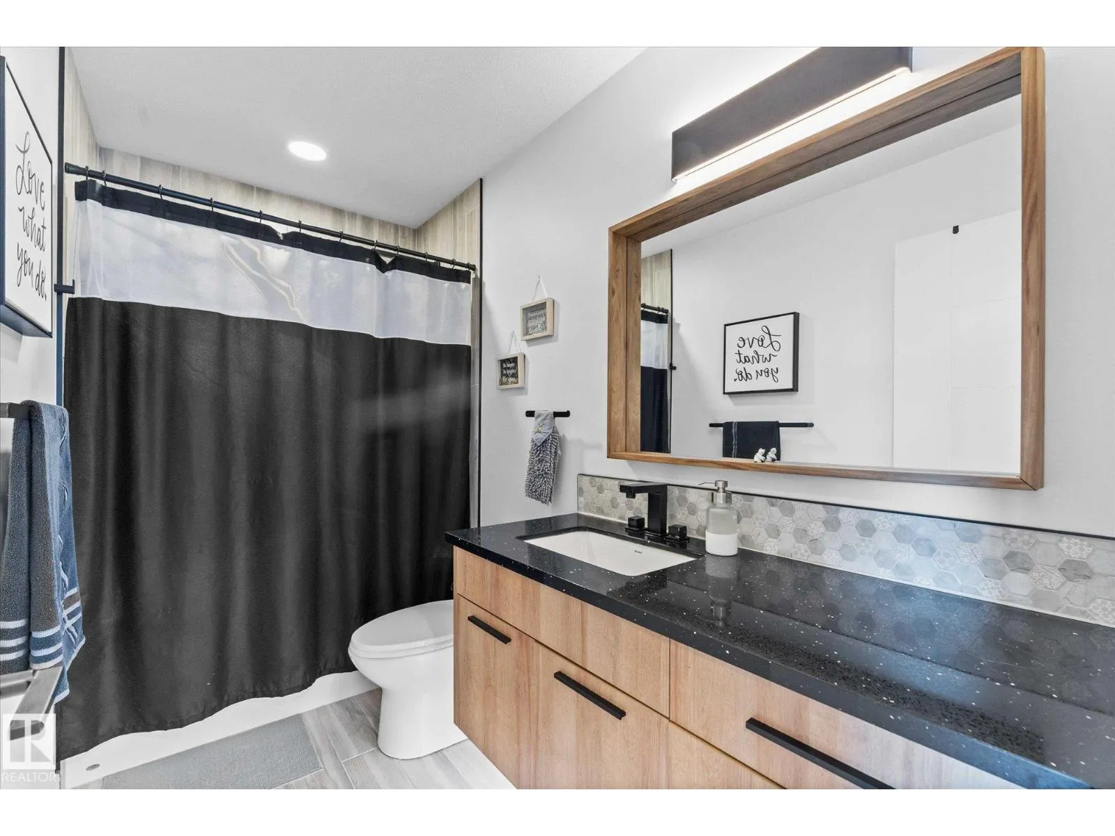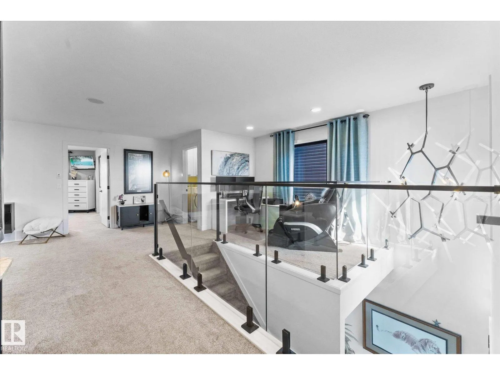 Welcome to 9 Brunwyck in Fenwyck. With almost 2800 sq ft of luxurious living space, this stunning home is perfect for the family w/4 spacious bdrms & a ton of upgrades. Custom quartz kitchen boasts floor-to-ceiling 2-tone cabinetry, under-cabinet lighting, single-level waterfall island, premium vinyl flooring, walk-through pantry, black SS appliances, soft-close drawers, & beautiful mosaic backsplash. Stunning stone-surround fireplace in LR. Dining area provides access to spacious deck w/glass railings. On main floor, you'll find a grand entrance, half bath, & 8-ft doors that add to overall appeal. Upstairs, there are 3 generous sized bdrms, bonus rm, office space & laundry rm. King-sized primary has luxurious ensuite w/standalone tub & custom shower. Fully developed bsmt has fully equipped kitchenette, bdrm & spacious area for family time. Triple-pane windows, surround sound throughout, stair lighting, garage w/epoxy flooring & drain, beautiful landscaping, hot tub & gazebo, & A/C. It wonât last long! (id:27476)