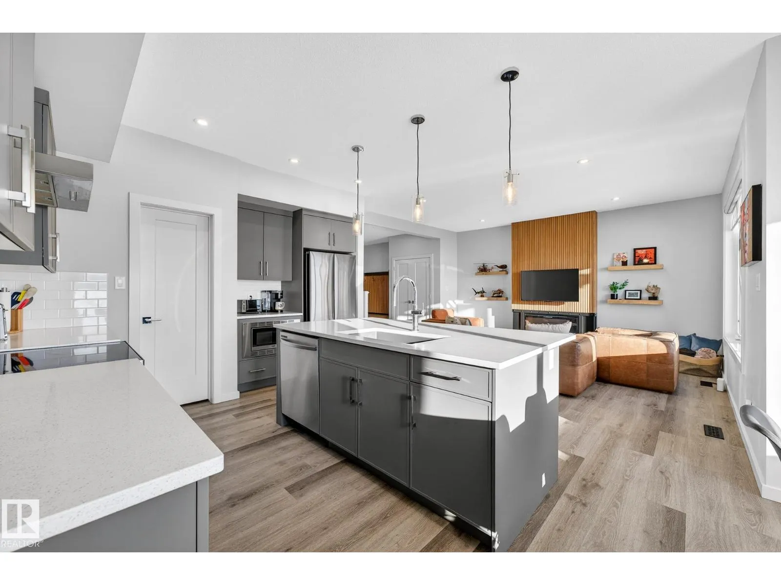 Welcome Home! This Stunning 2-Storey Walk-Out backs onto Beautiful Green Space and Creek! You can hear the relaxing sounds of the creek and enjoy the view while sitting under the perfect Gazebo on your spacious upper deck! This home is PRISTINE and the main floor boasts a beautiful open concept living area with Luxury Vinyl Plank Flooring, Quartz Countertops, Fireplace Feature Wall, Stainless Steel Applicances, Soaring Windows, Walk-Thru Pantry with perfect Laundry Area! The Second Floor has a private Bonus Room, Huge Primary Bedroom with Beautiful En-Suite and Walk-In closet, 2 more Spacious Bedrooms and 4 piece Bath! The walk-out basement is unfinished but spacious and ready for your future development! The double attached garage has 8' doors to accomodate large vehicles! Upgrades include decorative feature walls, Blinds, Air Conditioner, Landscaped and Fenced Perfectly! Close to Prescott K-9 School, Shopping and quick access to Main Arterial Routes!! A Must See!!! (id:27476)