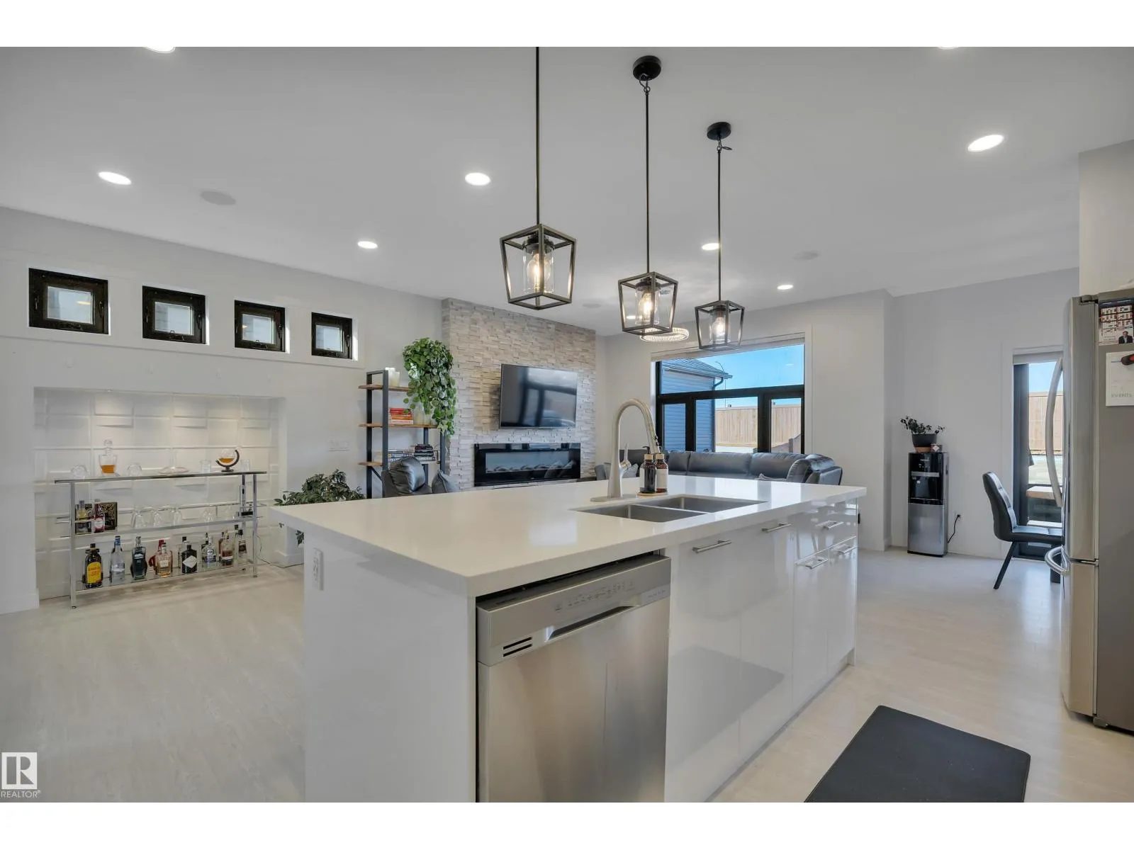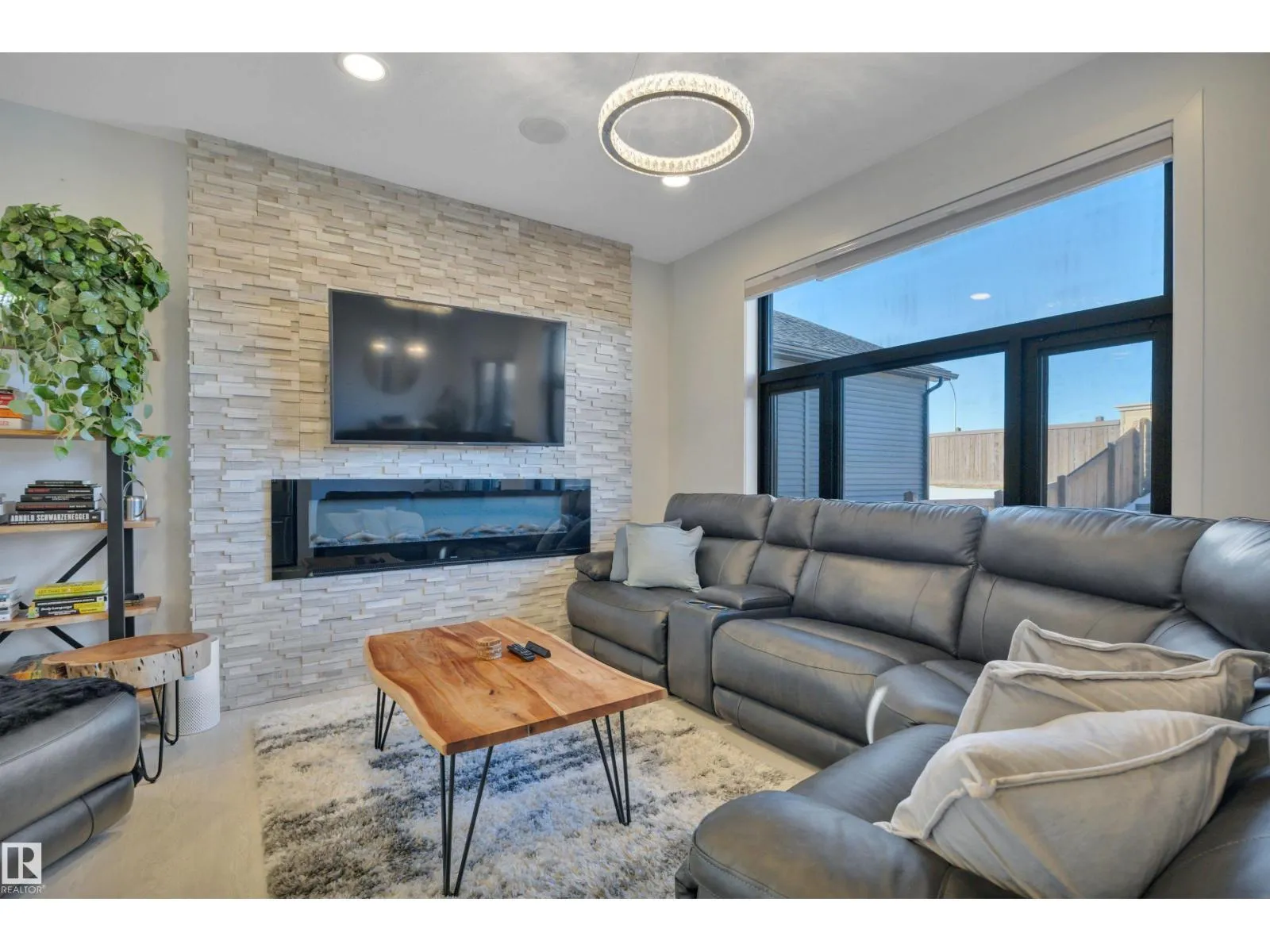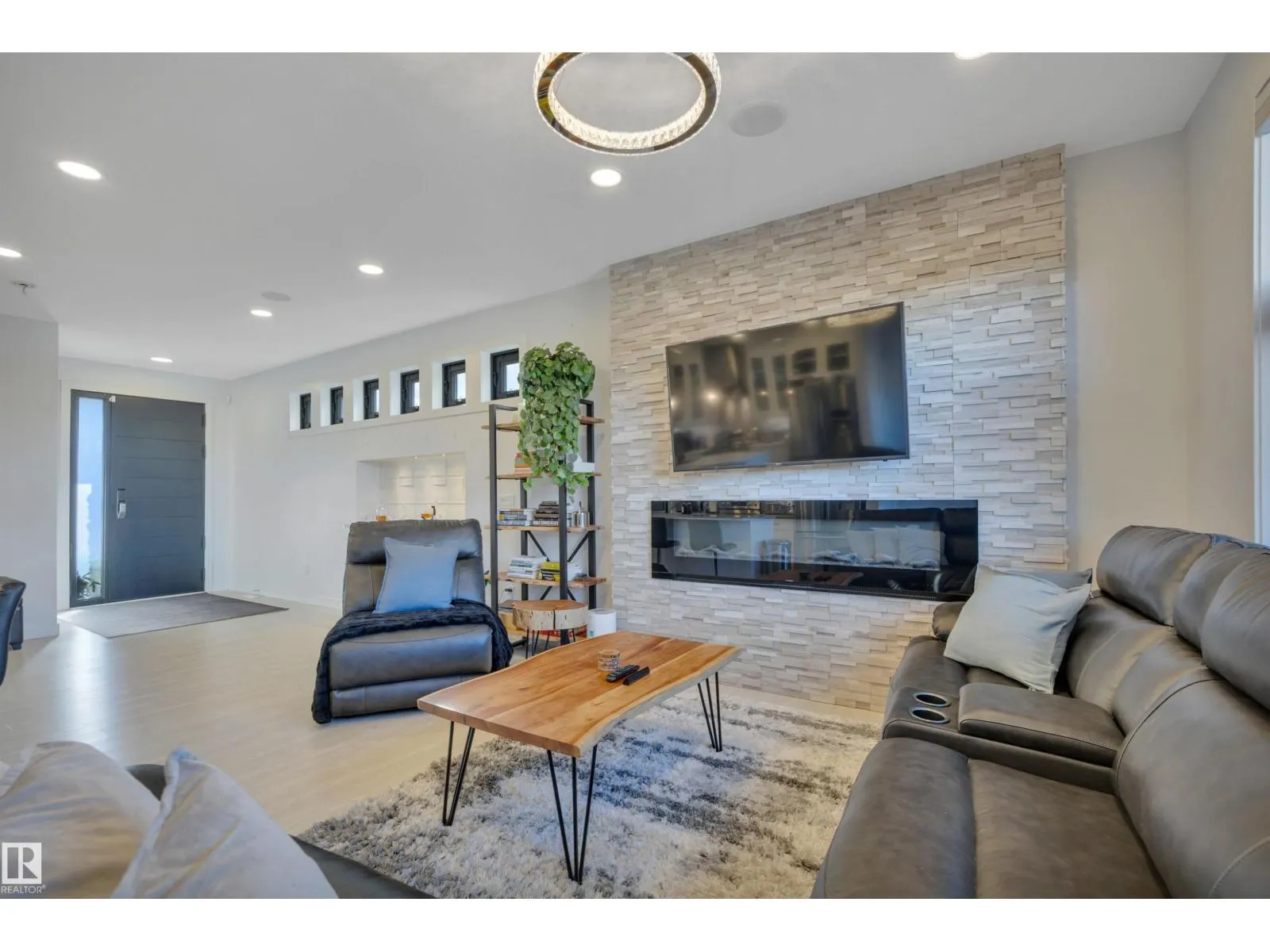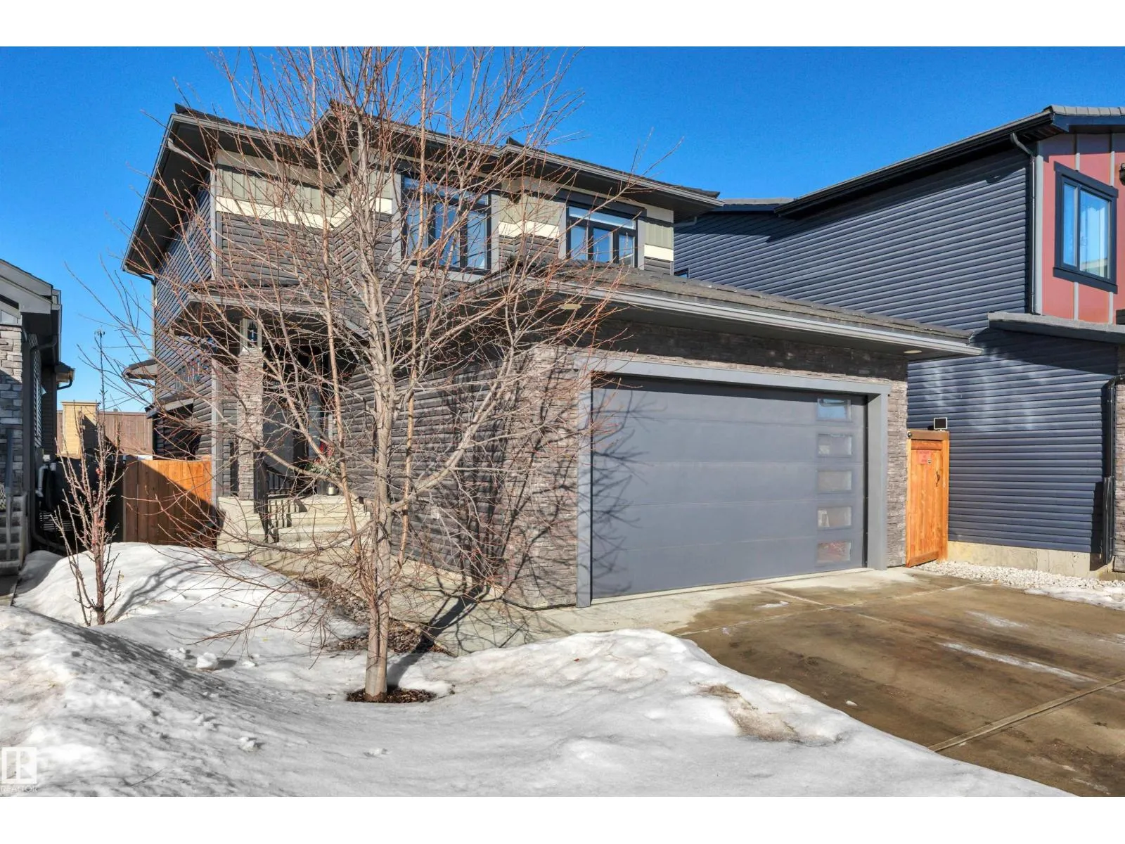 Located in the upscale community of Fenwyck in East Spruce Grove, this stunning 2-storey offers 1,700 sq ft of refined living space. The open-concept main floor features 9â ceilings, luxury vinyl plank flooring, and a striking stone fireplace. The designer kitchen showcases ivory quartz countertops, a large centre island, floor-to-ceiling glass cabinetry, under-cabinet lighting, stainless steel appliances, walk-through pantry, and custom mosaic backsplash. The dining area leads to a 16x13 deck with glass railing,perfect for entertaining. Additional main floor highlights include 8â doors, a half bath, and Samsung smart locks with camera doorbell. Upstairs offers a bonus room, laundry, and 3 spacious bedrooms. The primary retreat features a custom feature wall and a 5-piece ensuite with dual sinks and a custom shower. Upgrades include black-framed windows, floating vanities, stair lighting, closet organizers, and barn doors. Fully fenced and landscaped yard with retaining wall, Central Air,insulated garage. (id:27476)