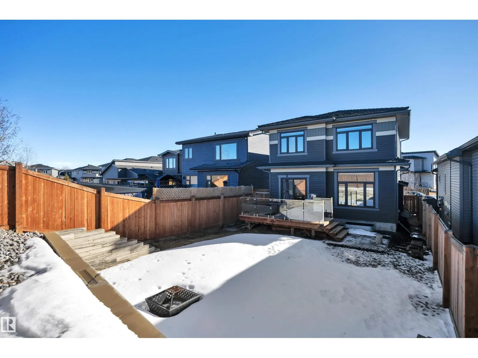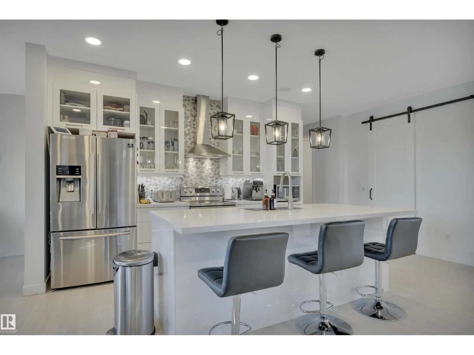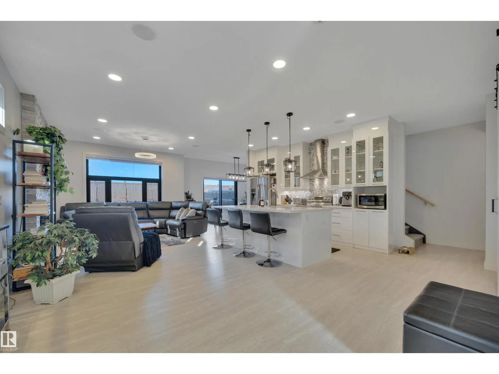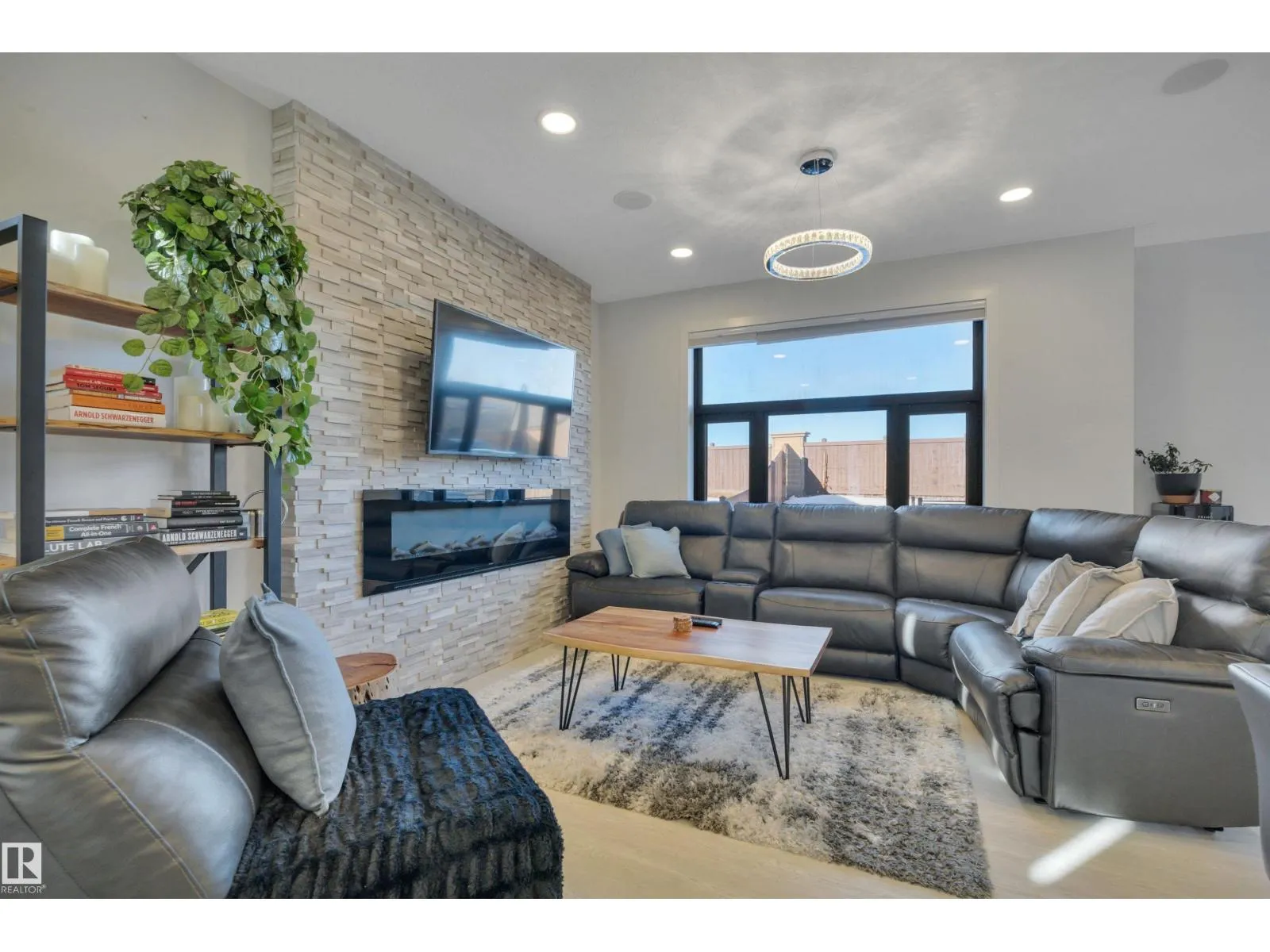 Located in the upscale community of Fenwyck in East Spruce Grove, this stunning 2-storey offers 1,700 sq ft of refined living space. The open-concept main floor features 9â ceilings, luxury vinyl plank flooring, and a striking stone fireplace. The designer kitchen showcases ivory quartz countertops, a large centre island, floor-to-ceiling glass cabinetry, under-cabinet lighting, stainless steel appliances, walk-through pantry, and custom mosaic backsplash. The dining area leads to a 16x13 deck with glass railing,perfect for entertaining. Additional main floor highlights include 8â doors, a half bath, and Samsung smart locks with camera doorbell. Upstairs offers a bonus room, laundry, and 3 spacious bedrooms. The primary retreat features a custom feature wall and a 5-piece ensuite with dual sinks and a custom shower. Upgrades include black-framed windows, floating vanities, stair lighting, closet organizers, and barn doors. Fully fenced and landscaped yard with retaining wall, Central Air,insulated garage. (id:27476)