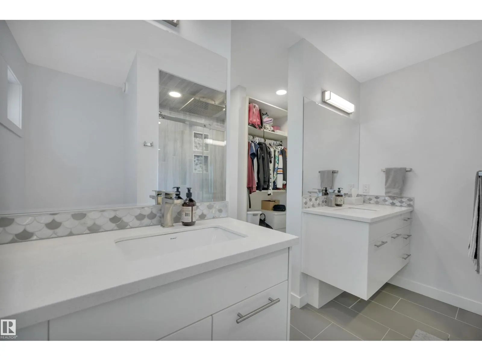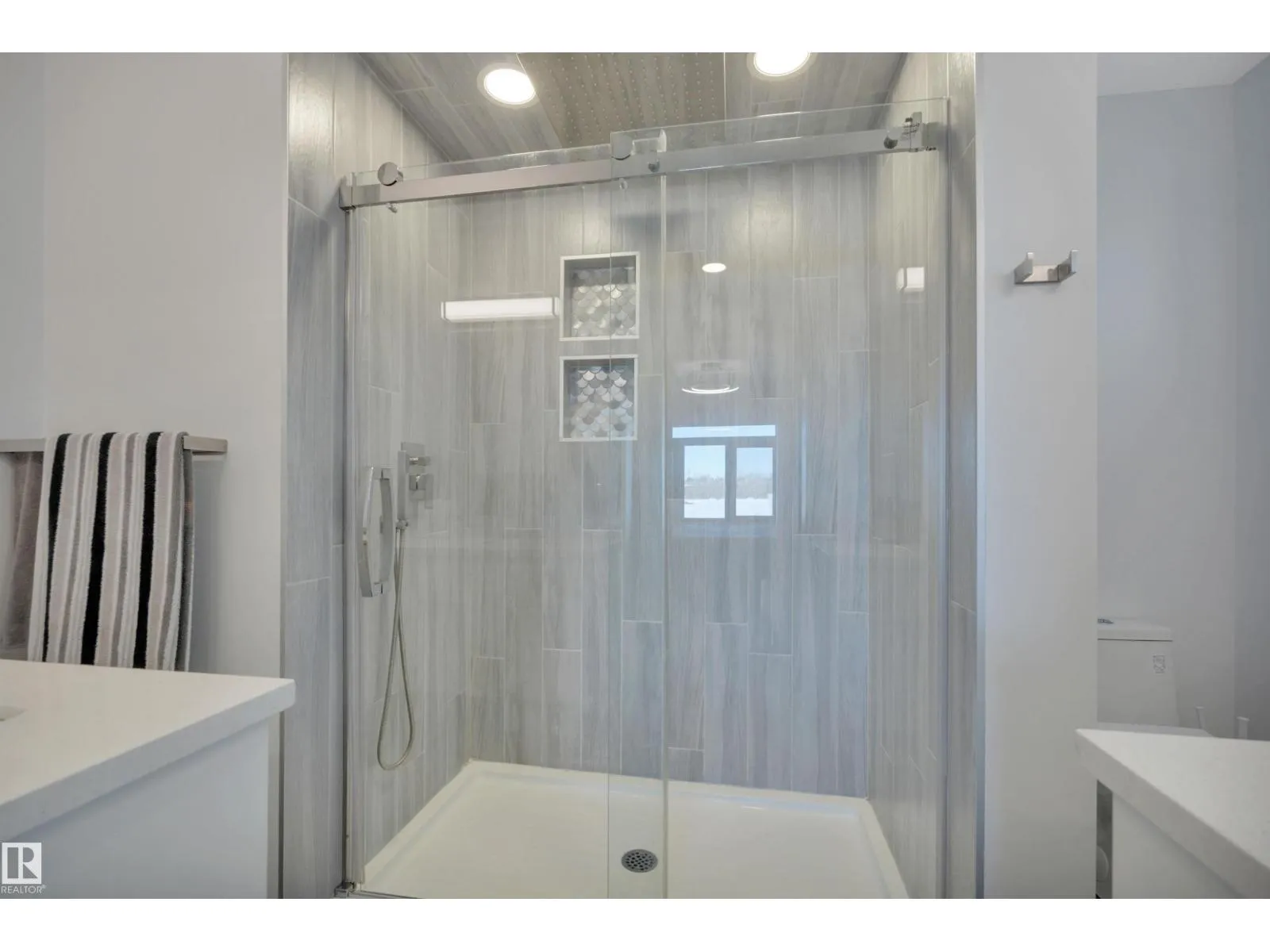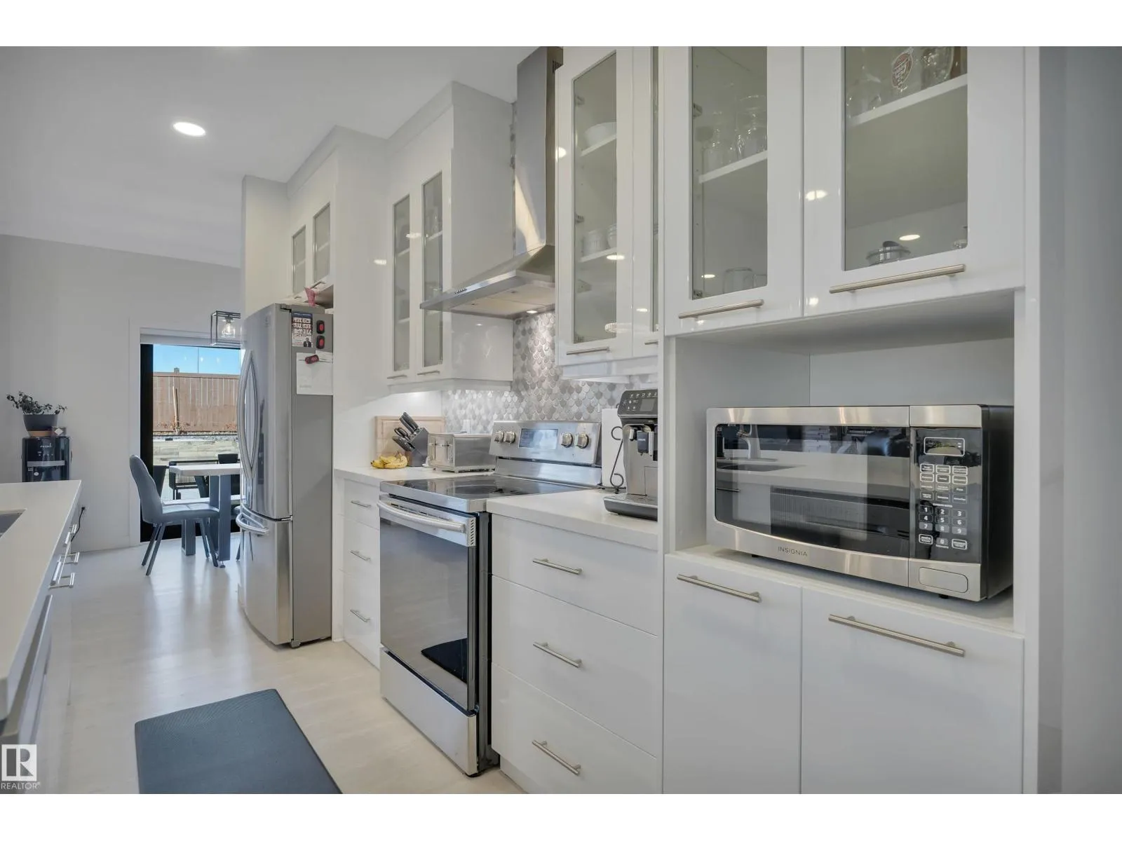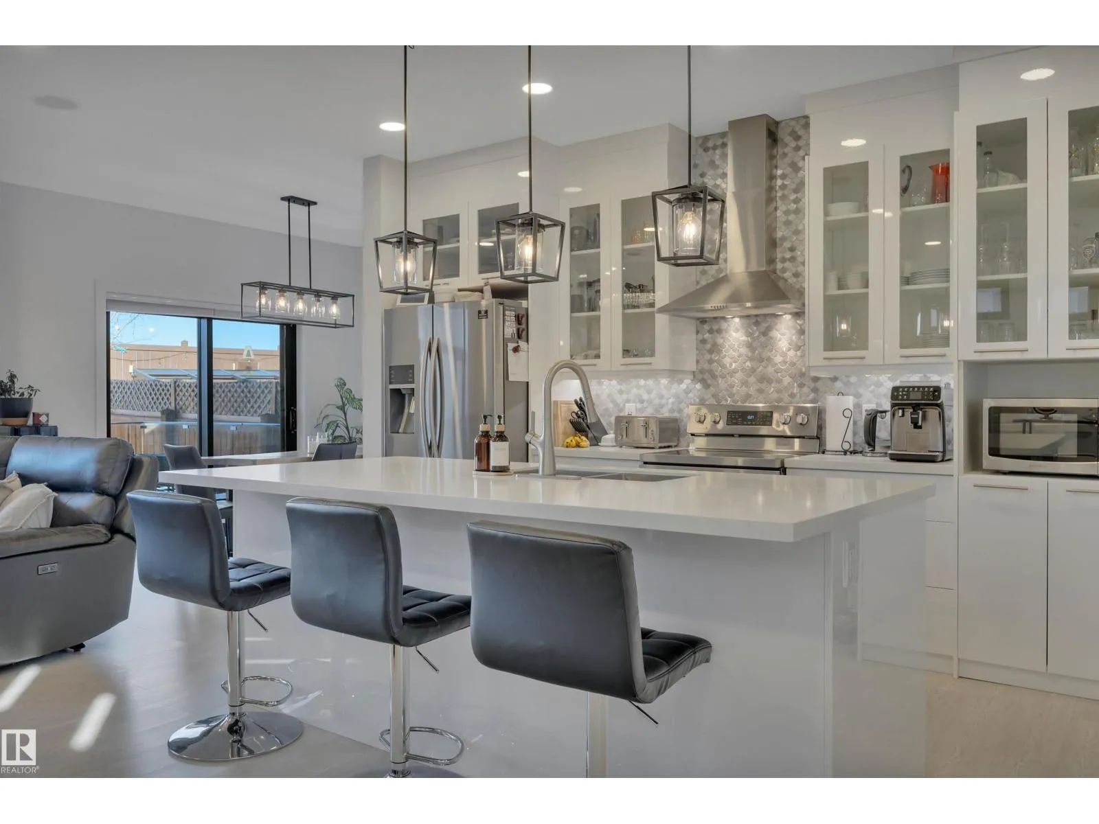 Located in the upscale community of Fenwyck in East Spruce Grove, this stunning 2-storey offers 1,700 sq ft of refined living space. The open-concept main floor features 9â ceilings, luxury vinyl plank flooring, and a striking stone fireplace. The designer kitchen showcases ivory quartz countertops, a large centre island, floor-to-ceiling glass cabinetry, under-cabinet lighting, stainless steel appliances, walk-through pantry, and custom mosaic backsplash. The dining area leads to a 16x13 deck with glass railing,perfect for entertaining. Additional main floor highlights include 8â doors, a half bath, and Samsung smart locks with camera doorbell. Upstairs offers a bonus room, laundry, and 3 spacious bedrooms. The primary retreat features a custom feature wall and a 5-piece ensuite with dual sinks and a custom shower. Upgrades include black-framed windows, floating vanities, stair lighting, closet organizers, and barn doors. Fully fenced and landscaped yard with retaining wall, Central Air,insulated garage. (id:27476)