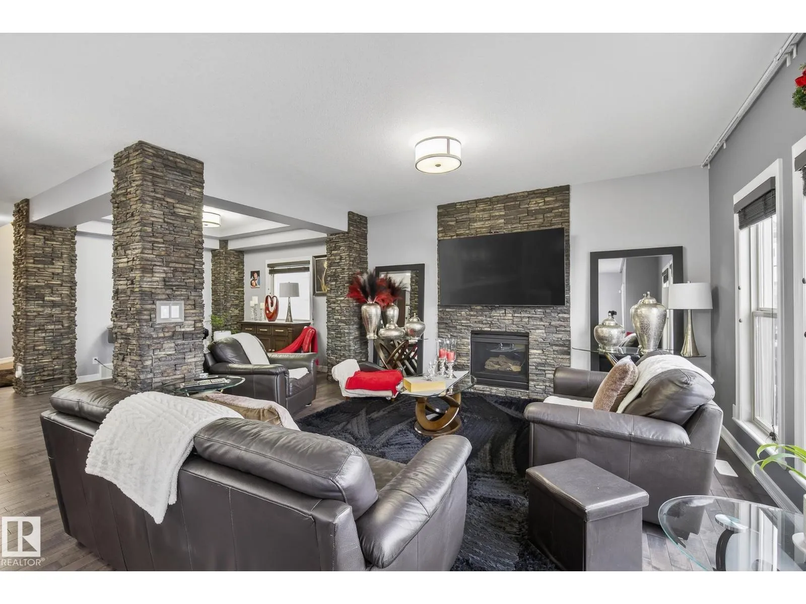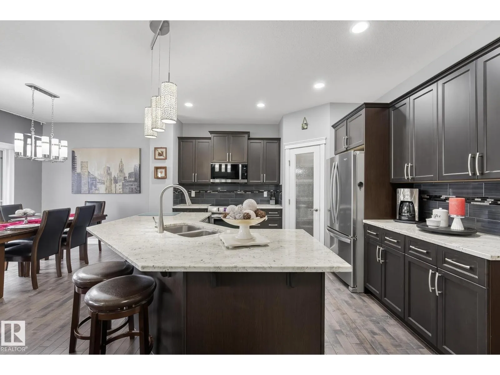 This Greenbury beauty has it all! With 3400+ sq ft of luxury living, this WALKOUT backs onto a POND & WALKING TRAIL for unbeatable VIEWS! Featuring 4 bedrooms, 4 bathrooms, central A/C, tons of storage, bonus room, family room, den. Oh AND the OVERSIZED HEATED 23' x 23'6 garage - there is room for everything, & ample parking PLUS there is a side MAN DOOR w/ concrete steps to the yard! The bright main floor shines with hardwood + vinyl plank upstairs & in the basement. Convenient MAIN FLOOR LAUNDRY, AND a stunning kitchen with a walk through pantry. Step onto the OVERSIZED upper deck or head down to the COVERED, SCREENED in lower patio-perfect for relaxing or entertaining year round. The THEATRE ROOM with projector, screen, and WET BAR brings movie nights to the next level. IMMACULATELY maintained with a LUXURY vibe throughout, this home is SPACIOUS, UPGRADED galore, STYLISH, and ready for the whole family! (id:27476)