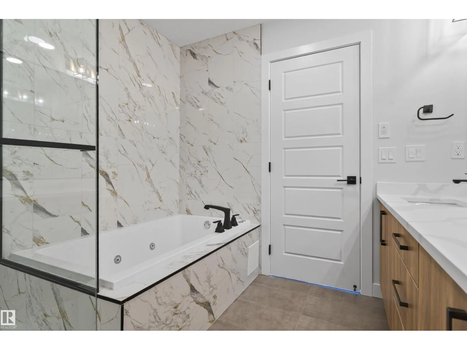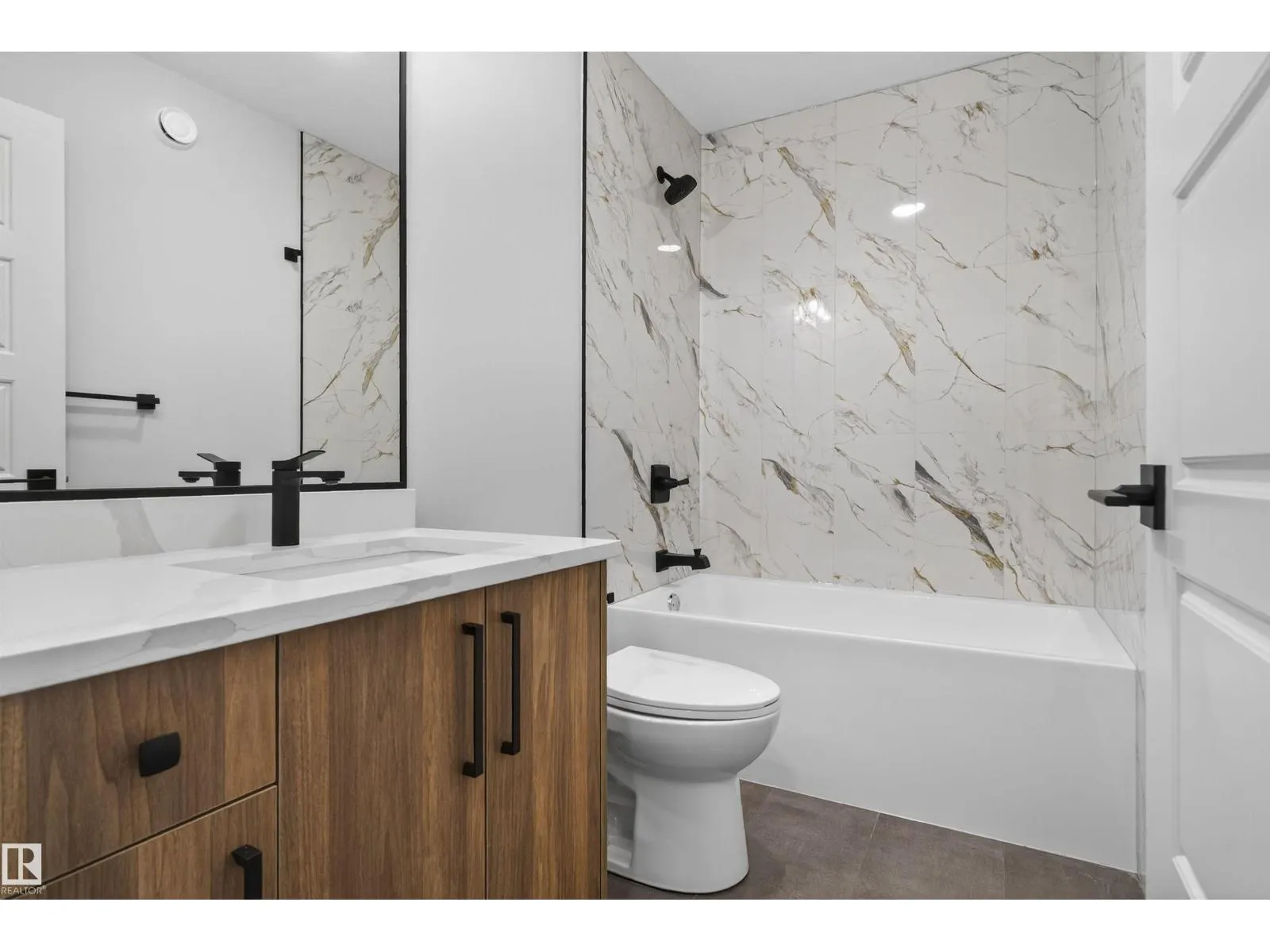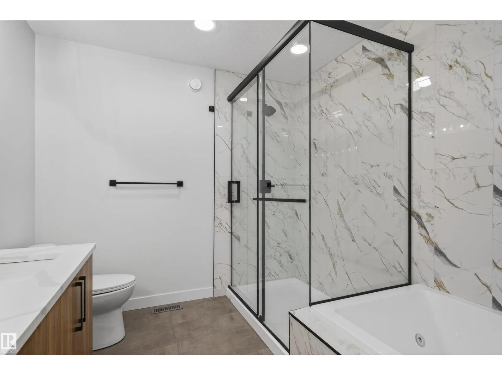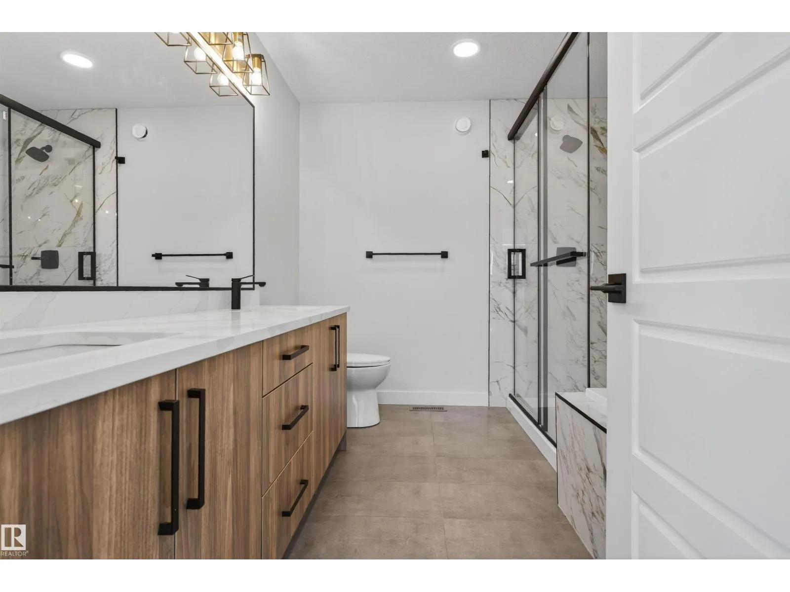 RARE FIND! This half duplex with dbl attached garage offers the space and feel of a detached single-family home. Built by Sunnyview Homes- Only two of its kind in the area. The main floor features a bedroom and a full bath. The open to below living room boasts an electric fireplace with feature wall. The upgraded kitchen with a central island, quartz countertops, 2-toned ceiling-height cabinetry with built in organizers, water line to the refrigerator, a gas line to the stove and a corner WI pantry and a good sized dining area. Going upstairs you'll find glass railing with maple handrail and step lighting, a bonus room, WI laundry room with sink. The primary bedroom features a WIC, coffered ceiling, accent wall, a luxurious 5-pc ensuite including a 6-jet Jacuzzi tub. This level has 2 additional good sized bedrooms sharing a 4 piece bathroom. Situated on a generous lot, this home offers a SEPARATE SIDE entrance to the bsmt. The garage is equipped with a gas line and floor drain. All Appliances included! (id:27476)