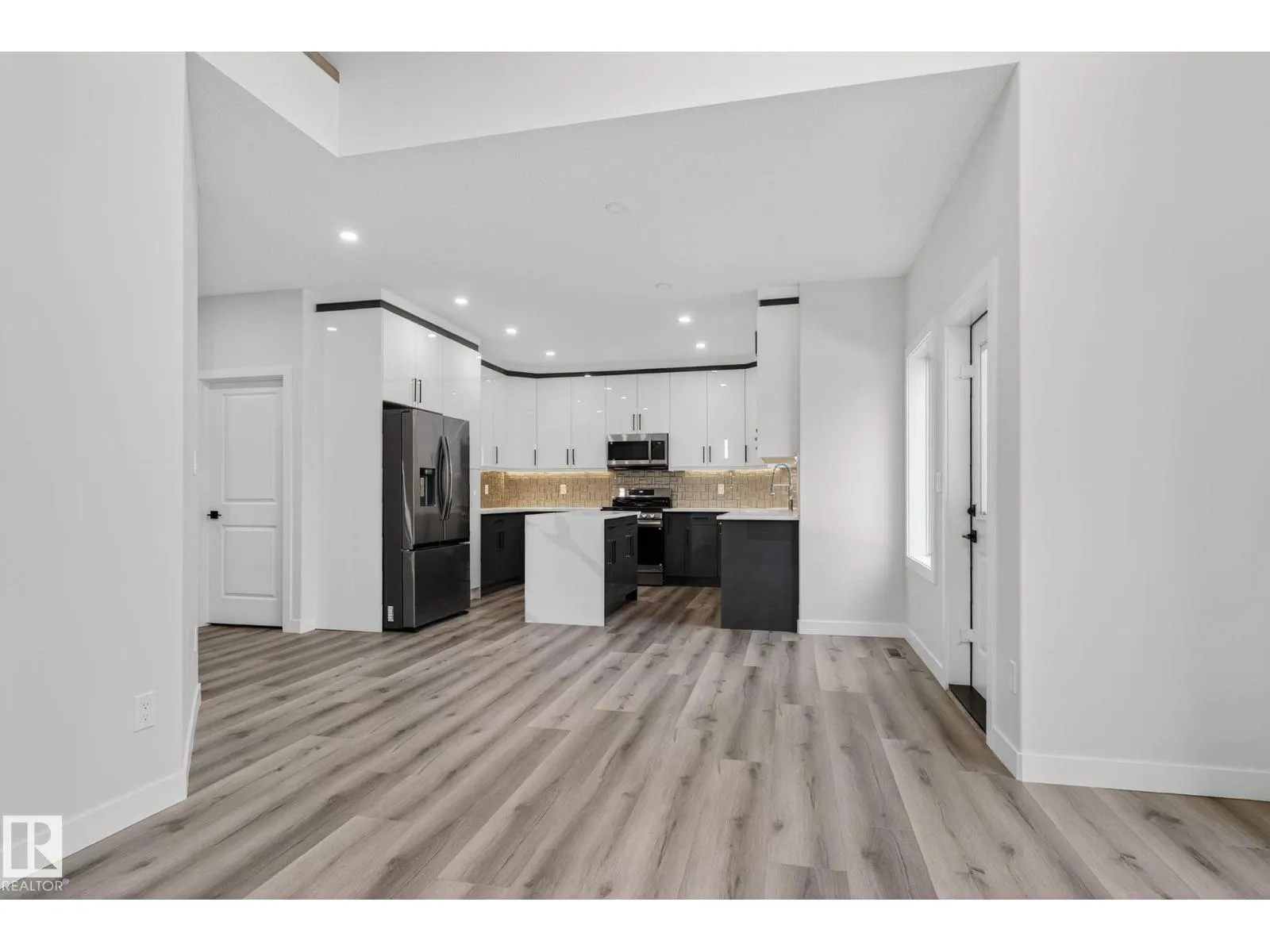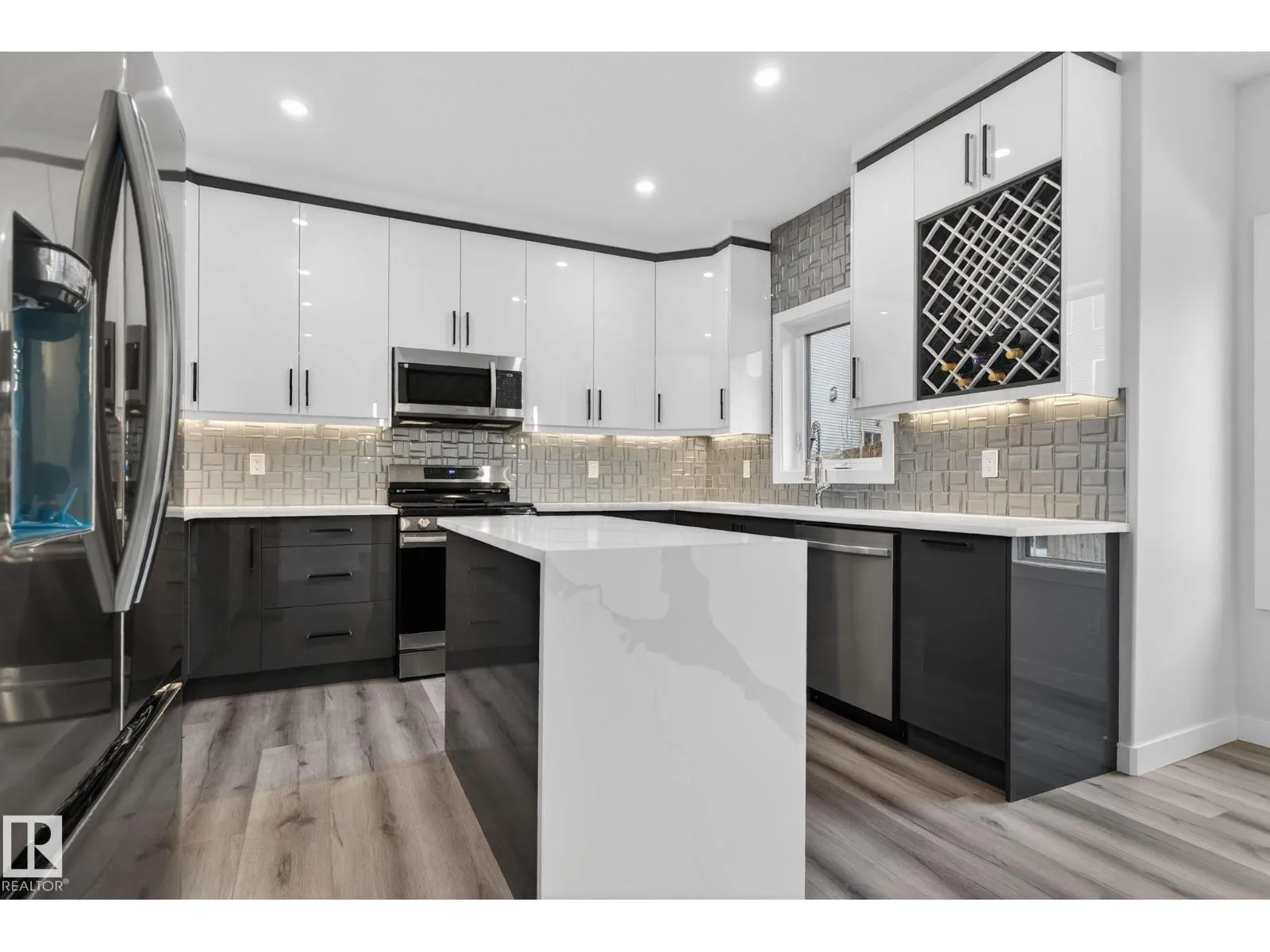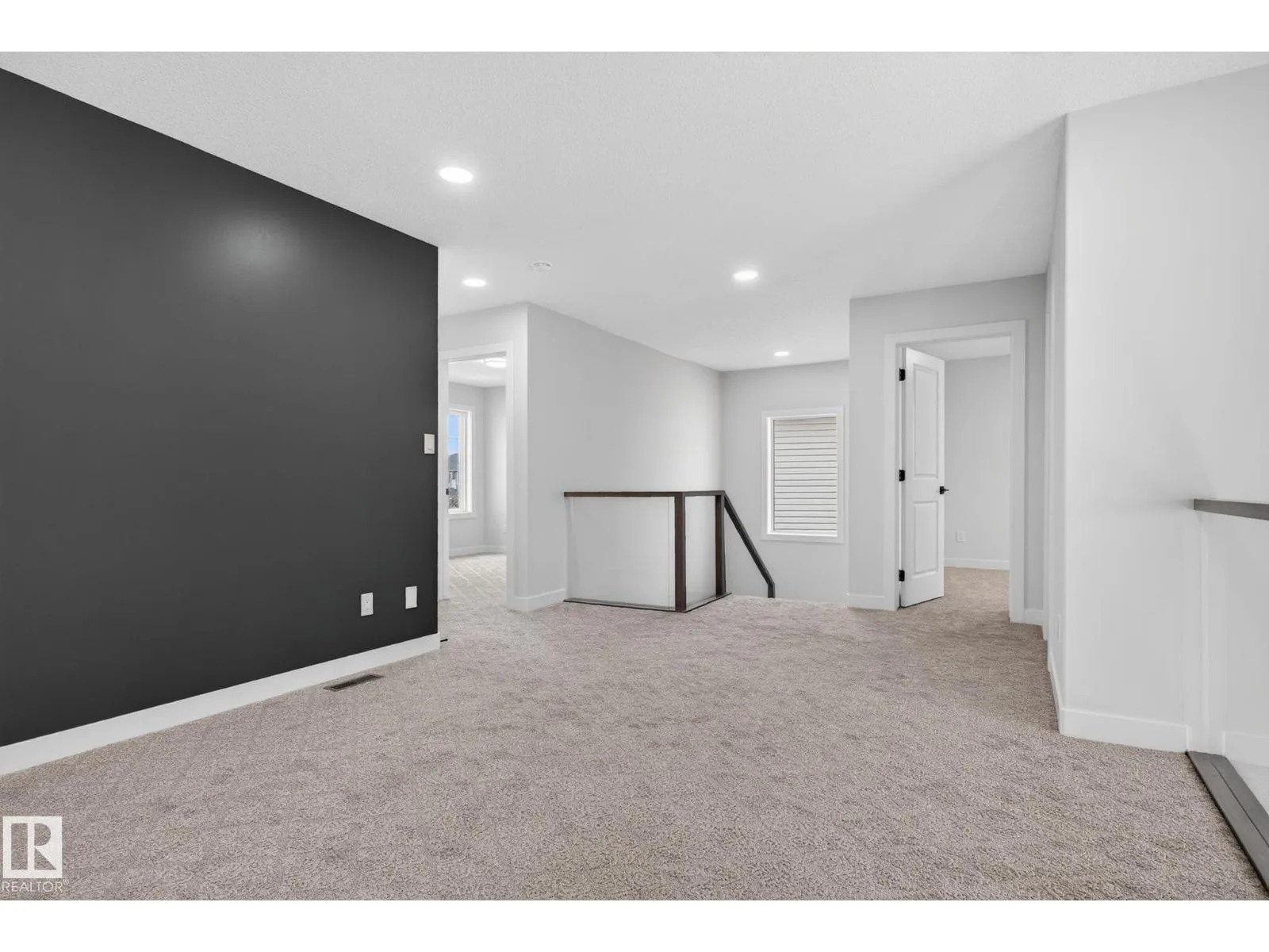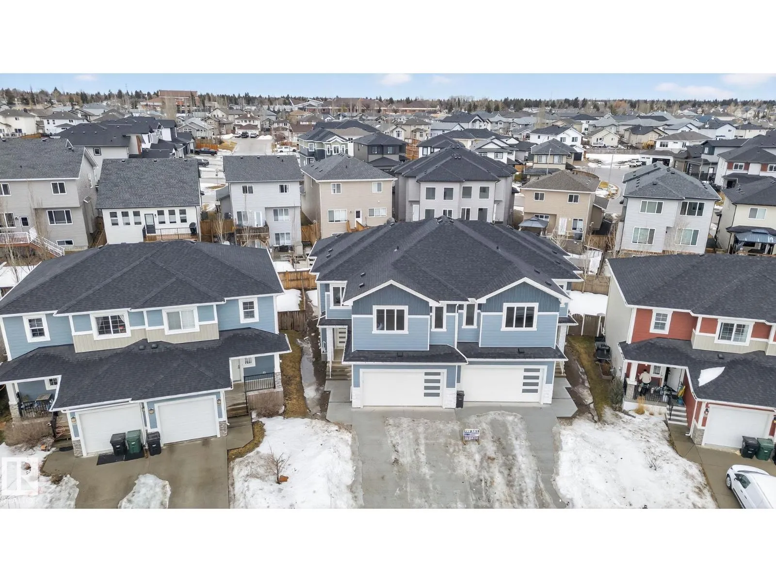 RARE FIND! Built by Sunnyview Homes this half duplex boasts over 2100sqft. OVERSIZED double attached garage with a HUGE 4 car driveway. Main floor den/bedroom with a 3-piece bathroom. The U-shaped kitchen features, upgraded ceiling height cabinets with quartz countertops. The open to below living space has a feature wall with an electric fireplace. The glass railing with step lights leads upstairs to a good sized bonus room over looking the living room. Primary bedroom features a WIC and 5-piece ensuite with double vanity, jacuzzi and custom shower w/bench for added convenience. Additionally there are 2 good sized bedrooms that share a 4-piece bathroom. Features upper level laundry, a separate side entrance to the basement, large backyard, 3 gas lines, garage drain, plush carpet, premium lighting package, MDF shelving and much more. Plenty of large windows throughout. Close to shopping, schools, and public transportation. The size and upgrades are a rare find for a duplex! Must see. (id:27476)