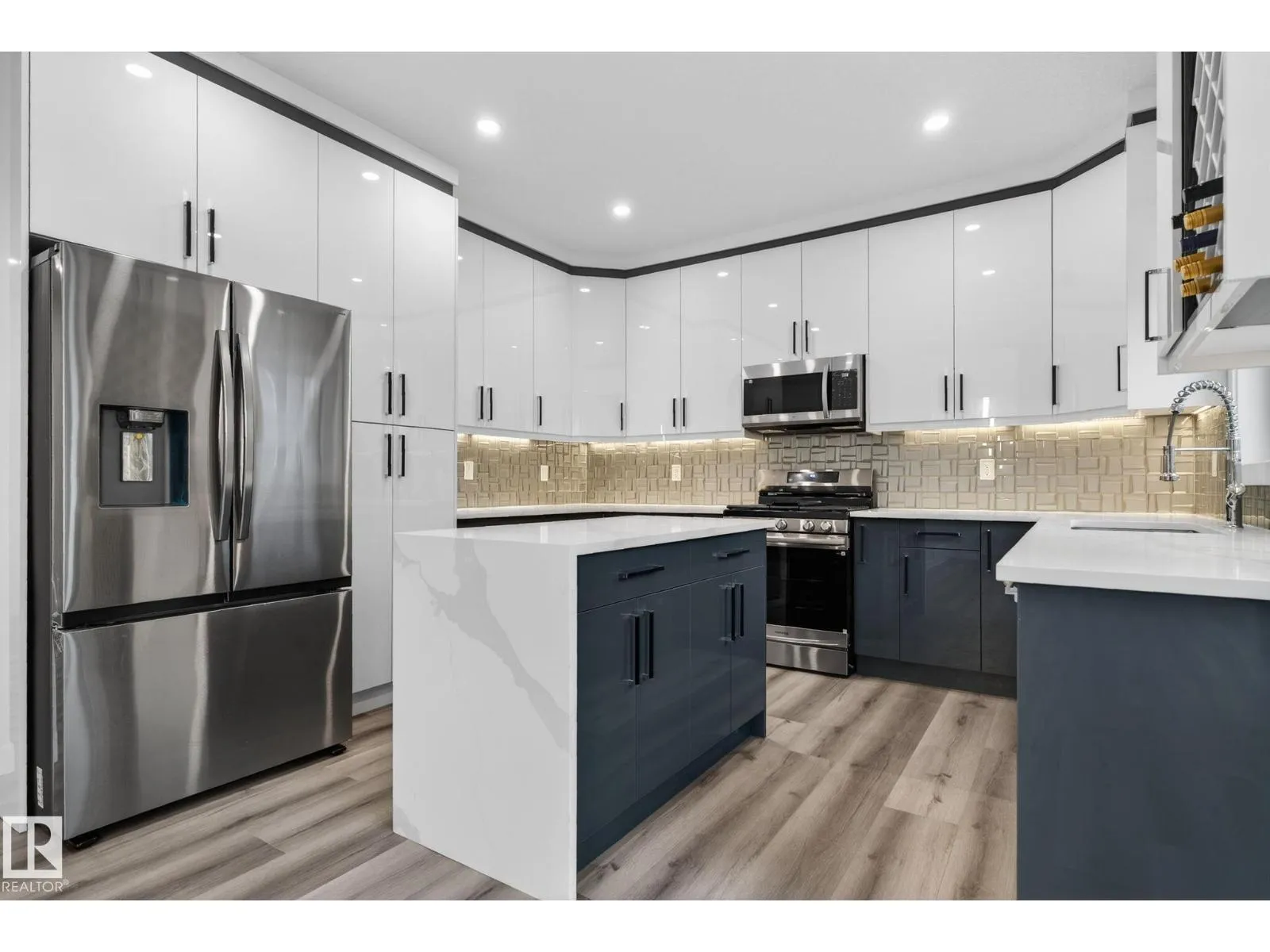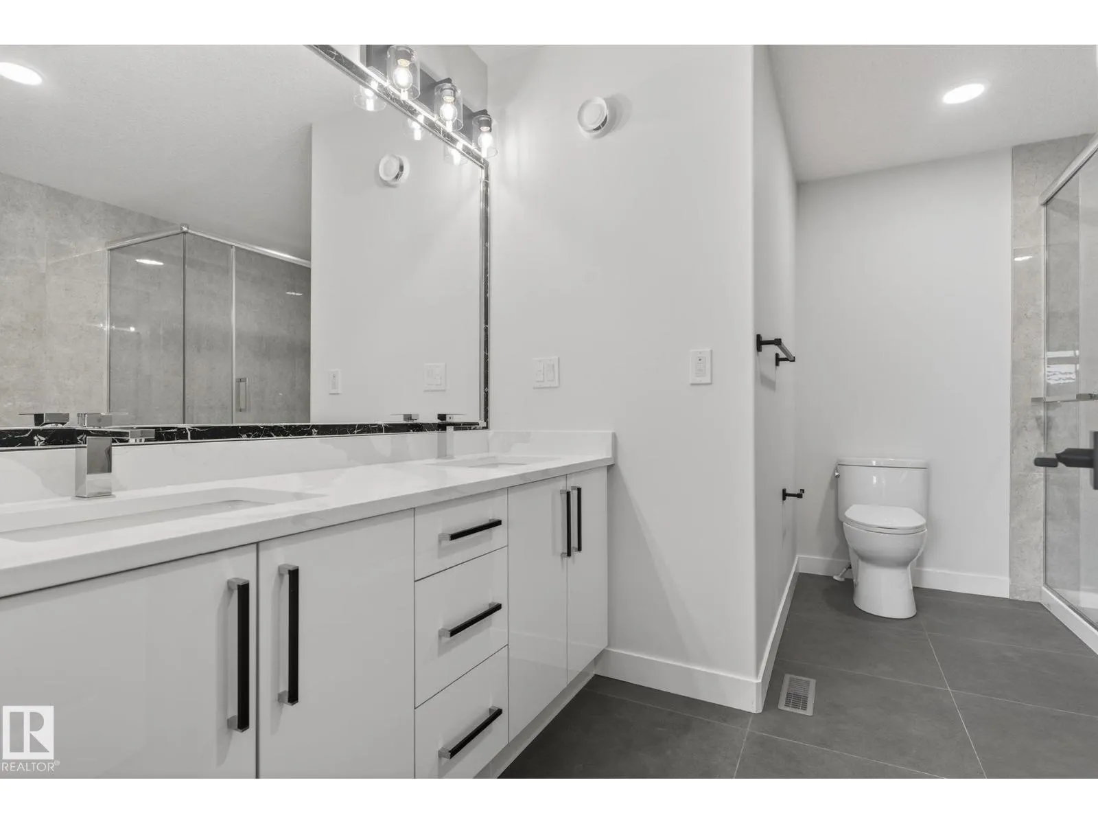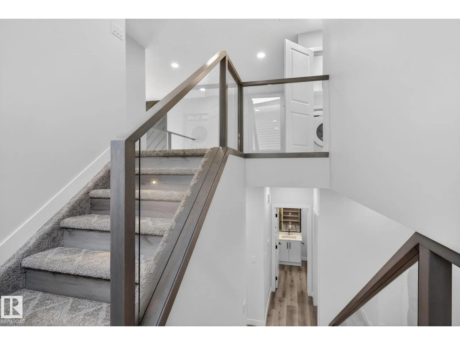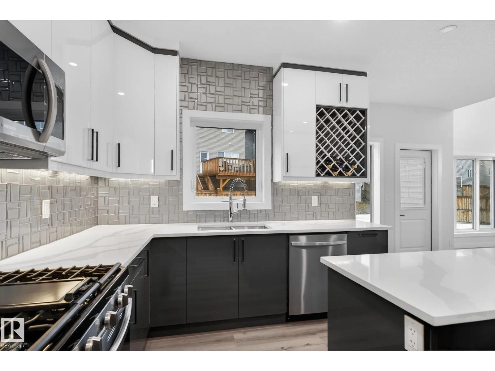 RARE FIND! Built by Sunnyview Homes this half duplex boasts over 2100sqft. OVERSIZED double attached garage with a HUGE 4 car driveway. Main floor den/bedroom with a 3-piece bathroom. The U-shaped kitchen features, upgraded ceiling height cabinets with quartz countertops. The open to below living space has a feature wall with an electric fireplace. The glass railing with step lights leads upstairs to a good sized bonus room over looking the living room. Primary bedroom features a WIC and 5-piece ensuite with double vanity, jacuzzi and custom shower w/bench for added convenience. Additionally there are 2 good sized bedrooms that share a 4-piece bathroom. Features upper level laundry, a separate side entrance to the basement, large backyard, 3 gas lines, garage drain, plush carpet, premium lighting package, MDF shelving and much more. Plenty of large windows throughout. Close to shopping, schools, and public transportation. The size and upgrades are a rare find for a duplex! Must see. (id:27476)