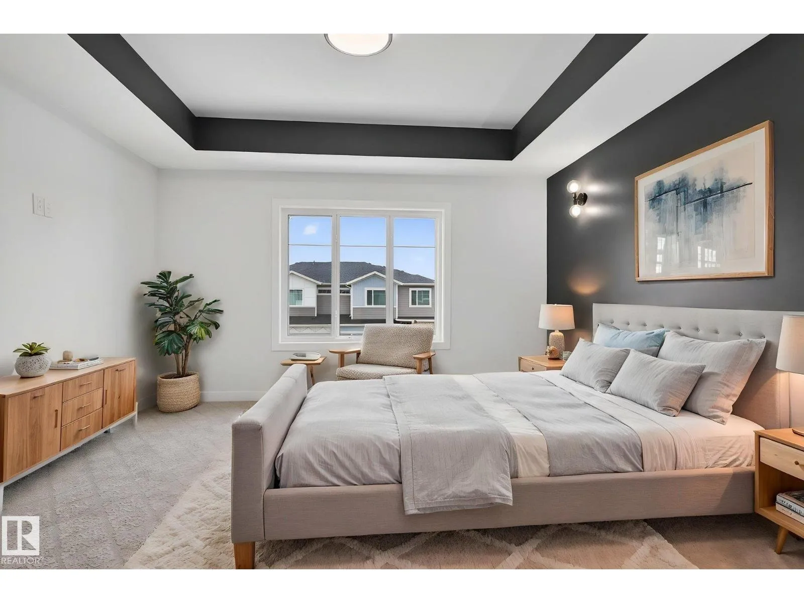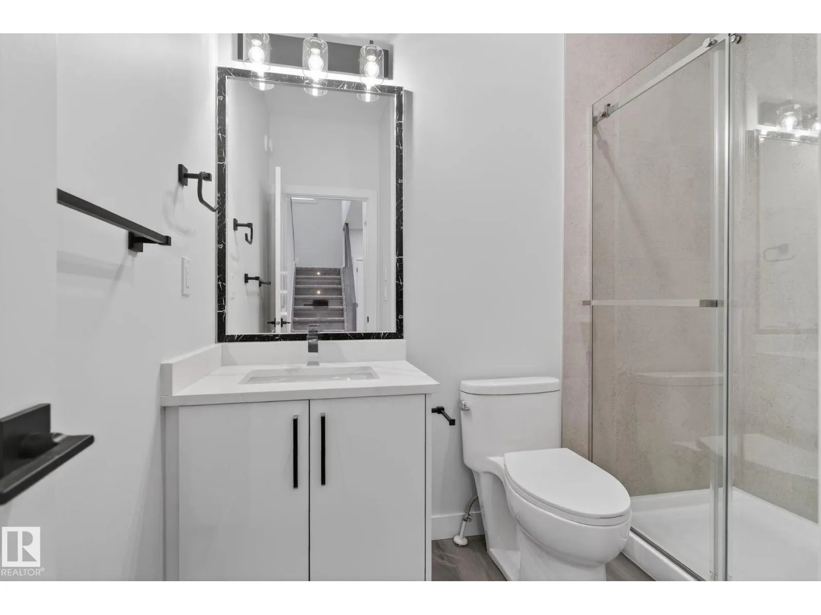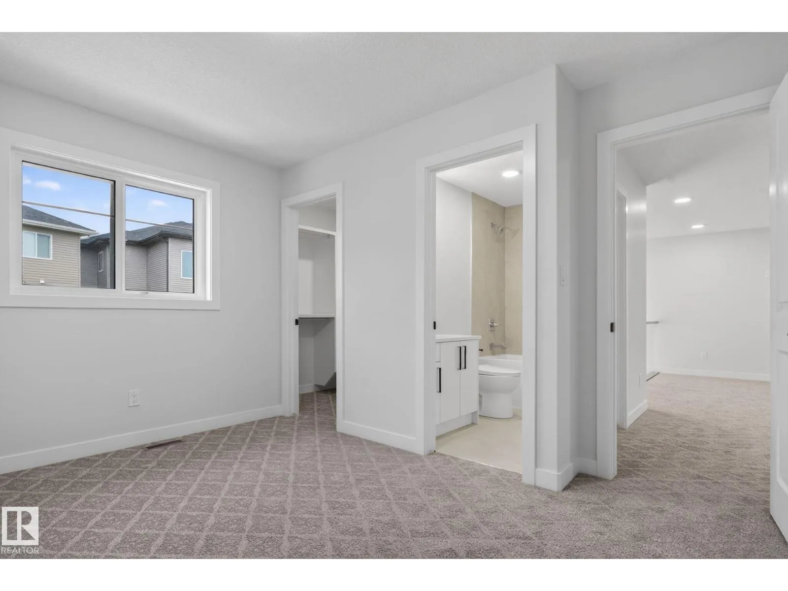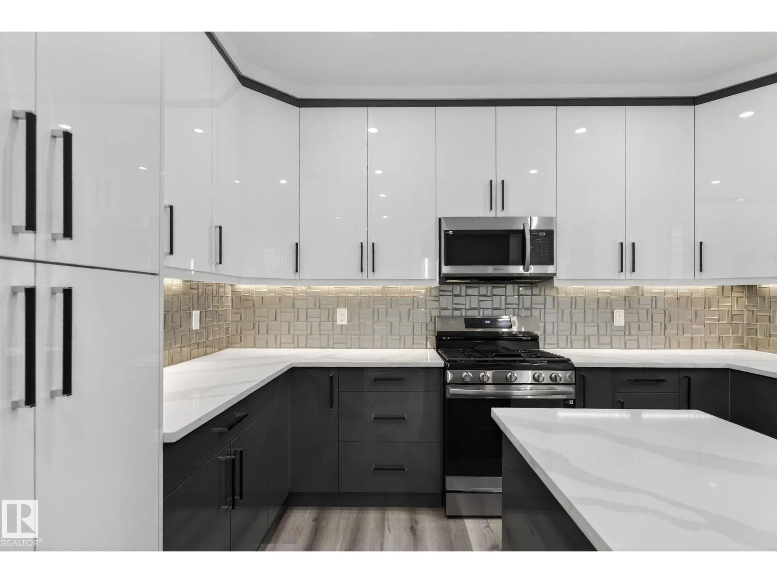 RARE FIND! Built by Sunnyview Homes this half duplex boasts over 2100sqft. OVERSIZED double attached garage with a HUGE 4 car driveway. Main floor den/bedroom with a 3-piece bathroom. The U-shaped kitchen features, upgraded ceiling height cabinets with quartz countertops. The open to below living space has a feature wall with an electric fireplace. The glass railing with step lights leads upstairs to a good sized bonus room over looking the living room. Primary bedroom features a WIC and 5-piece ensuite with double vanity, jacuzzi and custom shower w/bench for added convenience. Additionally there are 2 good sized bedrooms that share a 4-piece bathroom. Features upper level laundry, a separate side entrance to the basement, large backyard, 3 gas lines, garage drain, plush carpet, premium lighting package, MDF shelving and much more. Plenty of large windows throughout. Close to shopping, schools, and public transportation. The size and upgrades are a rare find for a duplex! Must see. (id:27476)