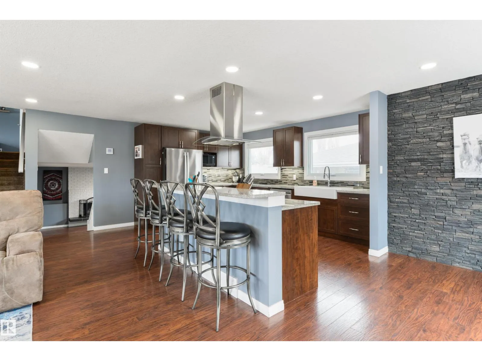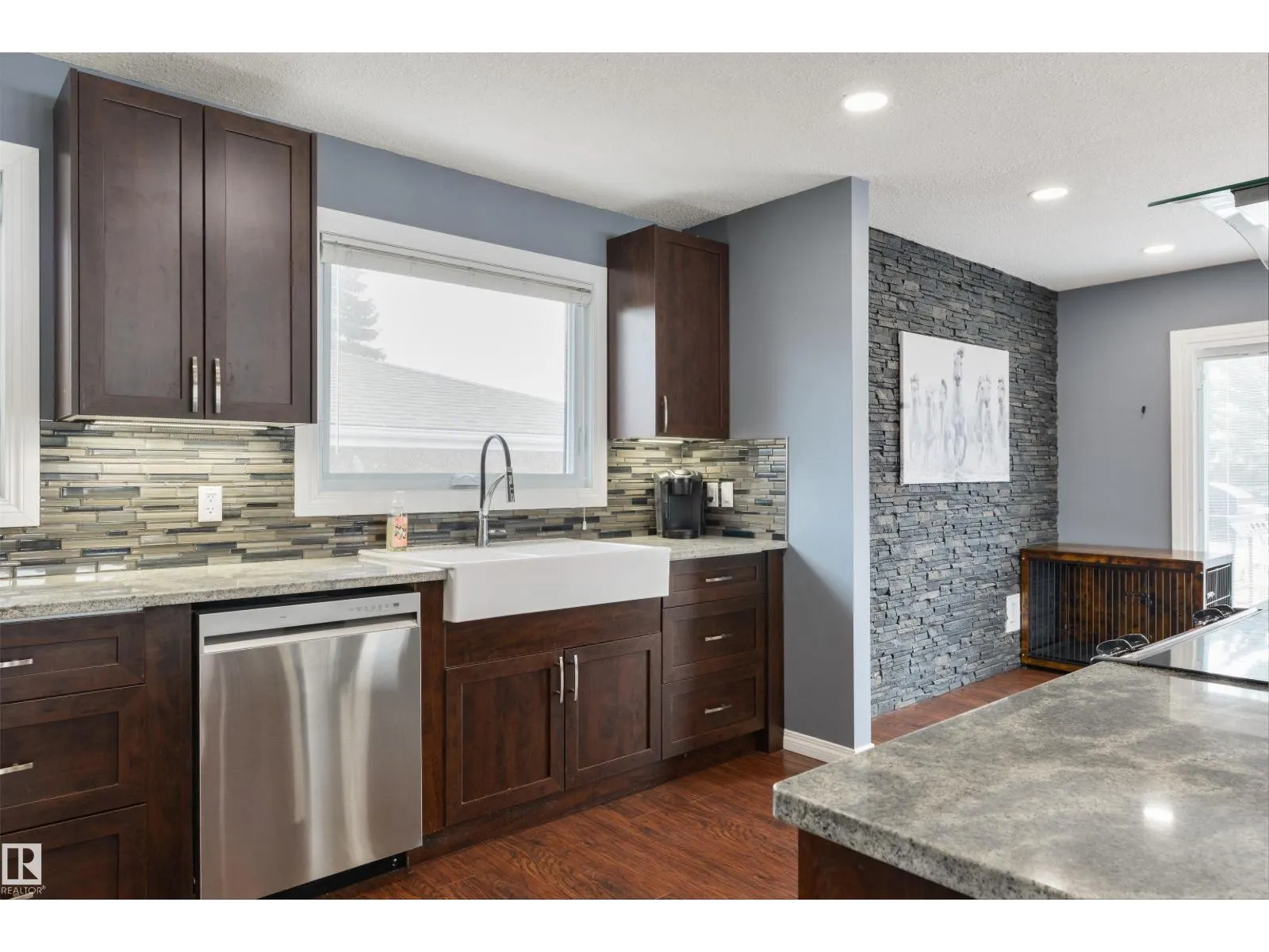 Fully-finished in the heart of Woodhaven, this beautifully renovated home is ready for you! Freshly painted with central A/C, the main floor features an open-concept layout with large living room and bay window, Chefâs kitchen with updated cabinetry, QUARTZ countertops, stainless appliances, center island, separate dinette, and garden doors leading out to the deck. Upstairs offers 3 sizeable bedrooms including a king-sized ownerâs suite with walk-in closet & 3pc ensuite, plus a 5pc guest bath. The lower levels are fully developed with a family room with wood-burning fireplace, 3pc bath, laundry room with direct access to the HEATED double-attached garage, a den, 4th bedroom, and ample storage throughout. Situated on a desirable corner lot, this home is fully landscaped & fenced with side lane access, an OVERSIZED driveway with parking for multiple vehicles, and is walking distance to trails, playgrounds, schools & public transit. Itâs absolutely perfect! (id:27476)