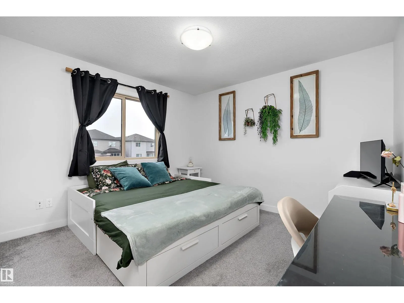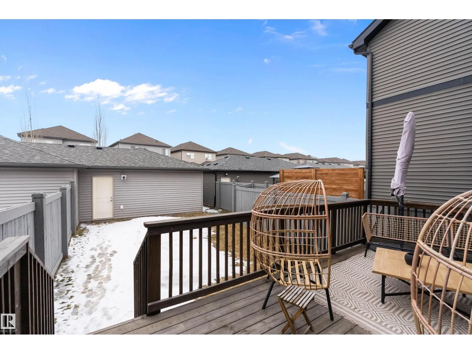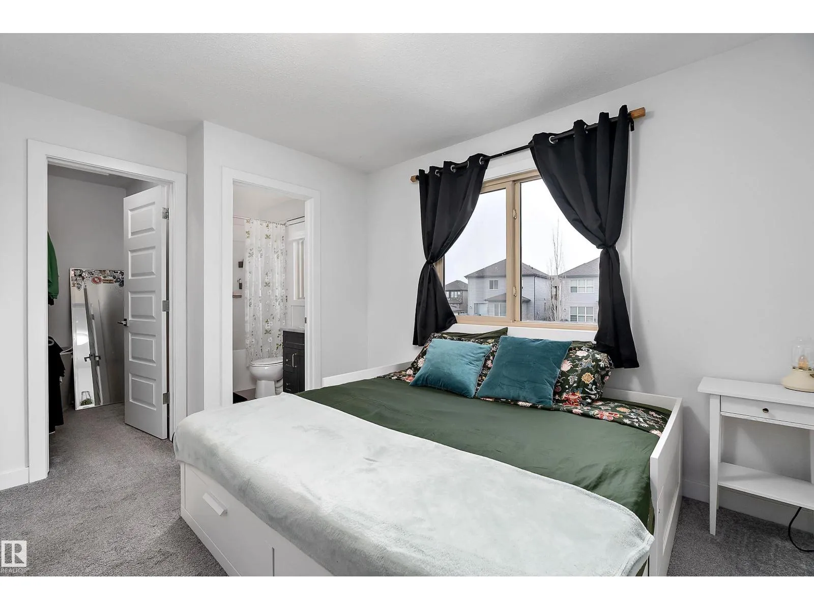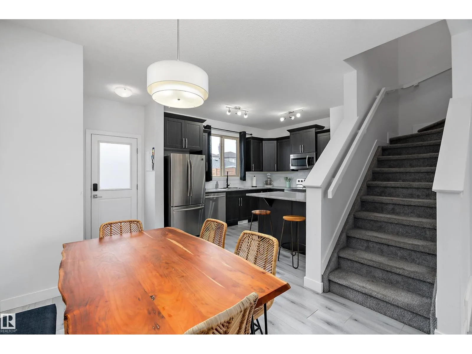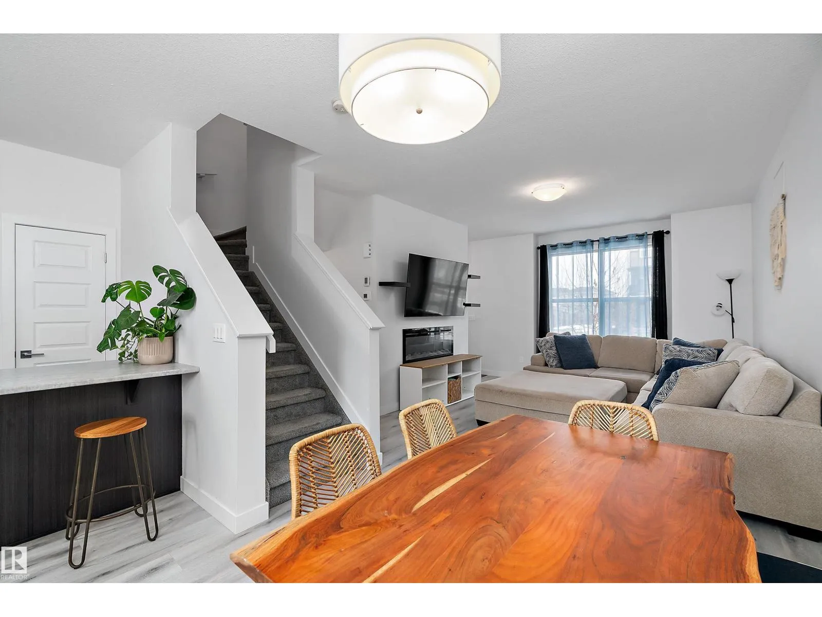 Well maintained, Move-in ready 3 bedroom, 2.5 bath half duplex located in the desirable community of Greenbury. This modern home offers an open-concept main floor featuring 9' ceilings, stylish finishes, electric fireplace & plenty of natural light. Good sized kitchen with lots of cupboards, convenient peninsula for extra counter space with loads of storage. Convenient access to the west facing deck & rear double detached garage. Upstairs, find 3 comfortable bedrooms including a generous primary suite with ensuite & walk in closet. 2 other nice sized bedrooms & a 4 piece main bath complete the top floor. Enjoy year-round comfort with central air conditioning & custom zebra blinds throughout. The unfinished basement is home to the top of the line washer & dryer & is ready for future development for extra living space. Low maintenance landscaping & fully fenced for beautiful curb appeal. Located close to parks, schools, and amenities, this home offers the perfect blend of comfort, style, and potential. (id:27476)