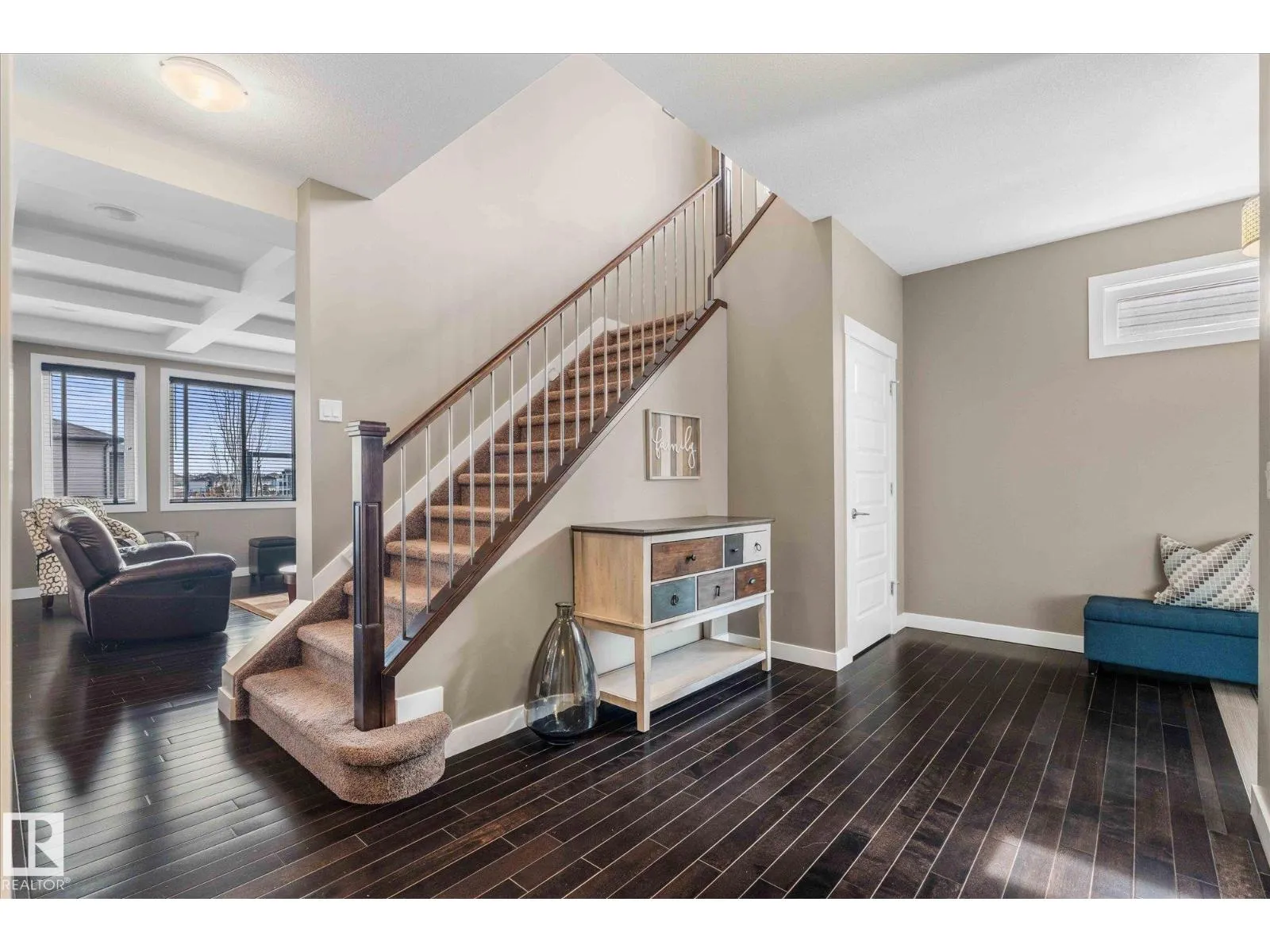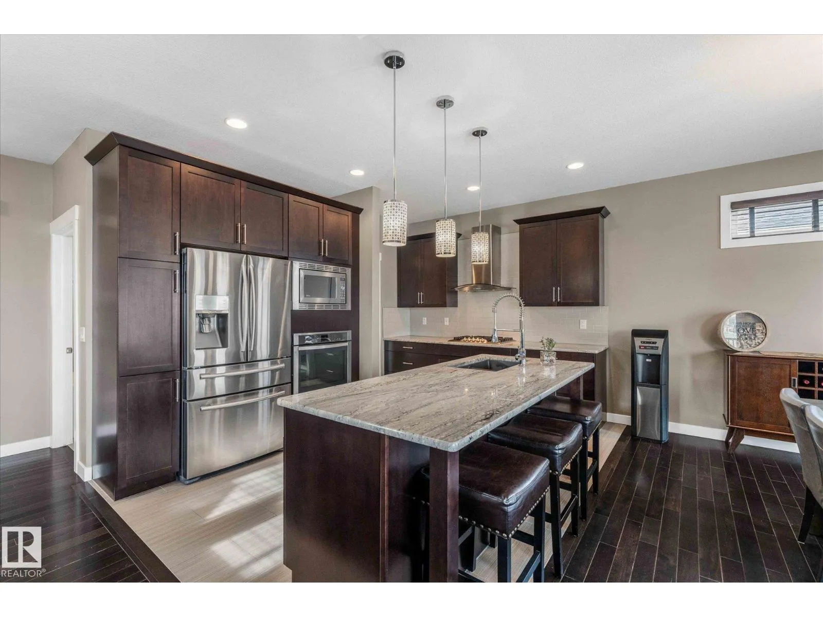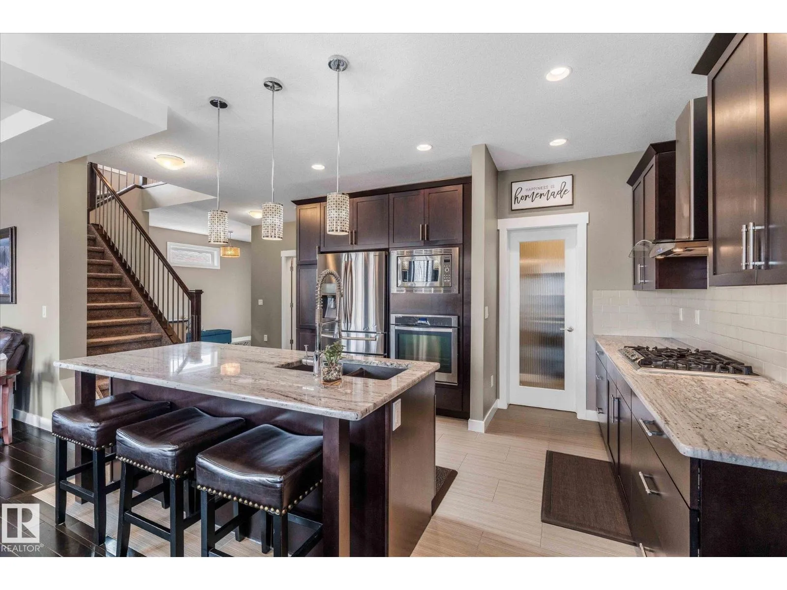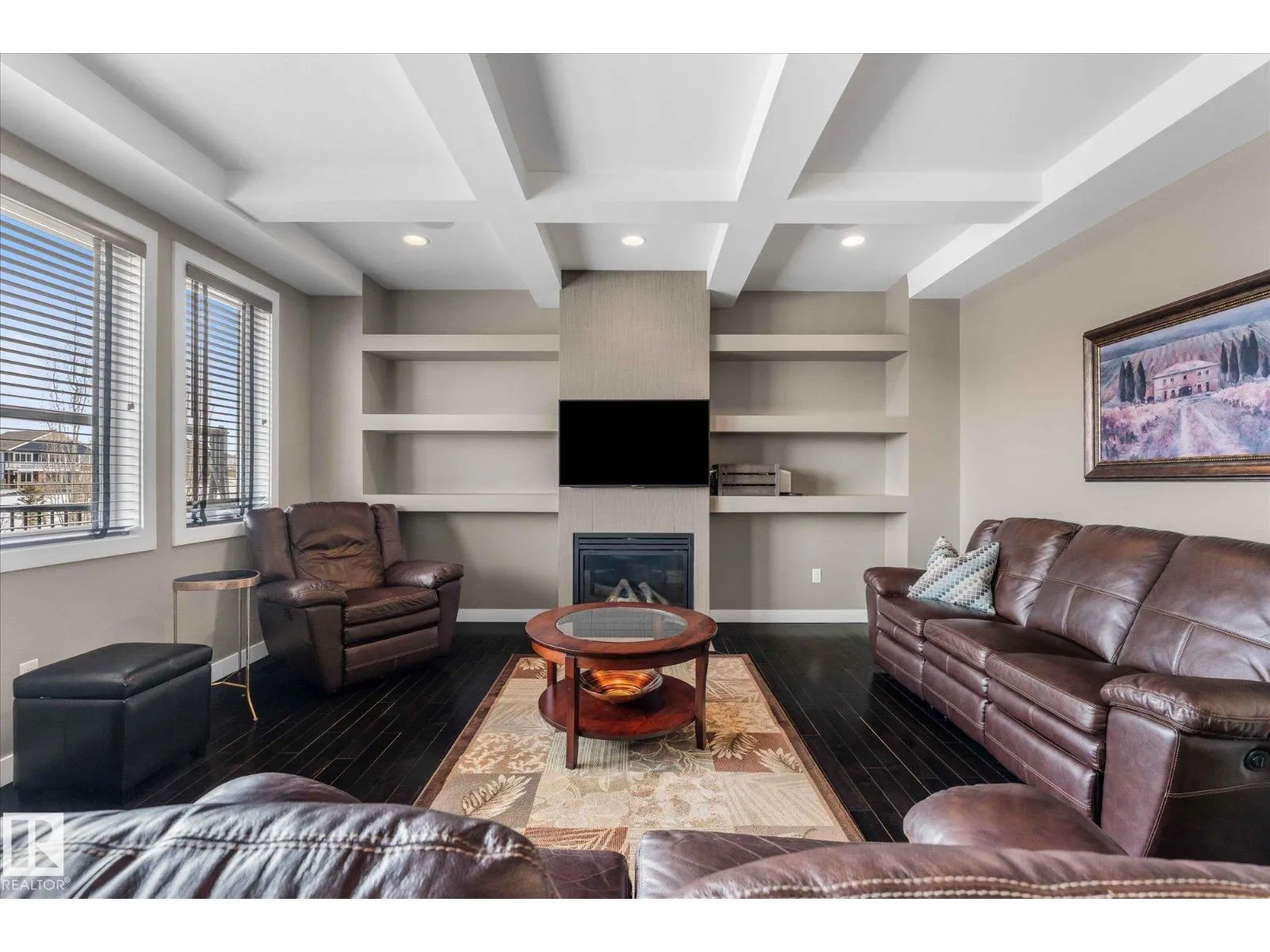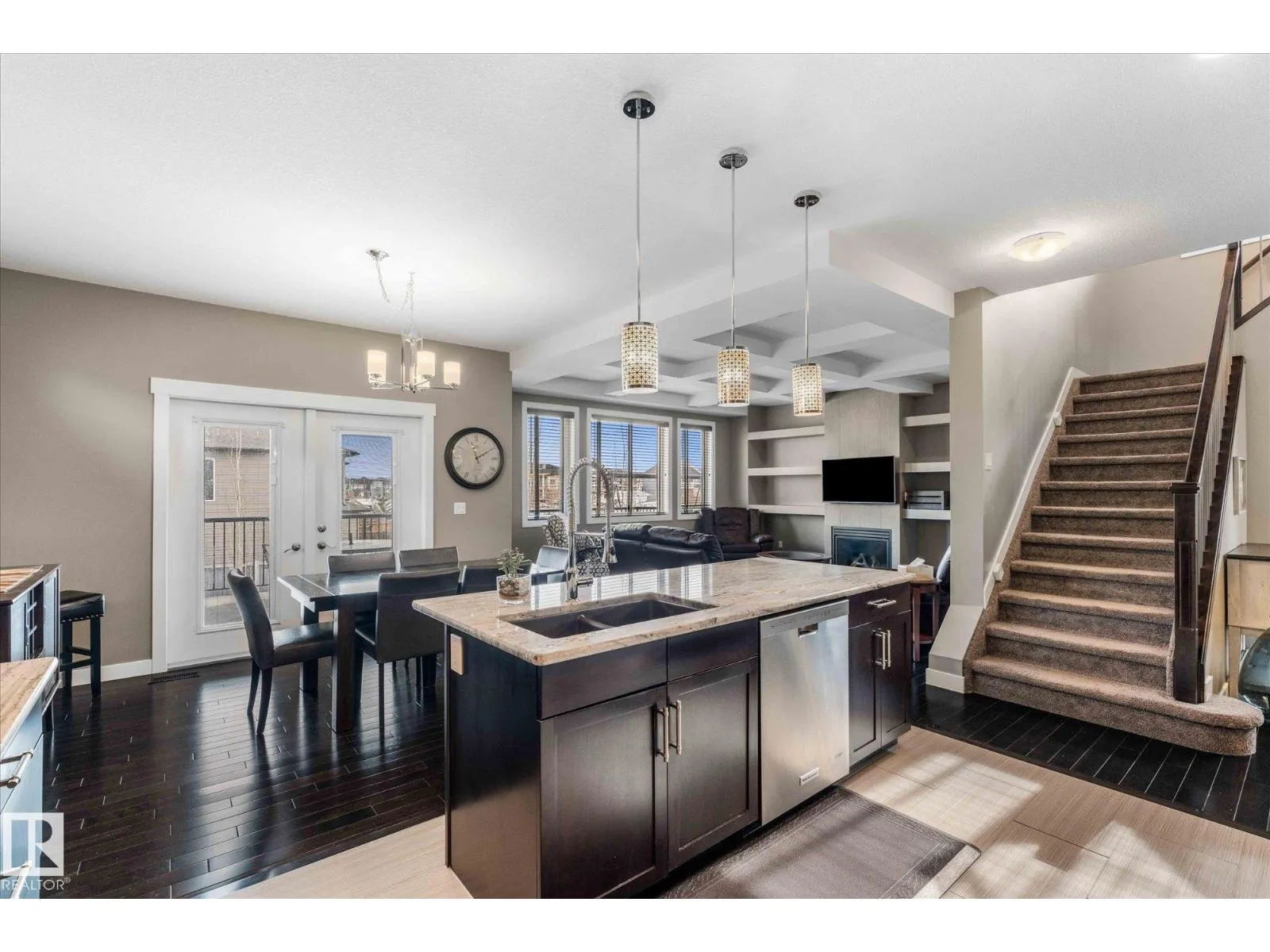 Welcome to 64 Hilldowns Drive in Spruce Grove, an impressive 2,149 sq ft two-storey with a fully finished walkout basement backing onto scenic trails leading to a tranquil pond. Thoughtfully designed for both comfort and style, the main floor features hardwood flooring, quartz countertops, and a spacious kitchen ideal for entertaining. The living room is highlighted by beautiful coffered ceilings, creating an elegant and inviting atmosphere. Upstairs offers 3 bedrooms plus convenient laundry, a 4-piece main bath, and a stunning primary retreat complete with a luxurious 5-piece ensuite and an expansive walk-in closet with custom organizers. The finished walkout basement adds exceptional living space with a large family room, fourth bedroom, and 4-piece bathroom which is perfect for guests or a growing family. Additional features include central air conditioning and a heated garage with radiant heat. Exceptional location close to trails, nature, and amenities. (id:27476)