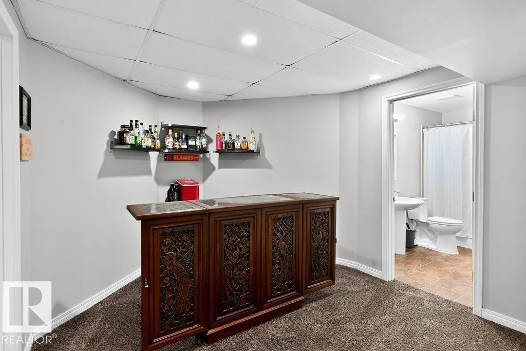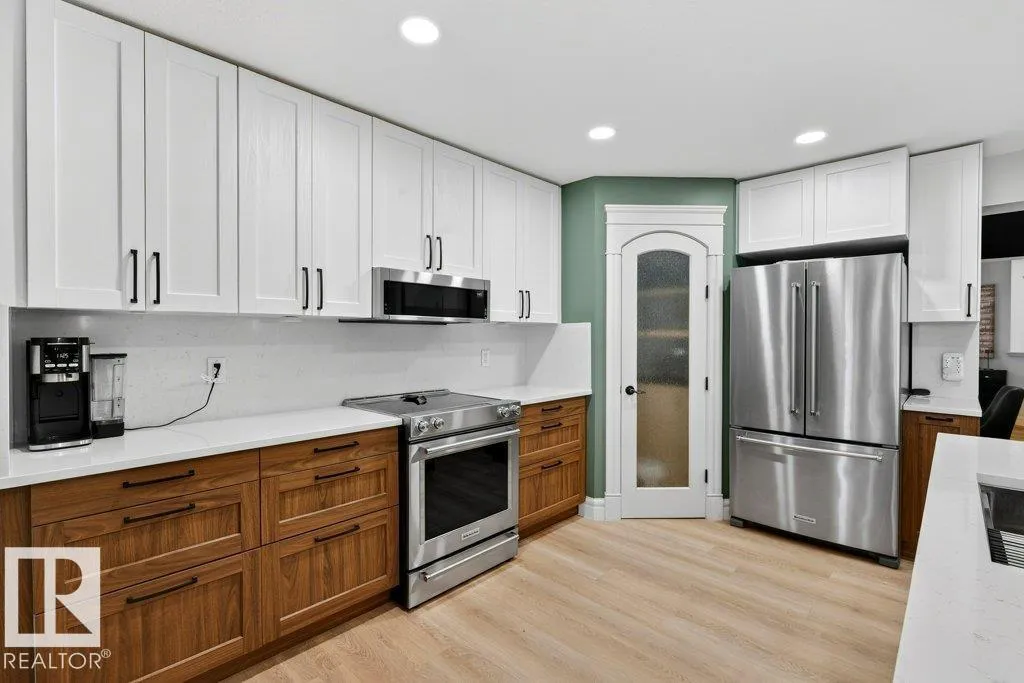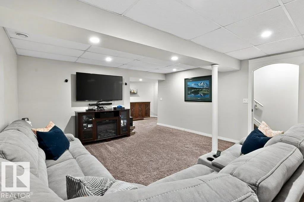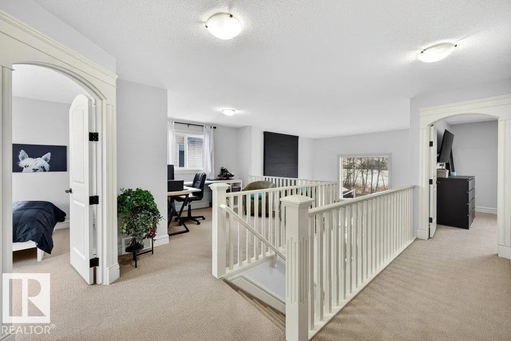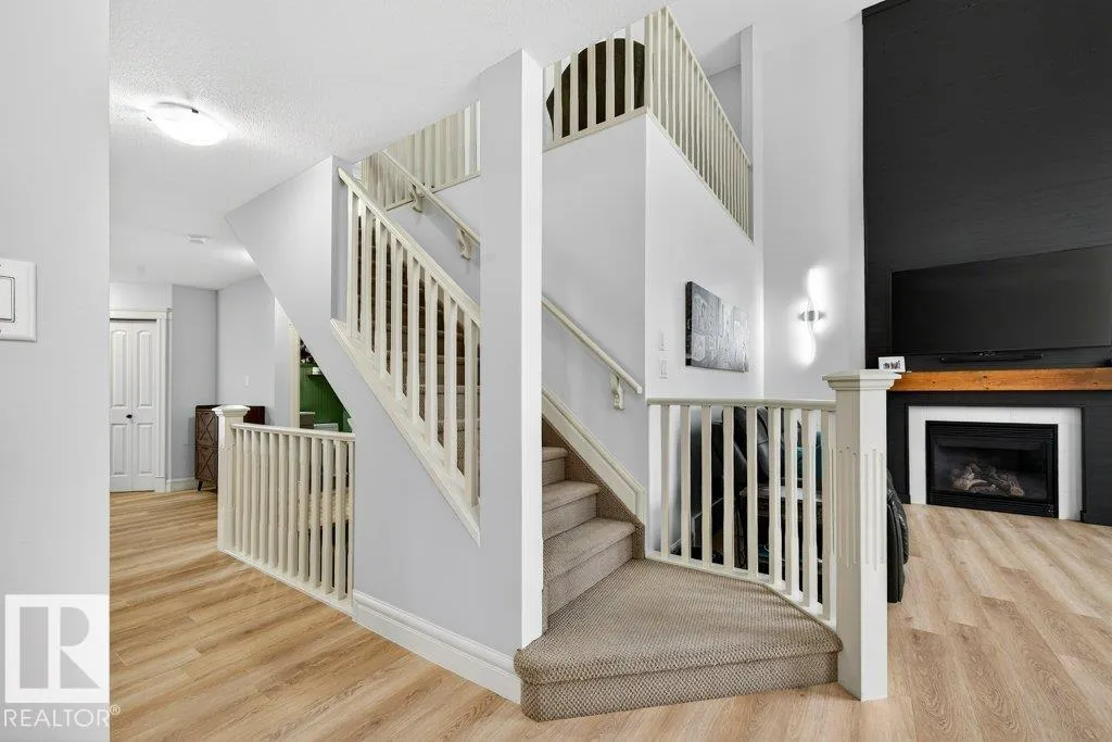 This beautiful Hickory Trail home in Spruce Grove, is backing onto trees & a walking path, close to the Tri Leisure, schools, restaurants, and shopping! Upstairs, there are 3 bedrooms, 1 down and the main level has a room that can be converted to an office, a 5th bedroom, or even a larger laundry room. Enjoy neutral paint throughout, curved doors, new decks, an upgraded kitchen with a large island & quartz countertops, a custom pantry, SS appliances, AND a Breakfast nook with a great view of the trees behind the house! The main level features a new fireplace feature wall that soars to the ceiling, vinyl plank floors, a dining room feature wall, modern pot lighting, AND an updated guest bath. You can also work from your home office upstairs with a view overlooking the trees. The Primary Bedroom is KING SIZE with a large bath & walk-in closet, and the basement is fully developed for ample living space, with a bedroom, family room, gym/hobby room, and a 4 pc bath. Everything you need is here! (id:27476)