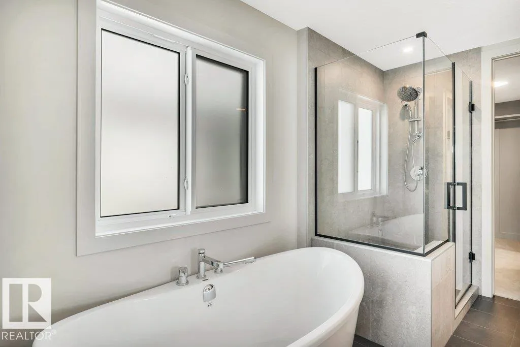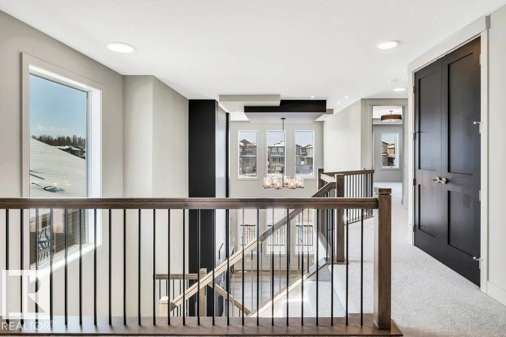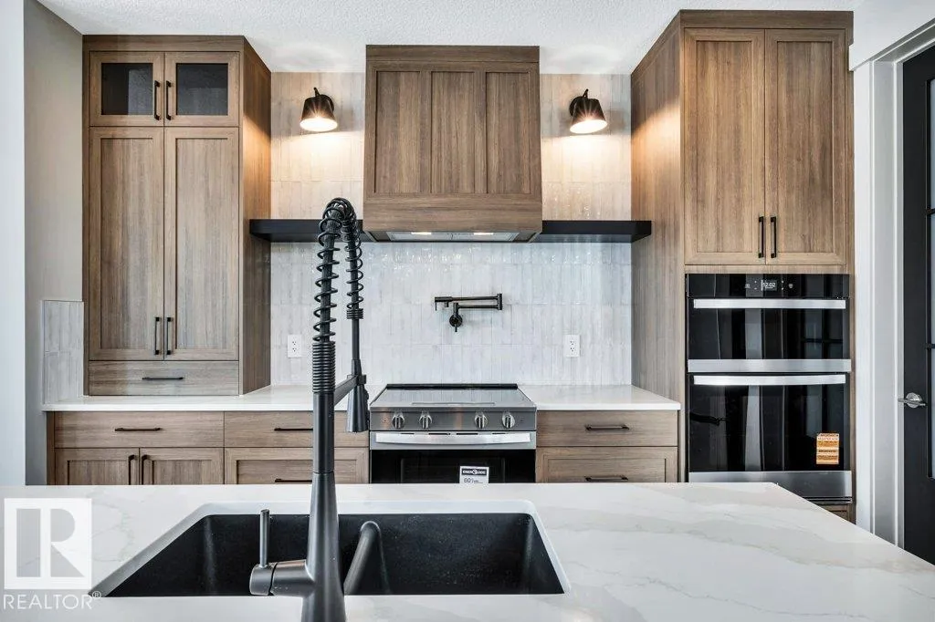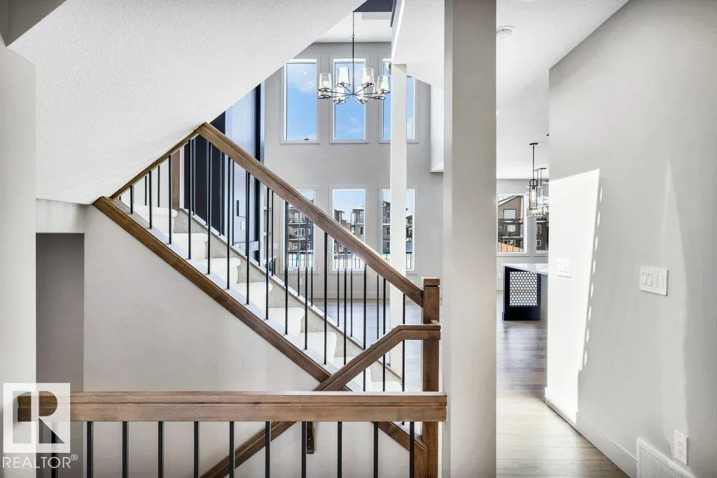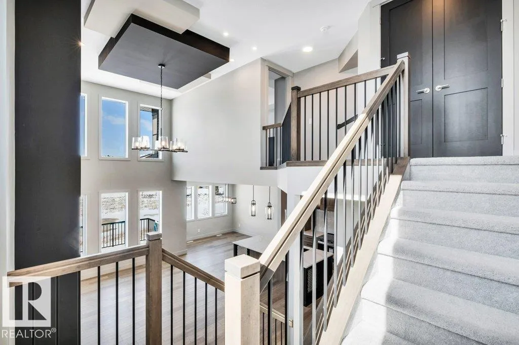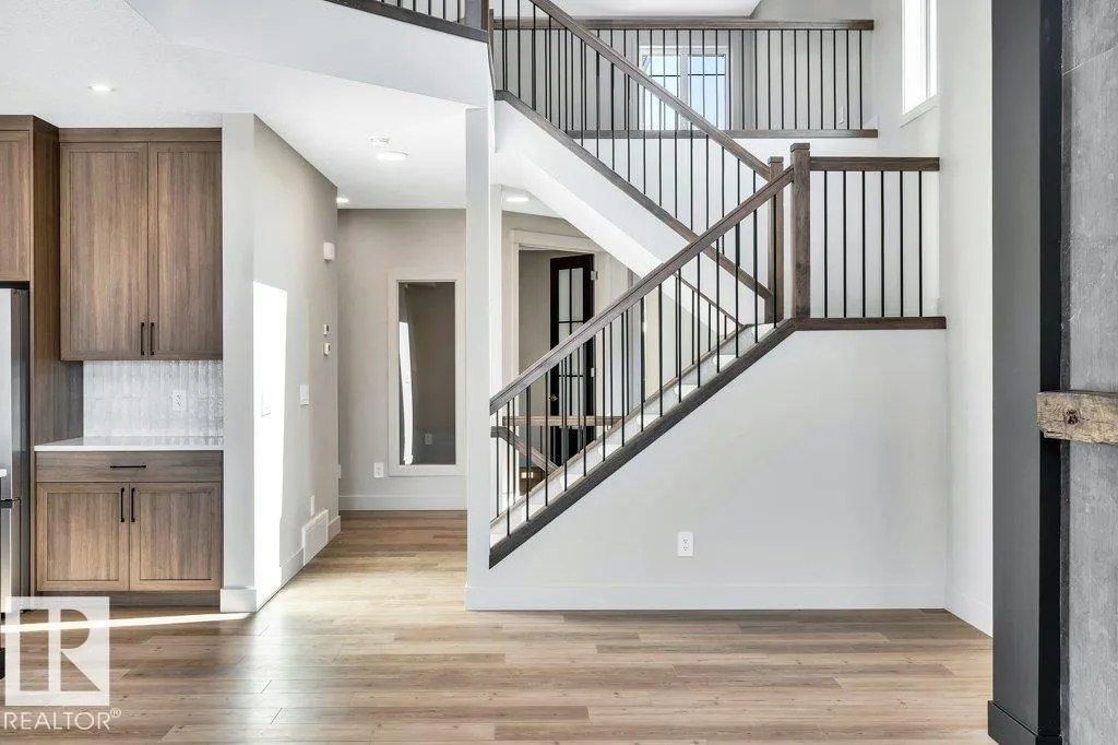 Welcome to this exquisite two-story walk-out home backing a pond built by Homexx. The main floor features an open-concept layout, ideal for entertaining. The chef-inspired kitchen boasts a large island, custom cabinetry, stainless steel appliances, and overlooks the dining area and great room. Upstairs, you'll find four spacious bedrooms, a bonus room with a vaulted ceiling, a laundry room, and two bathrooms. The primary bedroom is bright and airy, offering a 5-piece ensuite with a separate shower and tub, plus an impressive walk-through closet leading to the laundry. Additional highlights include quartz countertops, elegant lighting, luxury vinyl plank flooring, a gas fireplace, 8-foot interior doors, stylish railings with wrought iron spindles and 200 amp service. With excellent curb appeal, a double oversized attached garage, and proximity to walking trails this home has it all. (id:27476)