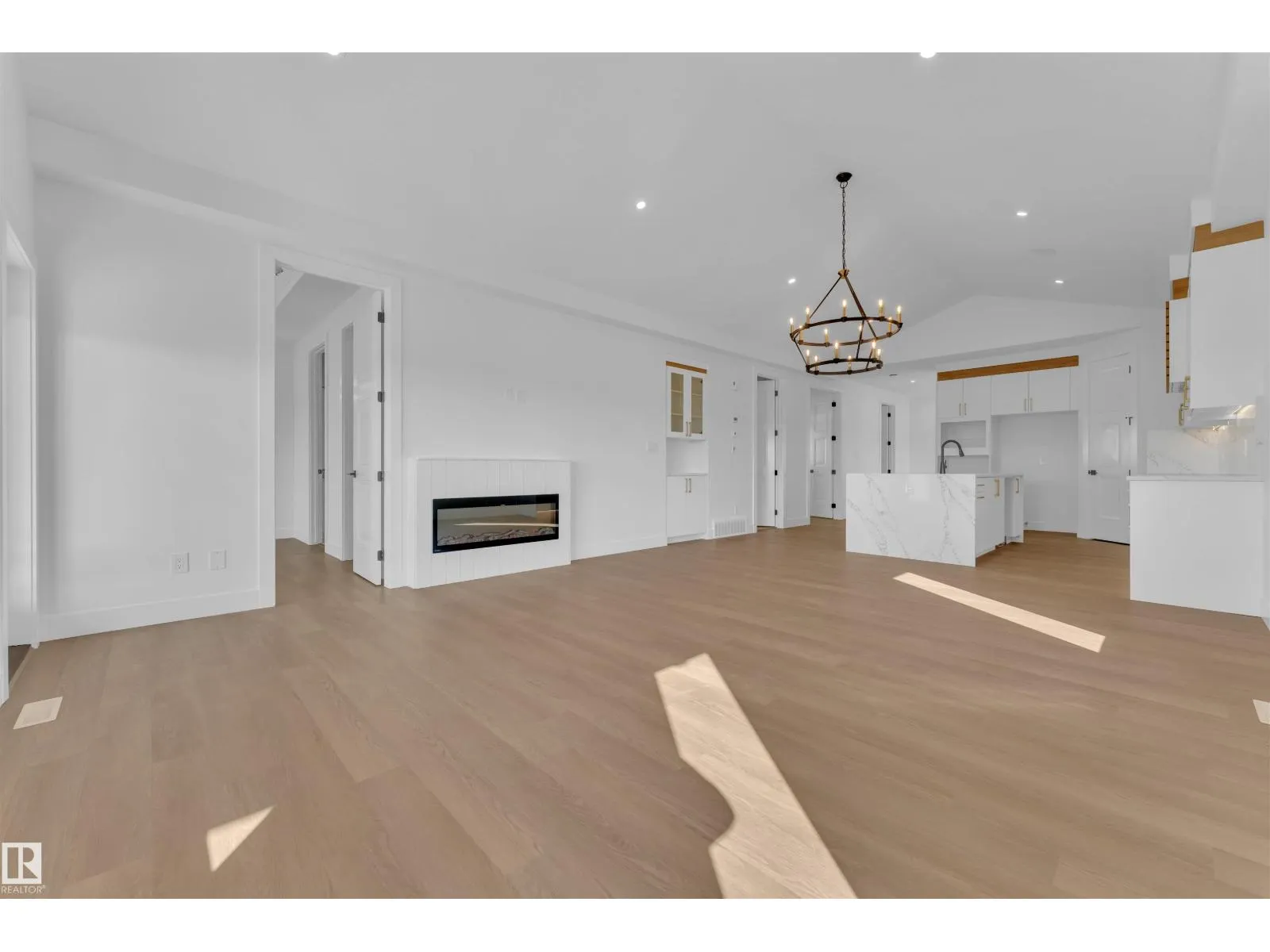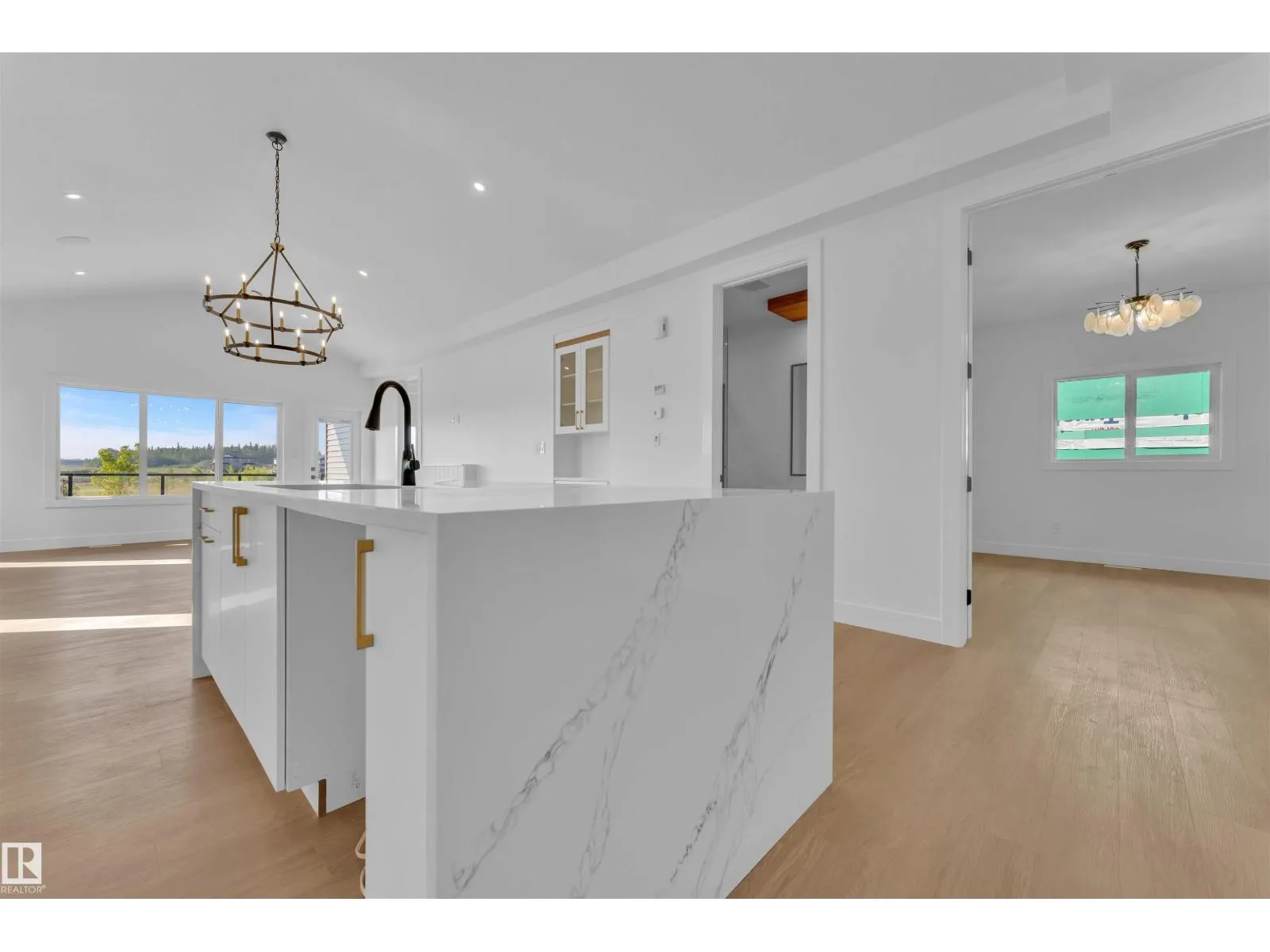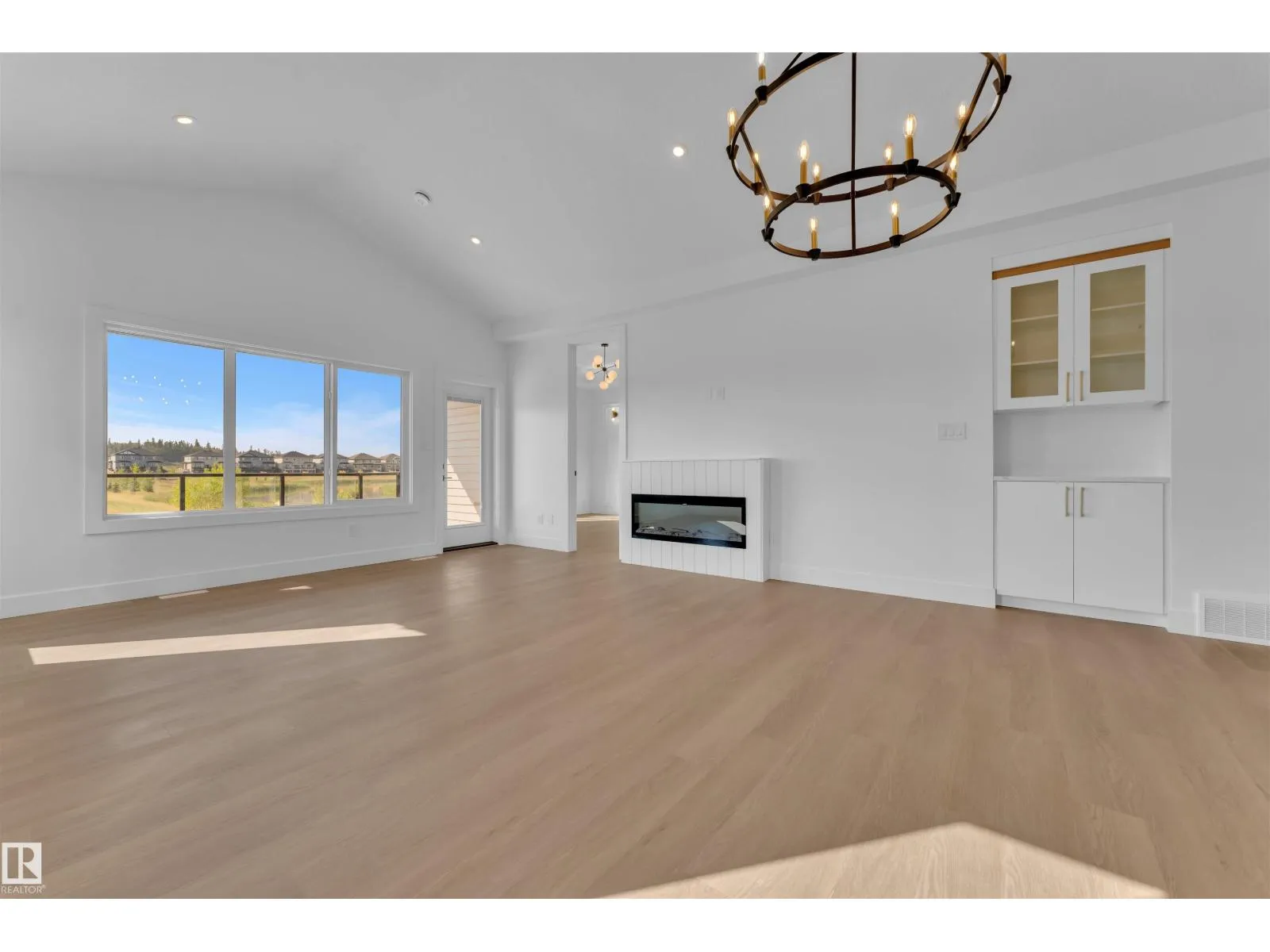 READY TO MOVE IN ! BRAND NEW bungalow with approx. 3000 SQ FT total living space including a fully FINISHED BASEMENT, including 2 MASTER SUITES, BACKING TO POND. This HIGH-END property features PREMIUM FINISHES in every corner, LUXURY vinyl plank flooring, CUSTOM railing, and 2-tone cabinets. The main kitchen features waterfall island, under cabinet lights, and upgraded quartz countertops. Enjoy the open concept living area with ELECTRIC FIREPLACE, accent wall, and abundant natural light from premium TRIPLE-PANE WINDOWS. Highlights include a huge covered balcony, built in SPEAKERS, laundry with sink & cabinet space and a wet bar in the basement. With soaring CEILINGS on both levels, PREMIUM LIGHTING, MULTIPLE INDENT CEILINGS with rope lights, FEATURED WALLS, and high end quality with premium finishes, this home exudes luxury. A pond at rear ensures no immediate neighbors. Steps from three schools and parks, with quick amenity access! (id:27476)