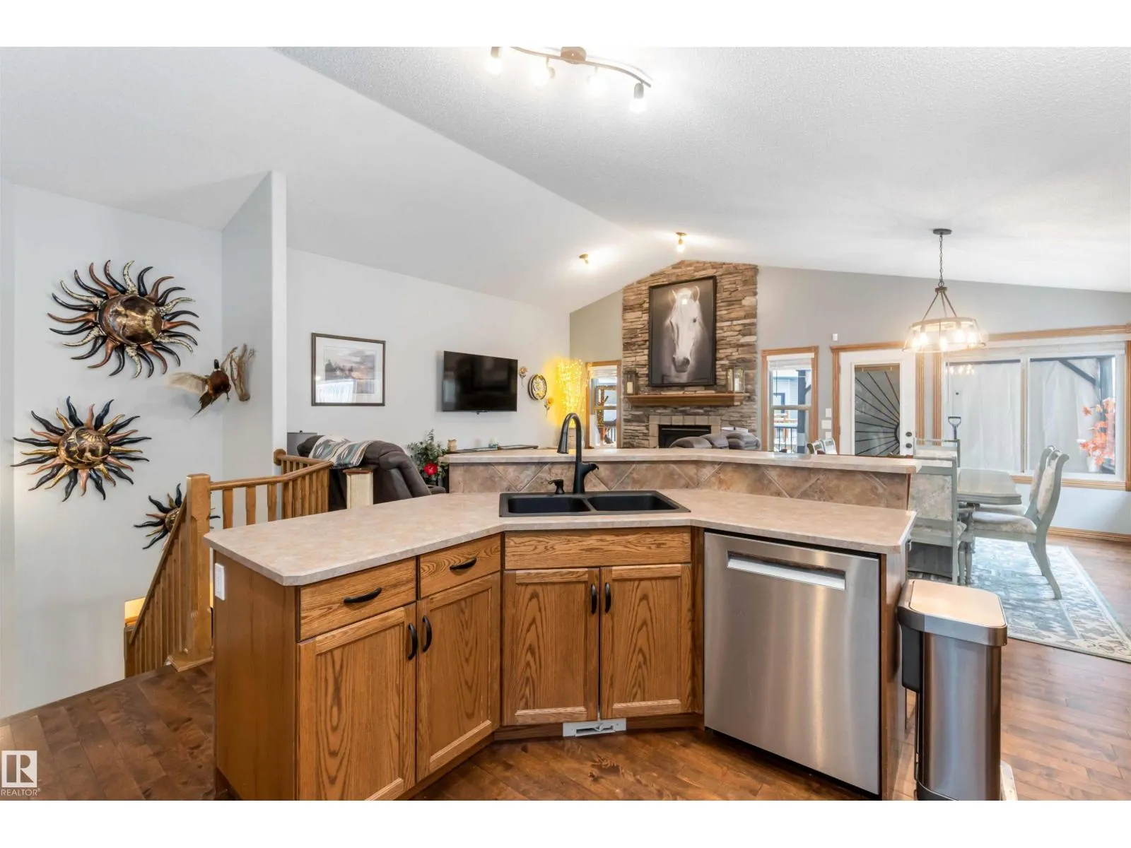 This beautiful spacious BUNGALOW in the Linkside subdivision. With over 3000 sq ft total living space, this home has a beautiful west facing deck and an east facing front porch to enjoy the sunrise and sunsets. The backyard is gorgeous with perennials, this low maintenance yard includes a garden shed and is fully fenced and has inground sprinkler system front and back. The main level entry is spacious and has a large den off to the side. The main floor features your open concept kitchen, living/ dining room with a gas fireplace and stone surround. Access to your heated o/s garage is just off the main floor laundry. There is a full bath and another bedroom on the main & the primary suite features a 4 pc ensuite. The finished basement has a wet bar & family room with another gas fireplace. Additionally there are 2 bedrooms, storage room & full 4 pc bath downstairs which makes this basement perfect for entertaining the whole family! This home is meticulous and has been well cared for. (id:27476)