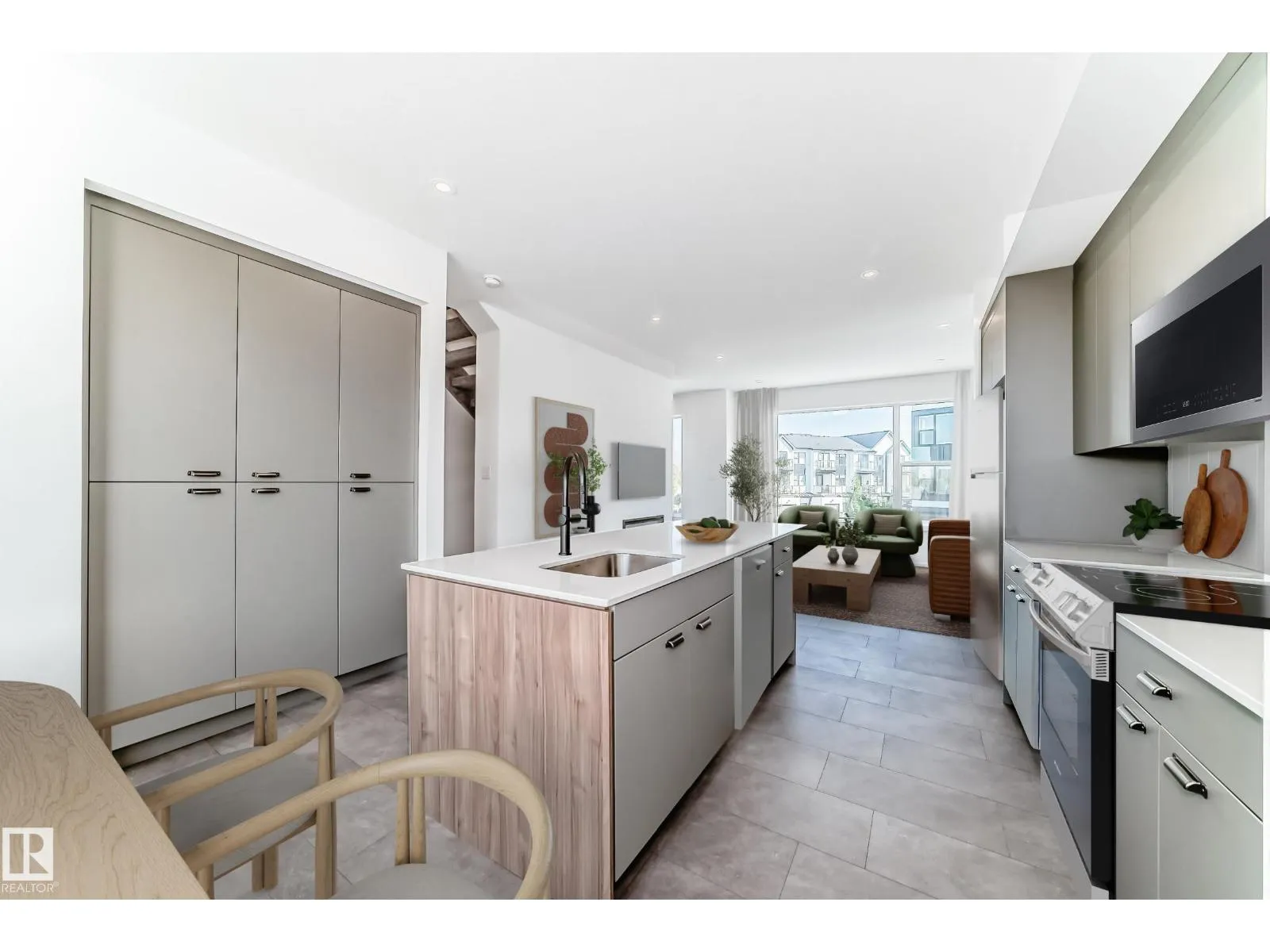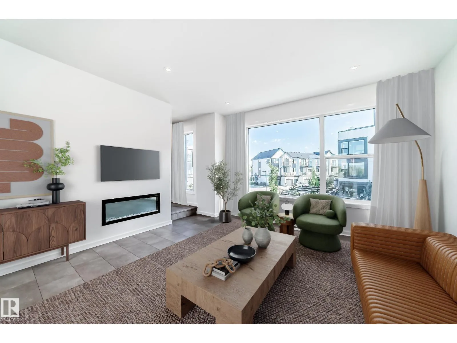 NEW CONSTRUCTION â READY FOR IMMEDIATE POSSESSION! Discover modern living in this Courtyard E townhome located at Midtown in St. Albert. With over 1,400 sq. ft. of thoughtfully curated living spaces, this home offers 2 spacious bedrooms, 2.5 bathrooms, and a double car garage with convenient foyer access. Oversized windows flood the home with natural light, highlighting the 42â electric fireplace in the great room. The kitchen is designed with both function and style in mind, featuring quartz countertops and a built-in pantry cabinet, while upgraded vinyl tile flooring enhances the second floor, foyer, laundry room, and bathrooms. Year-round exterior care - snow removal and landscaping maintenance - is included. Images and renderings are representative of the homeâs layout and/or design only and may include virtual staging. Exact finishes may differ. Sale price is inclusive of GST. Averton promotional pricing of $15,000 off this move in ready home until Nov 30 (id:27476)