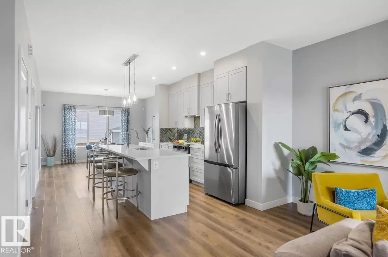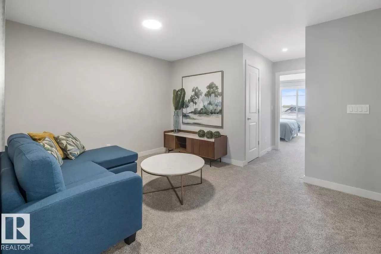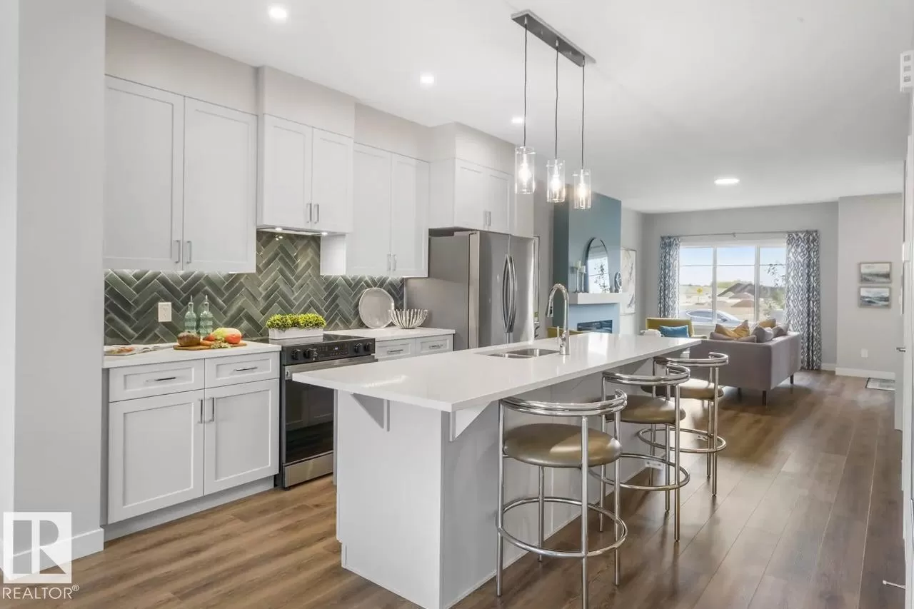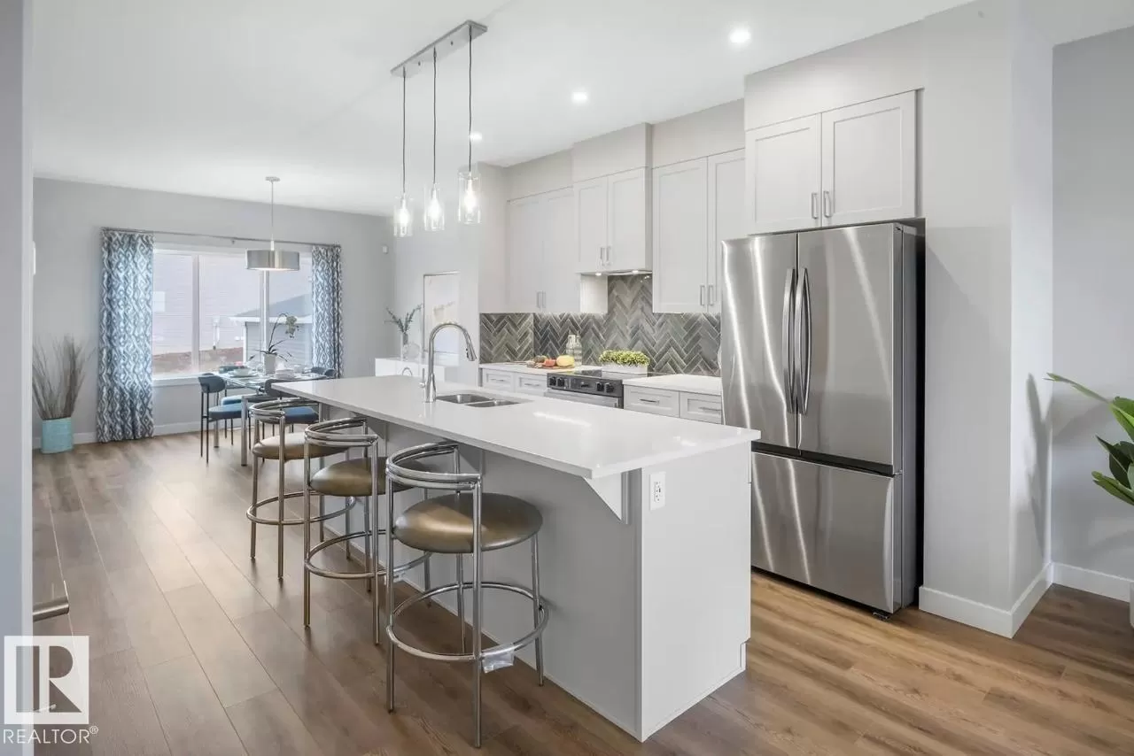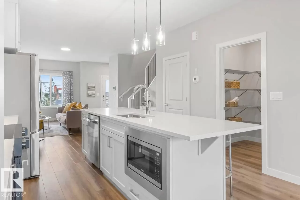 Introducing the Chase quick-possession home in Riversideâa 1,754 sqft two-storey with 3 bedrooms, 2.5 bathrooms, and a detached garage. The open-concept main floor features a modern kitchen with quartz countertops, flush eating ledge, hood fan, and walk-in pantry, flowing into the dining and living areasâperfect for entertaining. A convenient side entrance offers potential future basement development potential. Upstairs, enjoy a spacious bonus room, upstairs laundry, and a primary bedroom with walk-in closet and dual-sink ensuite, plus two additional bedrooms and a full bath. Built green, this home includes energy-efficient features, durable finishes, and full new-home warranty coverage. Located in scenic Riverside with trails, parks, and river access nearby. Photos are representative. Experience thoughtful design and modern comfort in a family-friendly community. (id:27476)