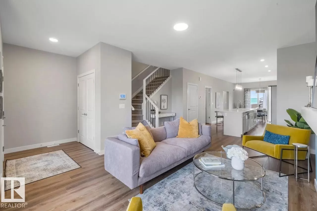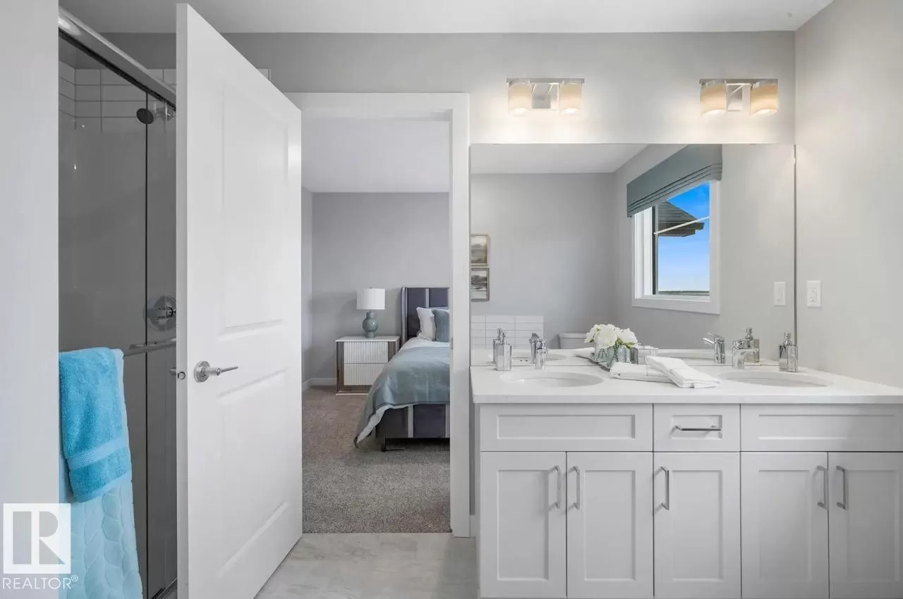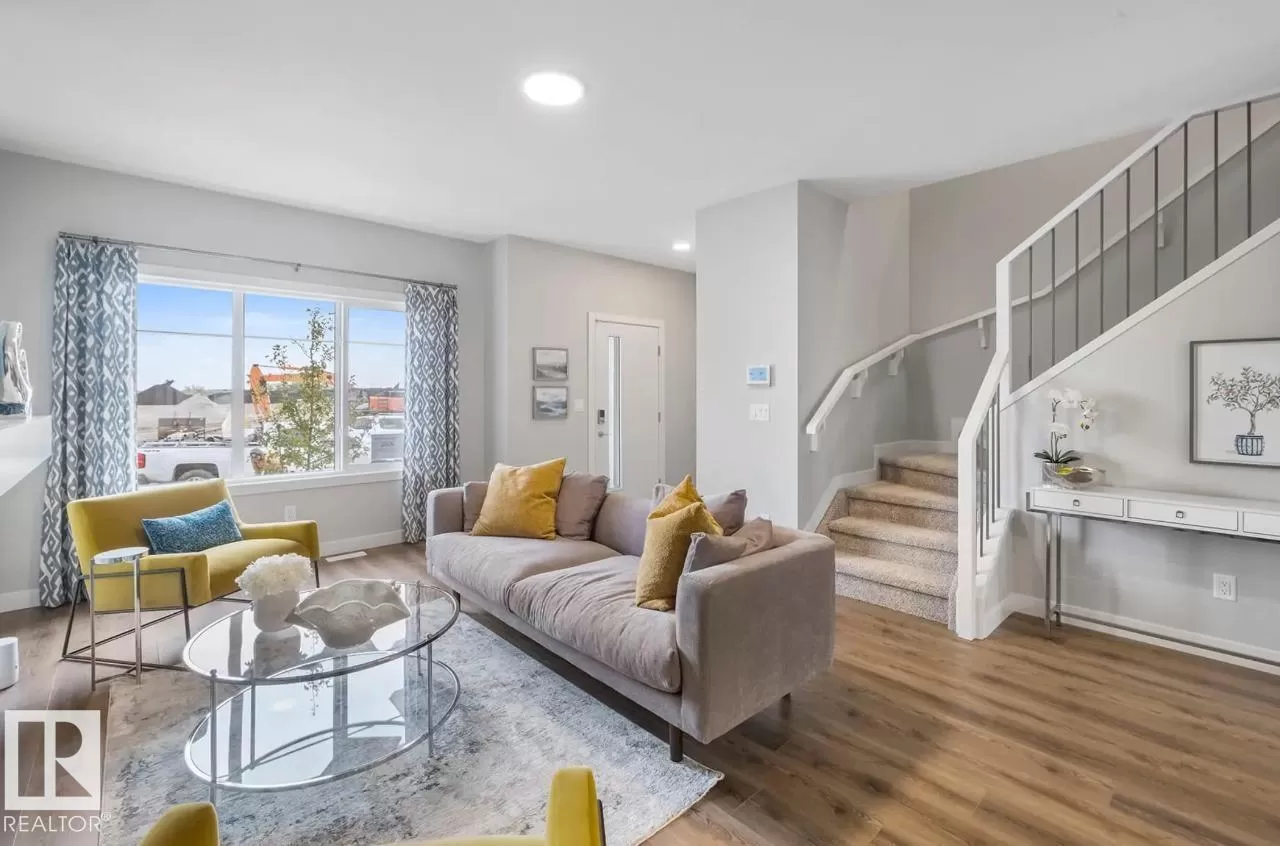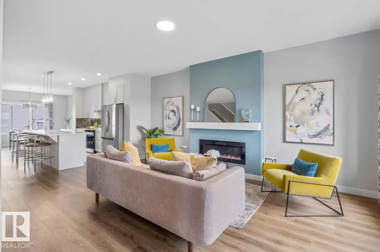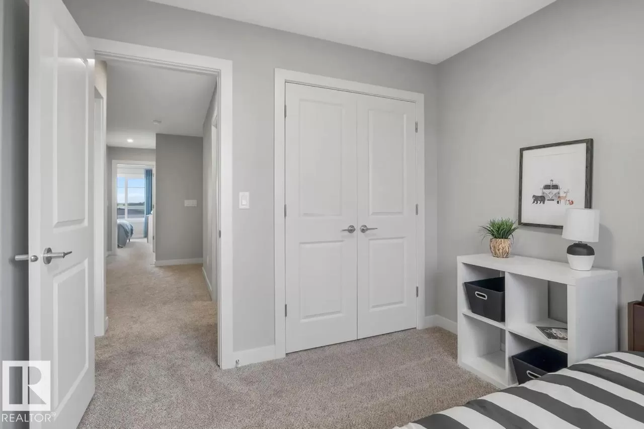 Introducing the Chase quick-possession home in Riversideâa 1,754 sqft two-storey with 3 bedrooms, 2.5 bathrooms, and a detached garage. The open-concept main floor features a modern kitchen with quartz countertops, flush eating ledge, hood fan, and walk-in pantry, flowing into the dining and living areasâperfect for entertaining. A convenient side entrance offers potential future basement development potential. Upstairs, enjoy a spacious bonus room, upstairs laundry, and a primary bedroom with walk-in closet and dual-sink ensuite, plus two additional bedrooms and a full bath. Built green, this home includes energy-efficient features, durable finishes, and full new-home warranty coverage. Located in scenic Riverside with trails, parks, and river access nearby. Photos are representative. Experience thoughtful design and modern comfort in a family-friendly community. (id:27476)