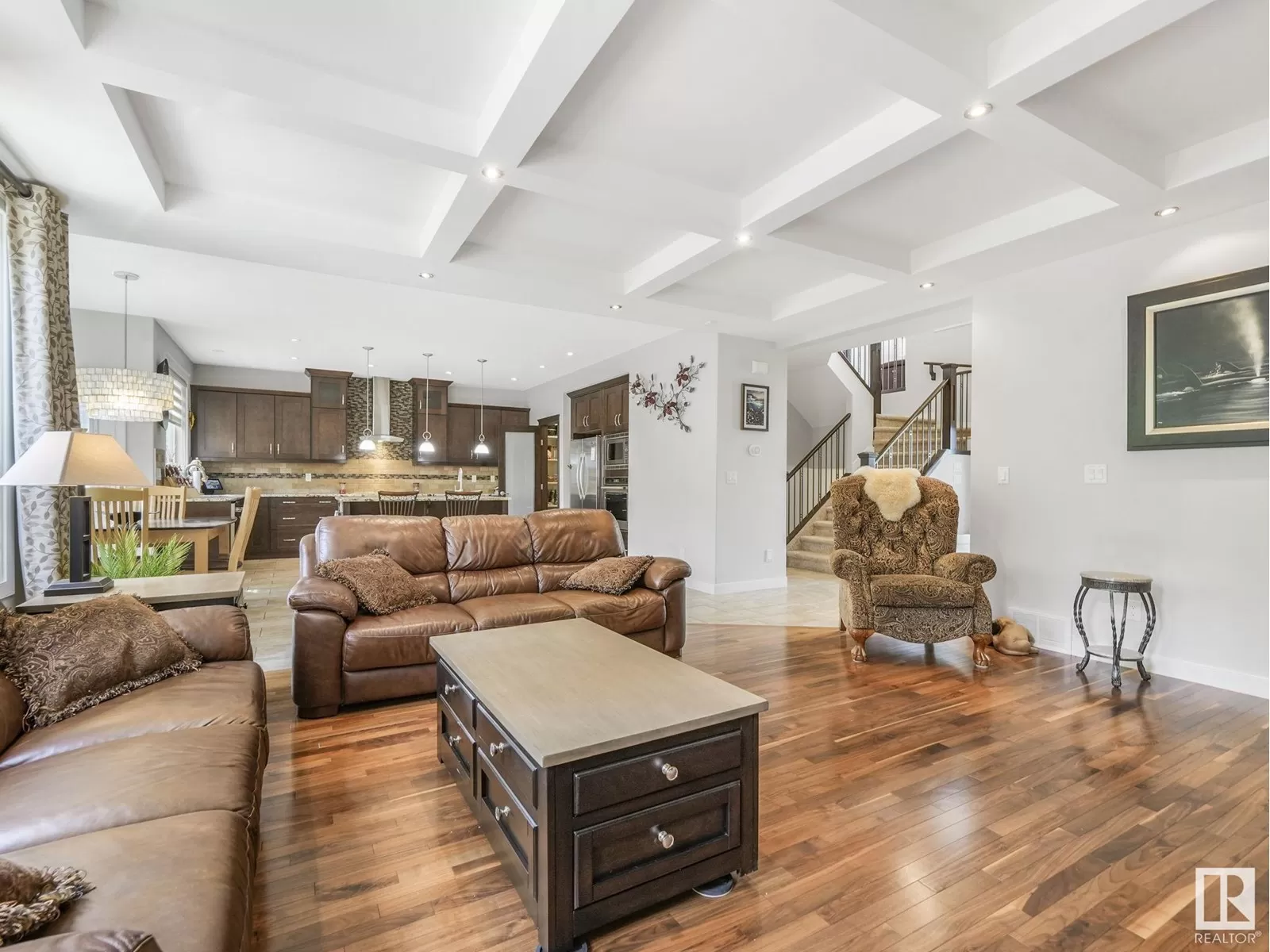Welcome to this one of a kind beautiful two-storey home that boosts over 3900 sq ft of finished living space and offers 4 Bedrooms ,bonus room, den/office/bdr along with 3.5 baths. Main floor showcases an open concept design with elegant hardwood & ceramic tile. The spacious foyer flows into the inviting family room that is equipped with gas fireplace & coffered ceilings. The chef-inspired kitchen features granit countertops, pantry, & top-of-the-line stainless steel appliances and huge Island that is perfect for hosting a family gathering.upstairs is luxurious primary suite, complete spa-like en-suite with double sinks, massive shower & jetted air tub and 2 more bdr. Fully finished basement offers a large rec room, fireplace ,mini bar, heated flooring and a bdr plus bathroom. Upgrades include a heated oversized garage, central vacuum, Gemstone Ext lighting, underground irrigation, Hot Tub 2022, AC 2023, W/D 2023, microwave 2023, Bev Cooler 2023, builtin oven 2024, all levels painted in 2023. (id:27476)