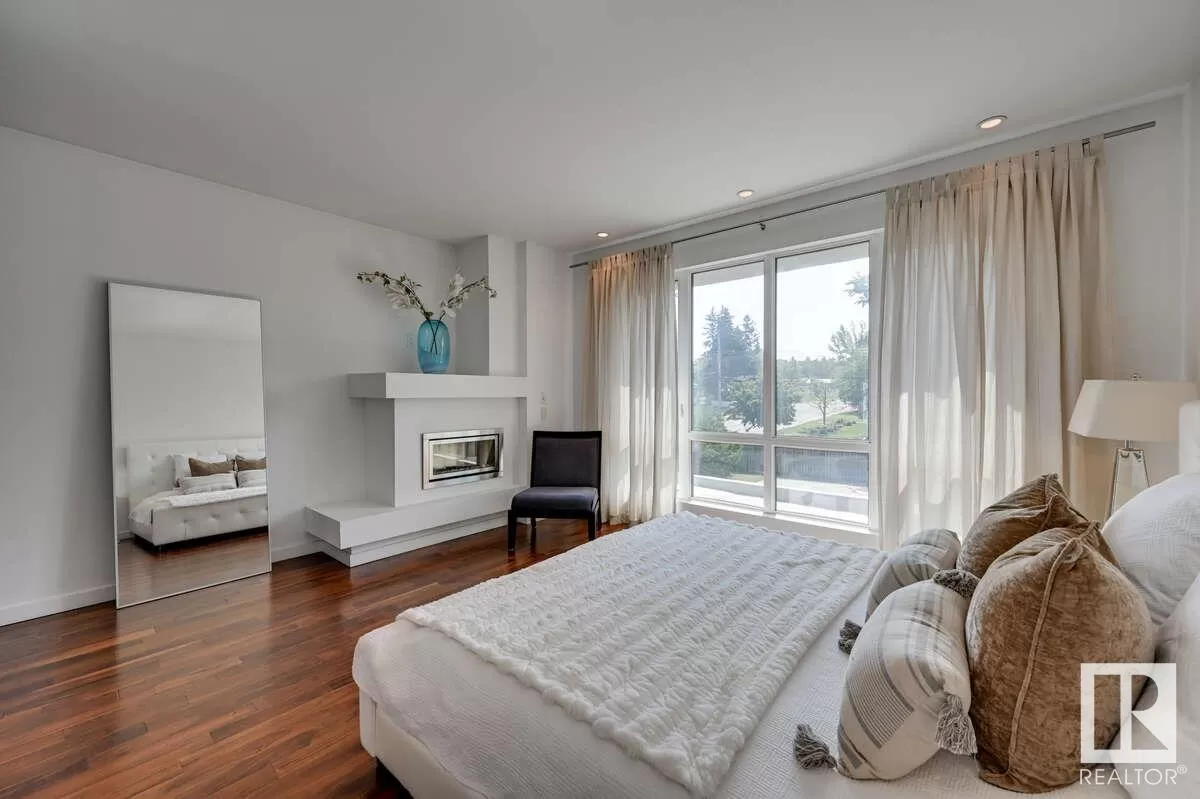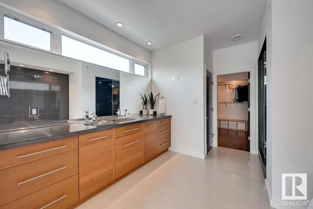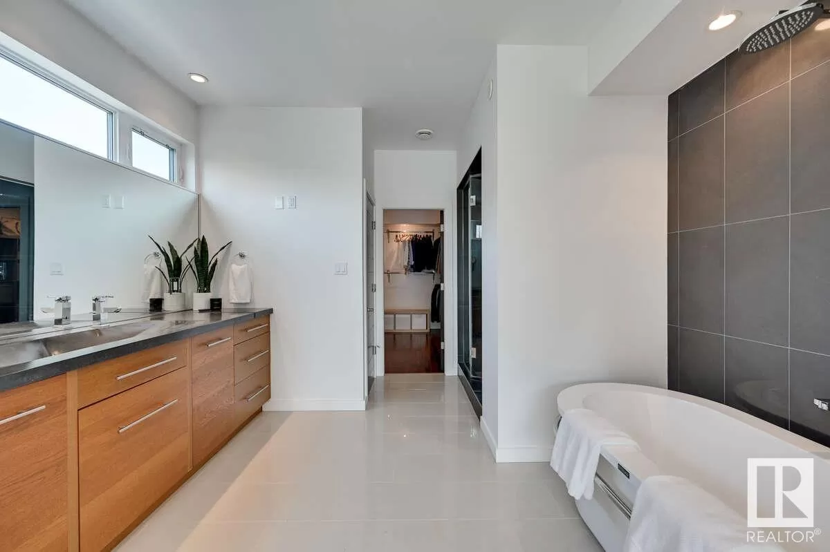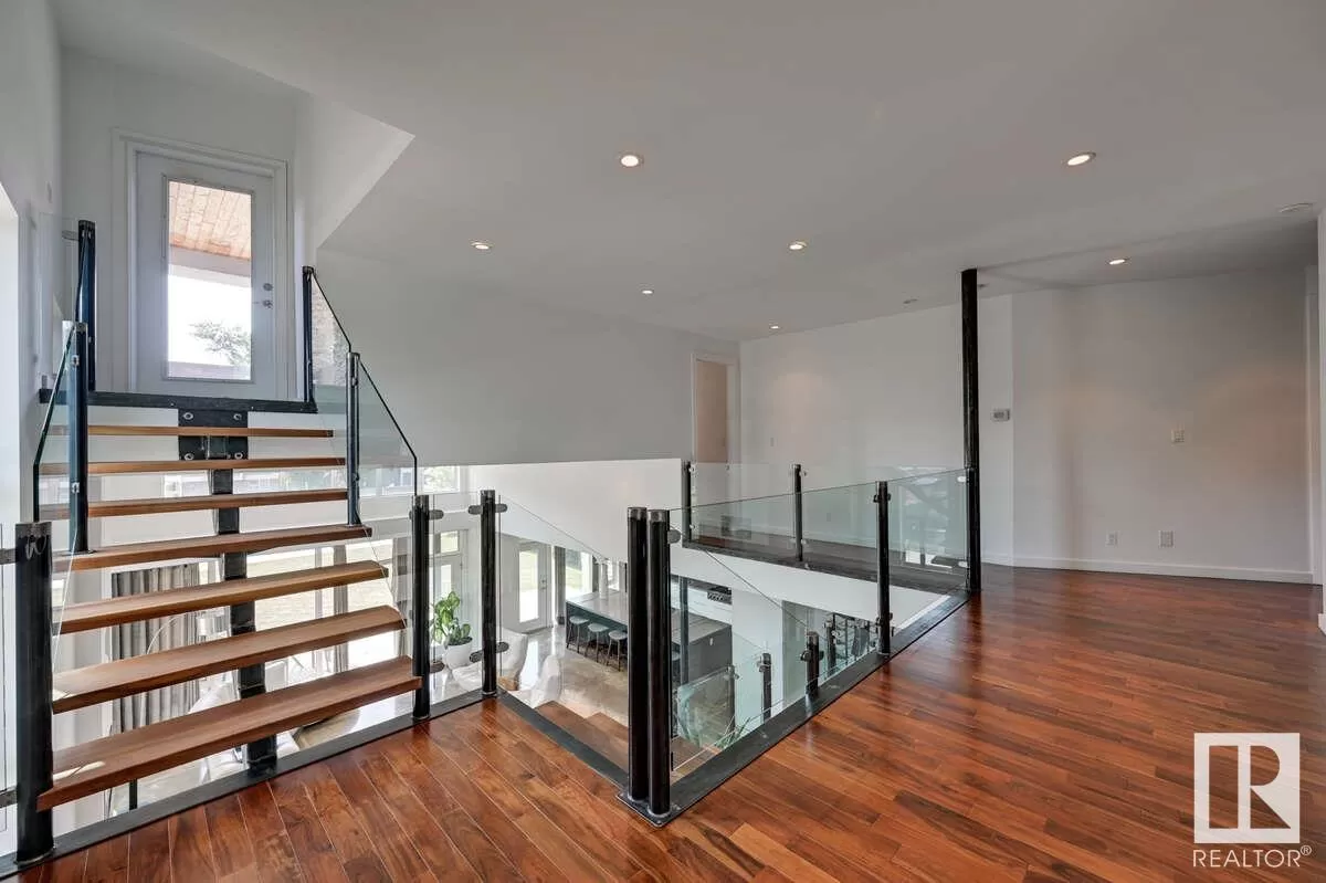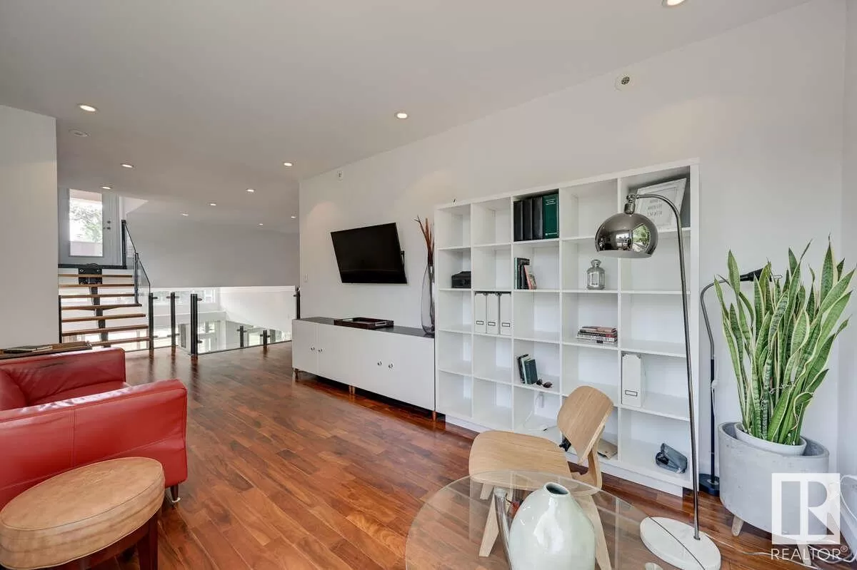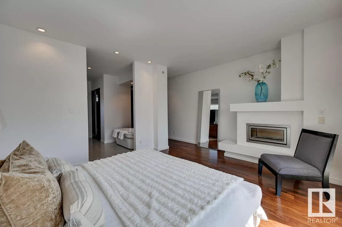 For more information, please click on View Listing on Realtor Website. An architectural retreat in Braeside, St. Albertâs most coveted neighbourhood. With over 4,700 sqft of finished space this custom home blends sculptural design with quiet luxury. Soaring ceilings, triple-pane glass, and a floating steel staircase define the main floor, anchored by polished concrete and a chefâs kitchen with SubZero and Viking appliances. Upstairs: a peaceful loft, light-filled bedrooms, and a spa-inspired primary suite. Finished basement features a wood burning fireplace, bedroom, full bath, and integrated double garage. 1,400+ sqft rooftop terrace with 400 sqft covered lounge and rough-ins for an outdoor kitchen. Radiant in-floor heating, air handling with integrated coil, and passive solar design keep the home cool without conventional A/C. Located steps from schools, trails, and the Farmers Market, this home offers modern living in St. Albertâs most walkable enclave. (id:27476)