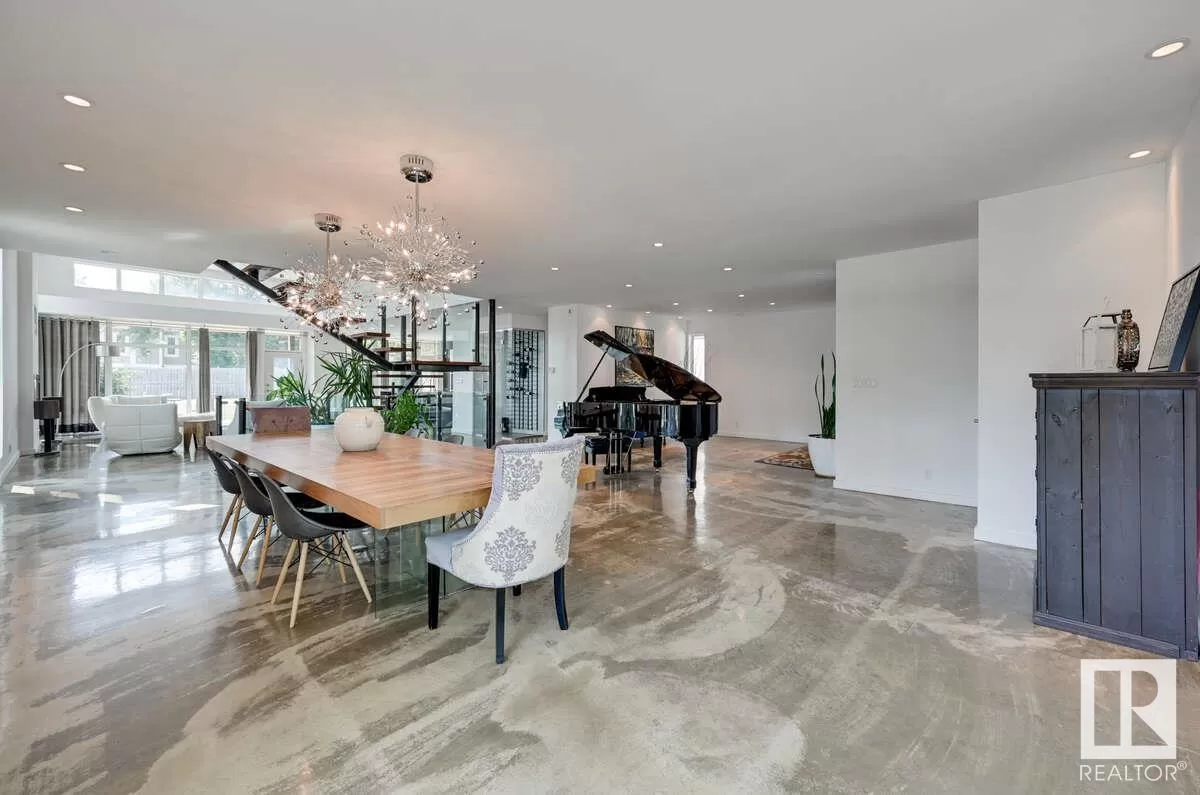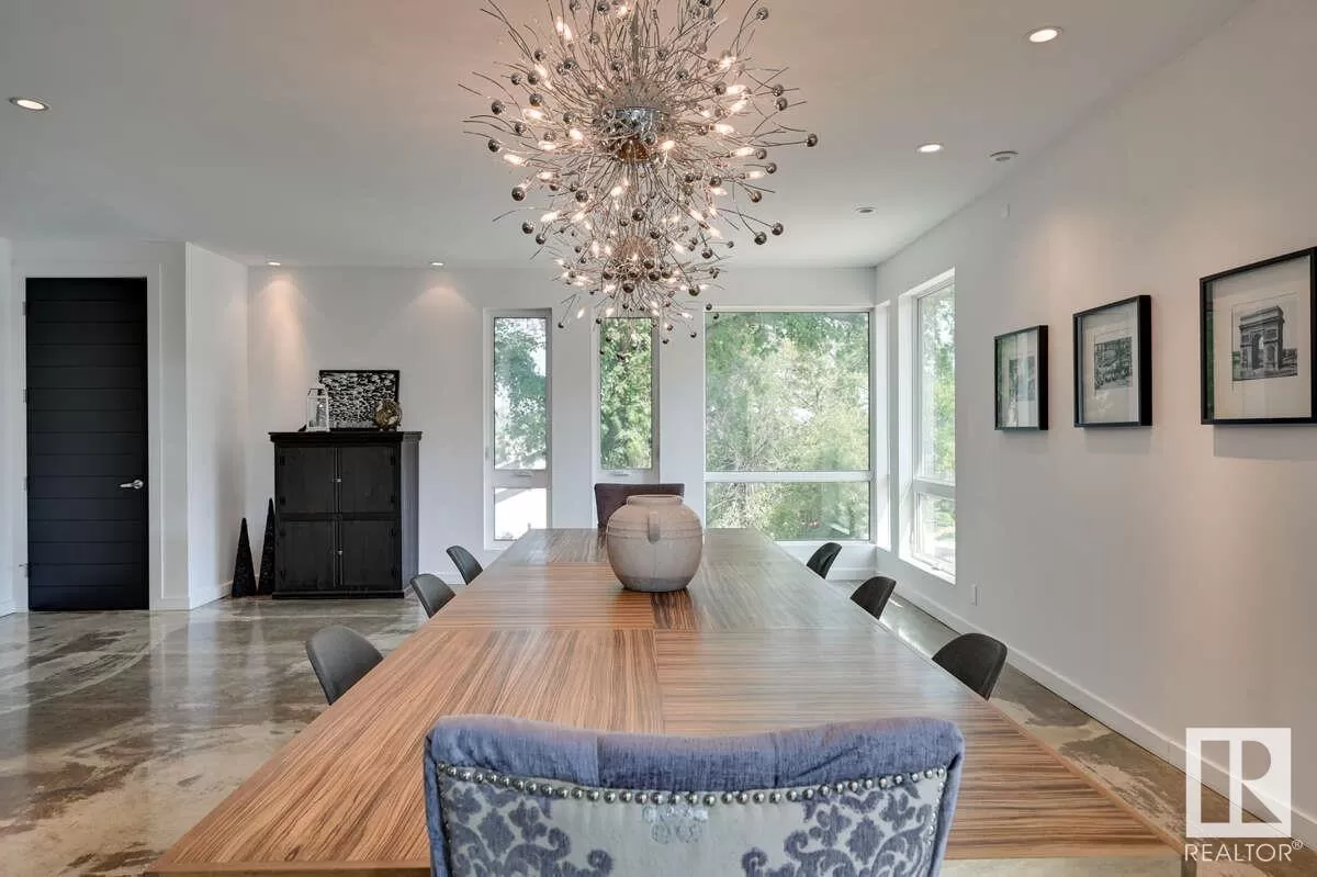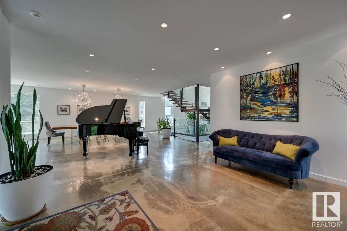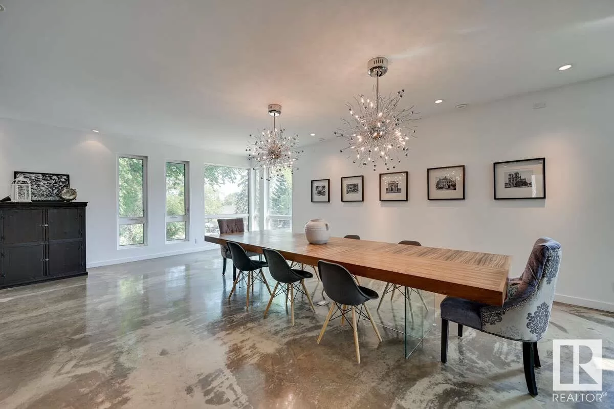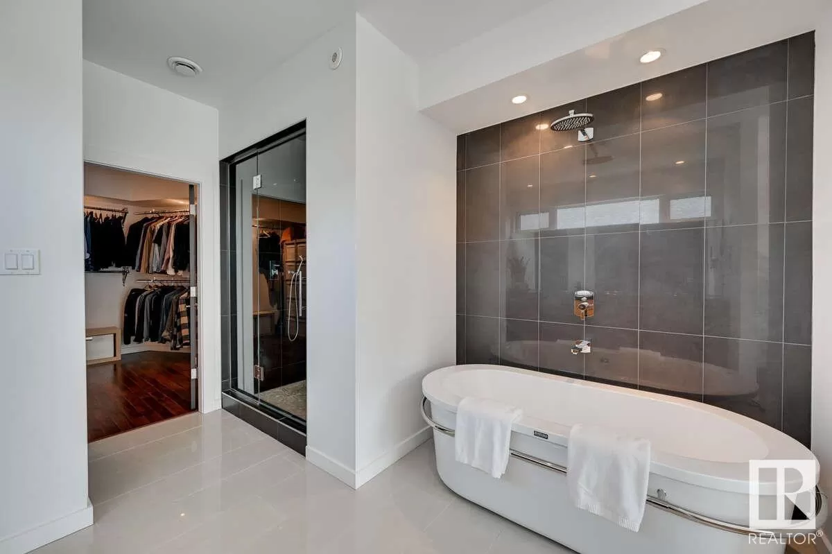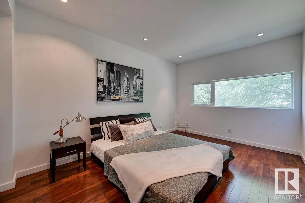 For more information, please click on View Listing on Realtor Website. An architectural retreat in Braeside, St. Albertâs most coveted neighbourhood. With over 4,700 sqft of finished space this custom home blends sculptural design with quiet luxury. Soaring ceilings, triple-pane glass, and a floating steel staircase define the main floor, anchored by polished concrete and a chefâs kitchen with SubZero and Viking appliances. Upstairs: a peaceful loft, light-filled bedrooms, and a spa-inspired primary suite. Finished basement features a wood burning fireplace, bedroom, full bath, and integrated double garage. 1,400+ sqft rooftop terrace with 400 sqft covered lounge and rough-ins for an outdoor kitchen. Radiant in-floor heating, air handling with integrated coil, and passive solar design keep the home cool without conventional A/C. Located steps from schools, trails, and the Farmers Market, this home offers modern living in St. Albertâs most walkable enclave. (id:27476)