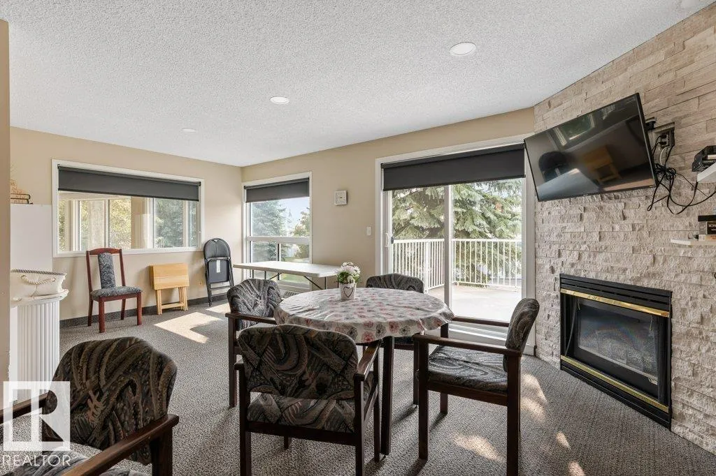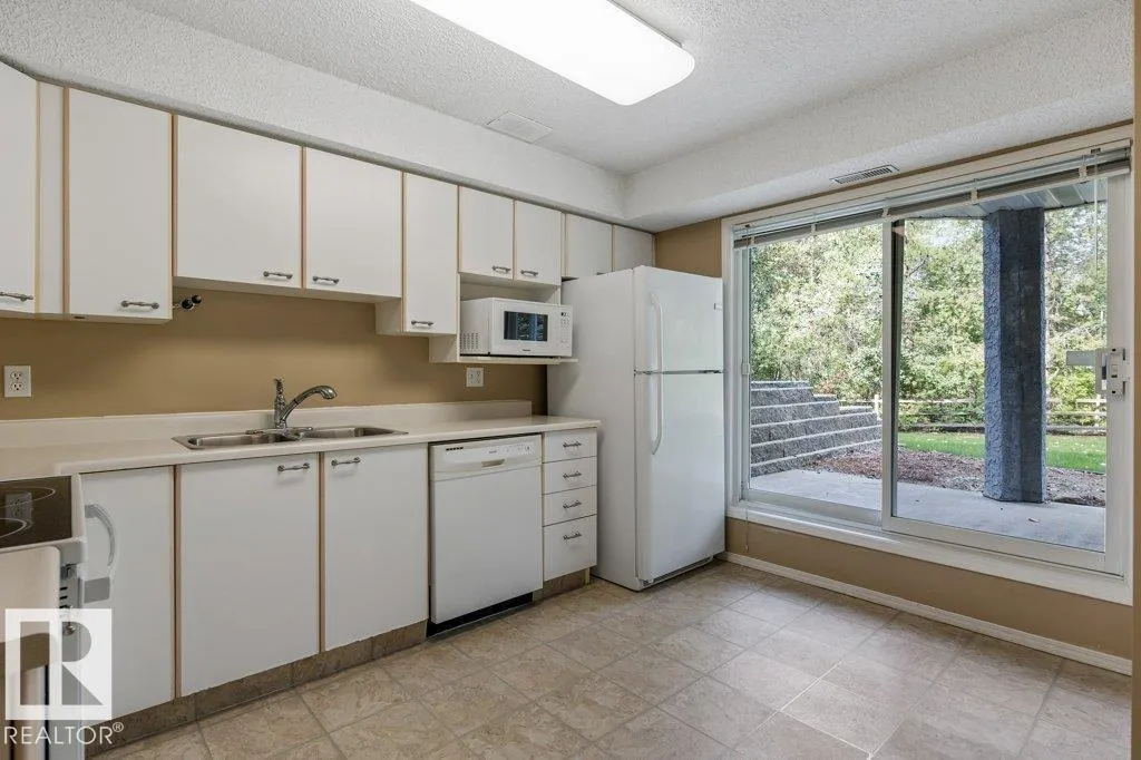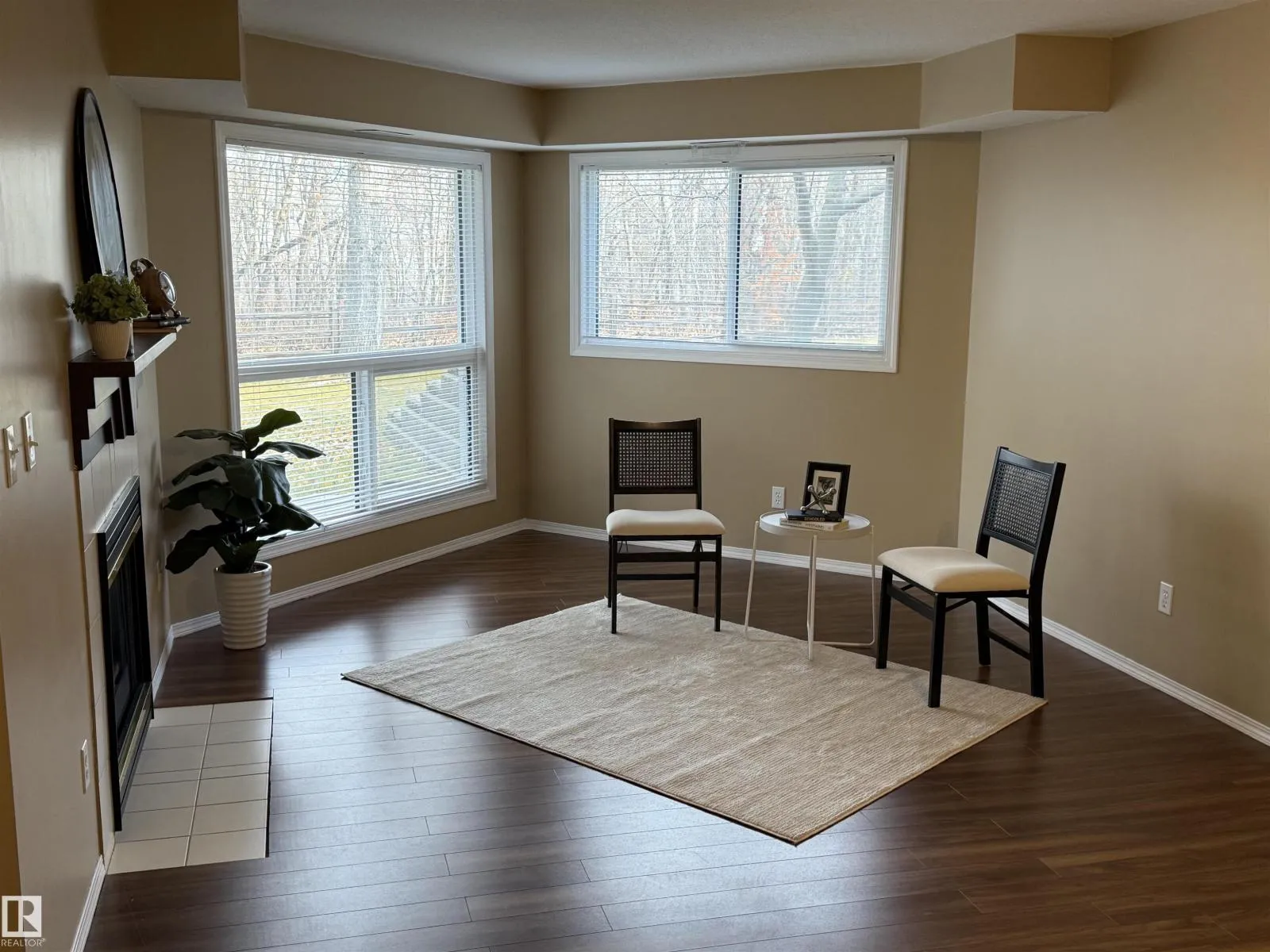 Welcome to this charming walkout unit in the friendly Governors Hill complex. Step out onto your private patio and take in the peaceful views of the trees and beautifully landscaped grounds â the perfect spot for your morning coffee or evening unwind. Inside, the open floor plan feels bright and welcoming, with a spacious living and dining area, a cozy gas fireplace, and large windows that let in tons of natural light and overlook the park. The primary bedroom has a generous walk-in closet, and the den with French doors makes a lovely home office, library, or guest space. Youâll also appreciate the extra storage room, in-suite laundry, and your own furnace and hot water heater for year-round comfort. The complex has an inviting front renovated foyer as well as a party room that can be rented. Condo fees include heat, water, and sewer, so you can enjoy a worry-free lifestyle. Plus, the walking trails of Grandin Eco Park are just steps away â perfect for a morning stroll or evening walk. (id:27476)