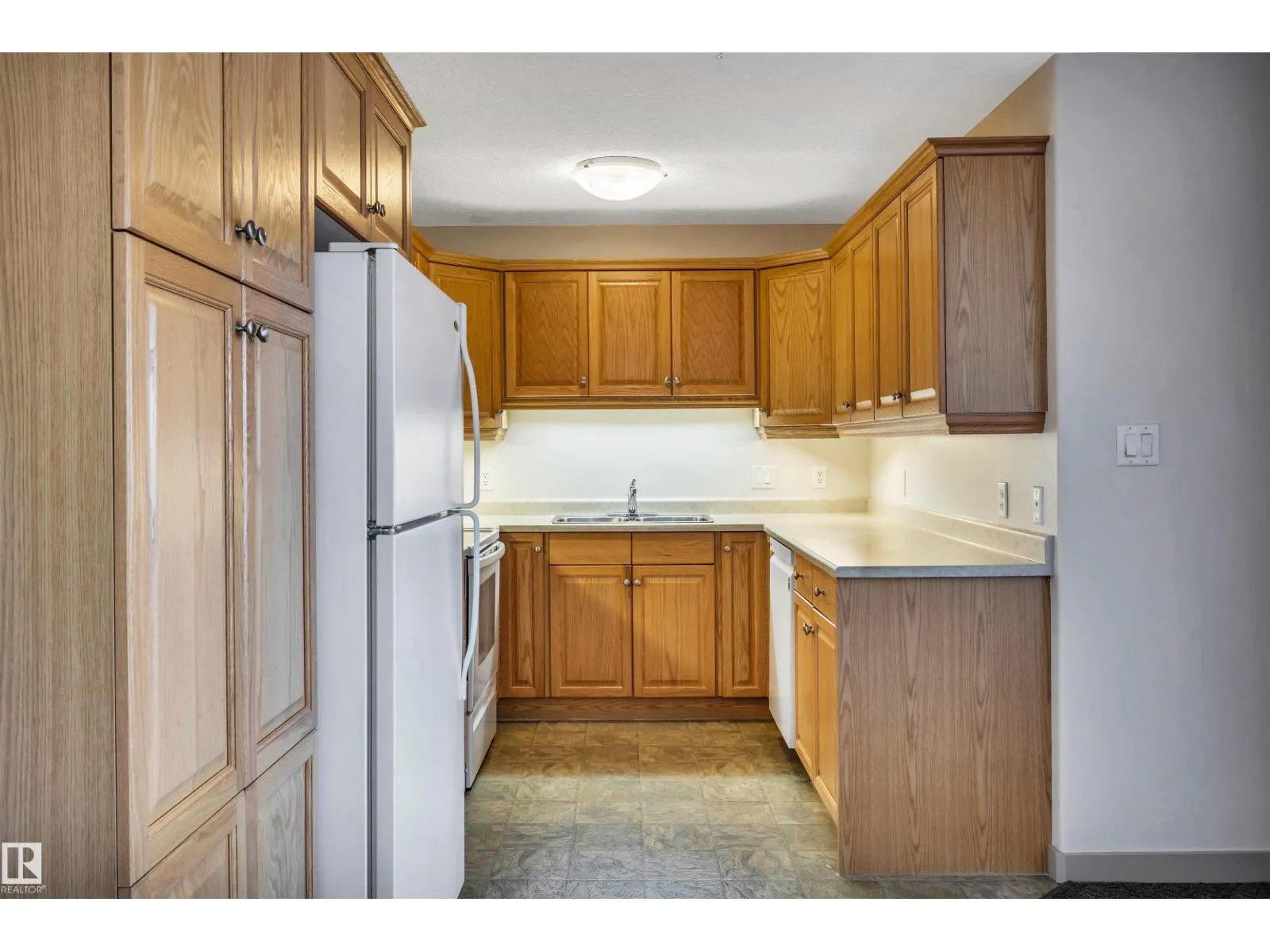 Meticulously kept 1044 sq. ft. two bedroom, two bath condo on the top floor of Mission Hill Grande! Large kitchen with ample countertops, cabinets and a pantry. It features a roomy living room with a gas fireplace and separate dining room. Newer carpet and freshly painted. Spacious primary bedroom with walk thru closets and a 3 pce ensuite. Enjoy your coffee in the AM with the east facing balcony. One underground parking stall with a storage cage. This condo has great amenities including exercise and party rooms and a fantastic location close to everything! Some photos have been virtually staged. (id:27476)