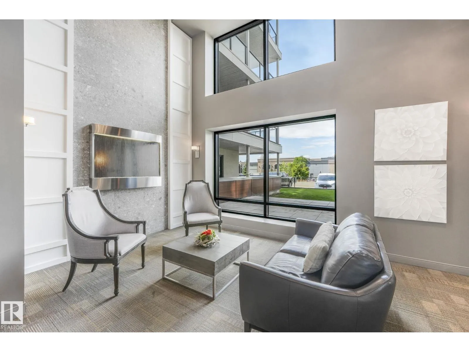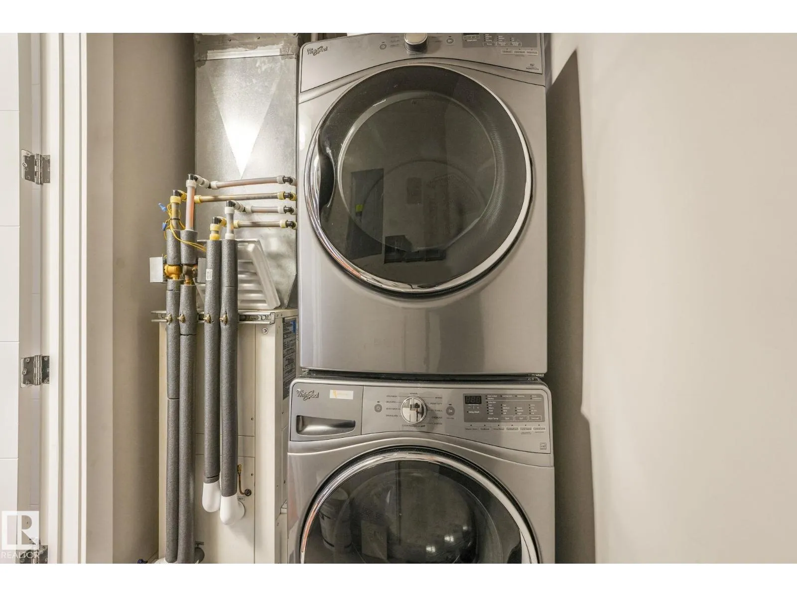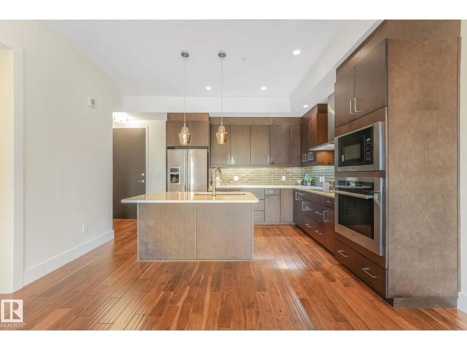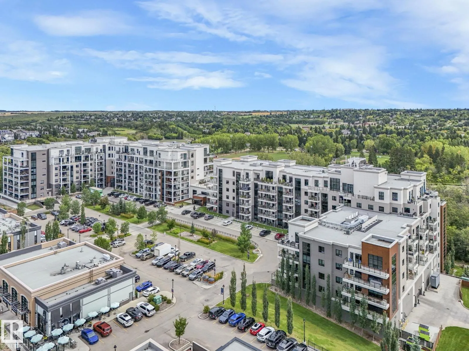 UNIQUE 8th floor unit PARAMOUNT GOLD package- 10 foot ceilings, oversized windows w/custom zebra shades, oversize interior & entry door plus upgraded finishes! Kitchen has quartz countertops, MIELE appliances, ultra quiet dishwasher, gorgeous metallic gold backsplash, touchless faucet, refrigerator has ice/water & custom pendant lighting & gorgeous dark cabinetry. Engineered hardwood flooring. Bathroom has heated tile flooring, quartz countertops. Living room w/ fireplace & floor to ceiling tile surround, 65 inch SONY TV & Sonos sound bar. Balcony has all the conveniences for condo living - gas for BBQ & water tap. Concrete/steel bldg & heated underground parking spot- storage cage included. A/C. Wellness Centre has social room, exercise room & roof top terrace!! Shop at Italian Bakeryâs Mercato or the many restaurants or enjoy a stroll in the river valley!! GORGEOUS VIEWS facing northwest for perfect sunsets & tree views! Builder suite size is 781 square feet. (id:27476)