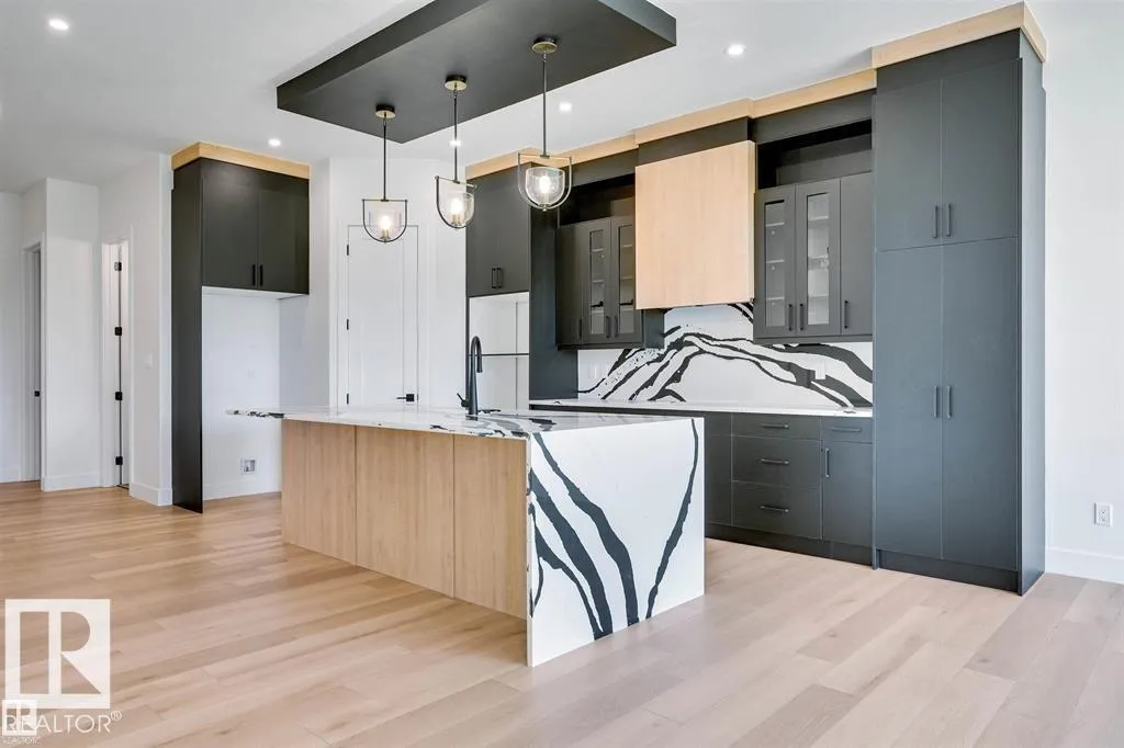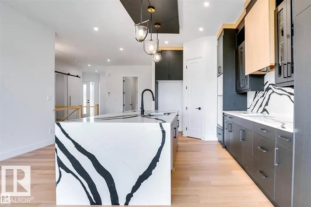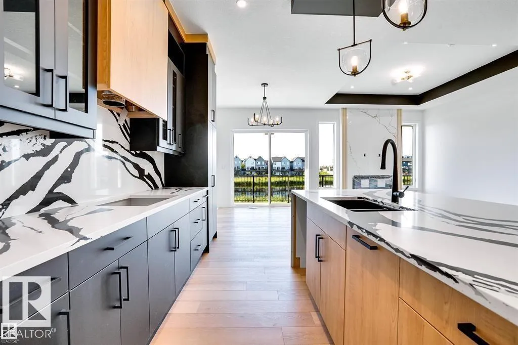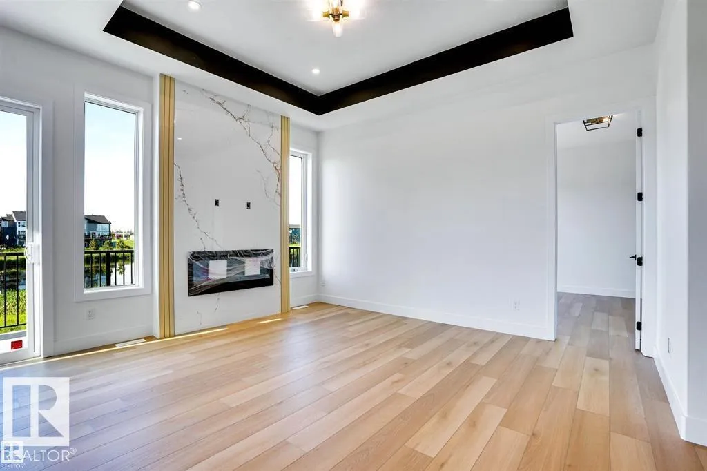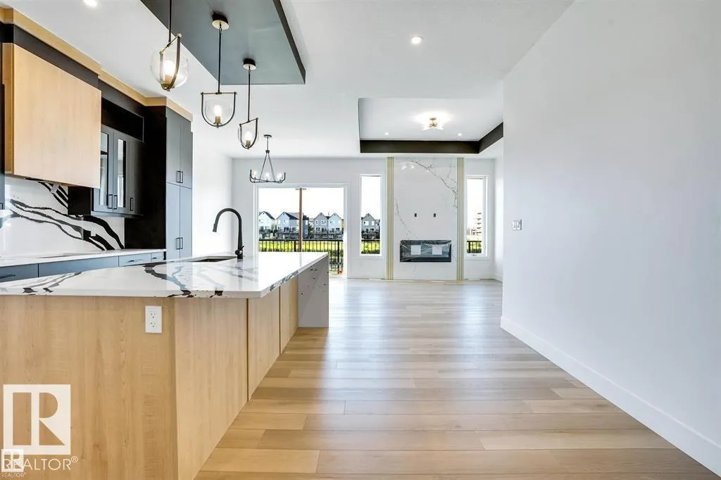 WALKOUT BUNGALOW ON POND....TRIPLE CAR GARAGE...Ready to Move. North facing Walkout Bungalow with lot of sun and privacy in the back. 46 wide lot with huge backyard. Open floor plan with 10 feet high ceiling on the main floor and 9 feet high in the basement. Custom Built with Premium Finishes and quality work. Heated Floor in Master En-suite. Master Ensuite with free standing soaker tub and custom shower. Huge Living room Fireplace with Porcelain slabs. Custom Cabinets with glass doors and pantry. Premium counter tops with waterfall and quartz backsplash. Open dining area with 8 Feet high patio door to walkout deck with pond view. 36 feet wide deck has access from dinning nook and master bedroom. Deck will be finished with vinyl floor and metal railings. Custom cabinets in walk in closets. Rooms are beautifully finished with Feature walls and wall panels. Main floor laundry. Additional bedroom with closet. Front facing den with wainscotting. Unfinished walkout basement for future development. DON'T MISS. (id:27476)