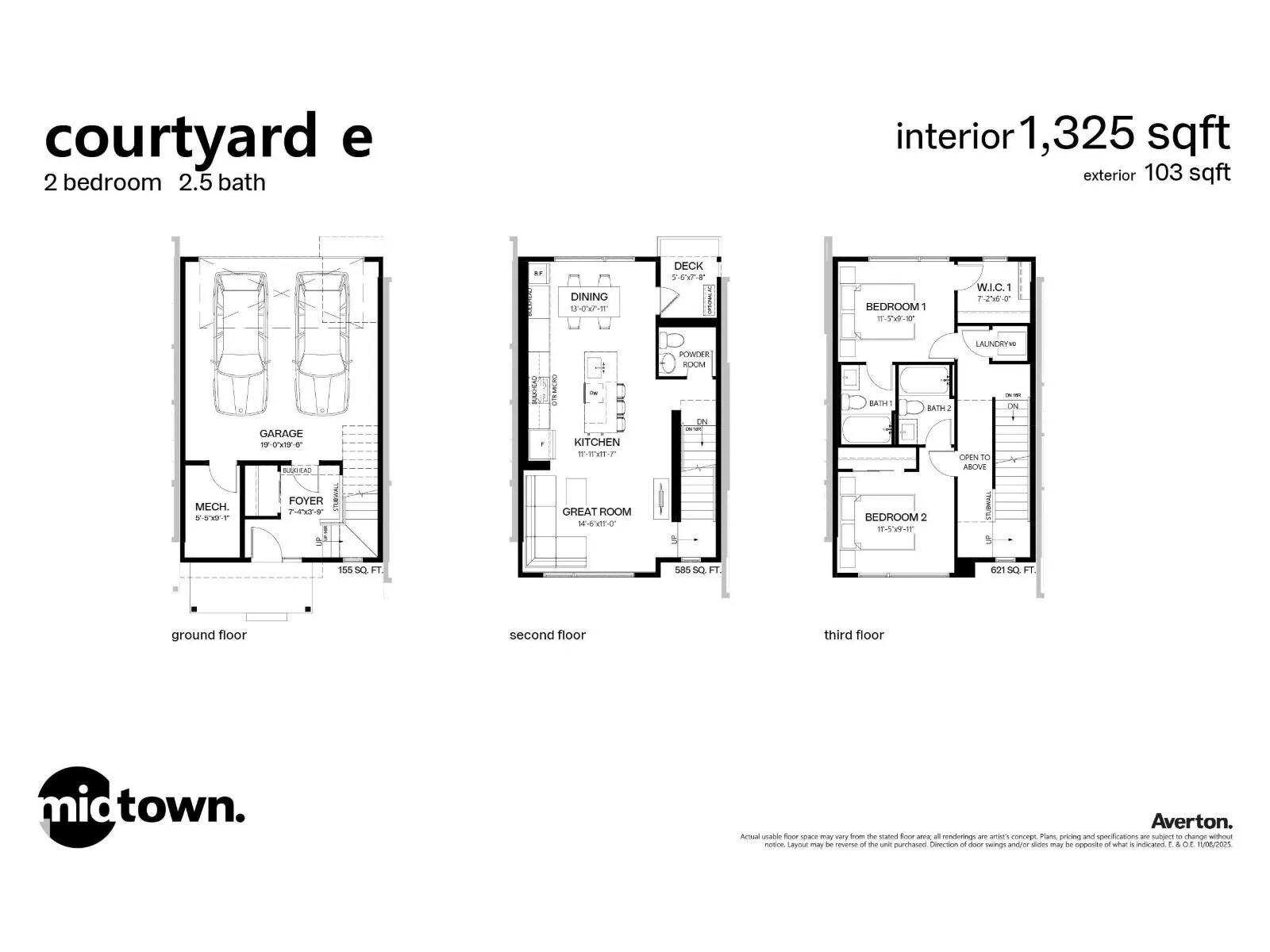 BRAND NEW! Step inside a townhome designed for comfort and ease, where 2 bedrooms, 2.5 baths, and thoughtful upgrades create a welcoming space. The main floor boasts oversized windows, a dining area opening to a deck, and an upgraded kitchen with white cabinetry, built-in pantry, backsplash, and cool wood grain finishes for a bright, inviting atmosphere. Upstairs, both bedrooms include their own private ensuite bathrooms, with a convenient third-floor laundry room just steps away. A spacious double-car garage with extra driveway parking provides convenience, and with amenities, parks, and green spaces just steps away, everything you need is close to home. Images and renderings are representative of the homeâs layout and/or design only and may include virtual staging. Exact finishes may differ. Currently under Construction, with possession ready for January 2026. Sale price is inclusive of GST. Averton promotional pricing of $15,000 off this move in ready home until Nov 30. (id:27476)