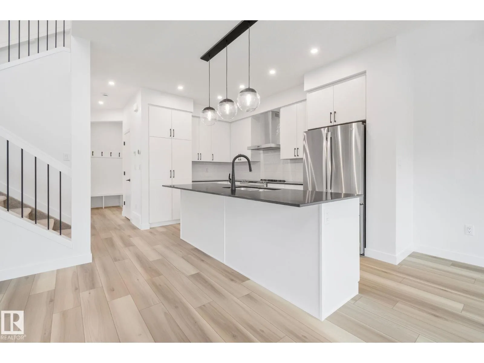 The Baci model welcomes you with a spacious foyer and mudroom, leading into an open-concept kitchen, nook, and living room with soaring ceilings and a striking open-to-above design. A built-in pantry and central island enhance the kitchen's functionality, perfect for everyday living and entertaining. Upstairs features two secondary bedrooms, a laundry closet with sink, and a serene primary suite with double sinks, tiled shower, and a walk-in closet. Backing onto Morgan Park, this home offers privacy and scenic views of the historic grain elevators. The home includes the following features: appliances, black finishing package, front and rear landscaping, fencing, and screw piles for future deck (id:27476)
