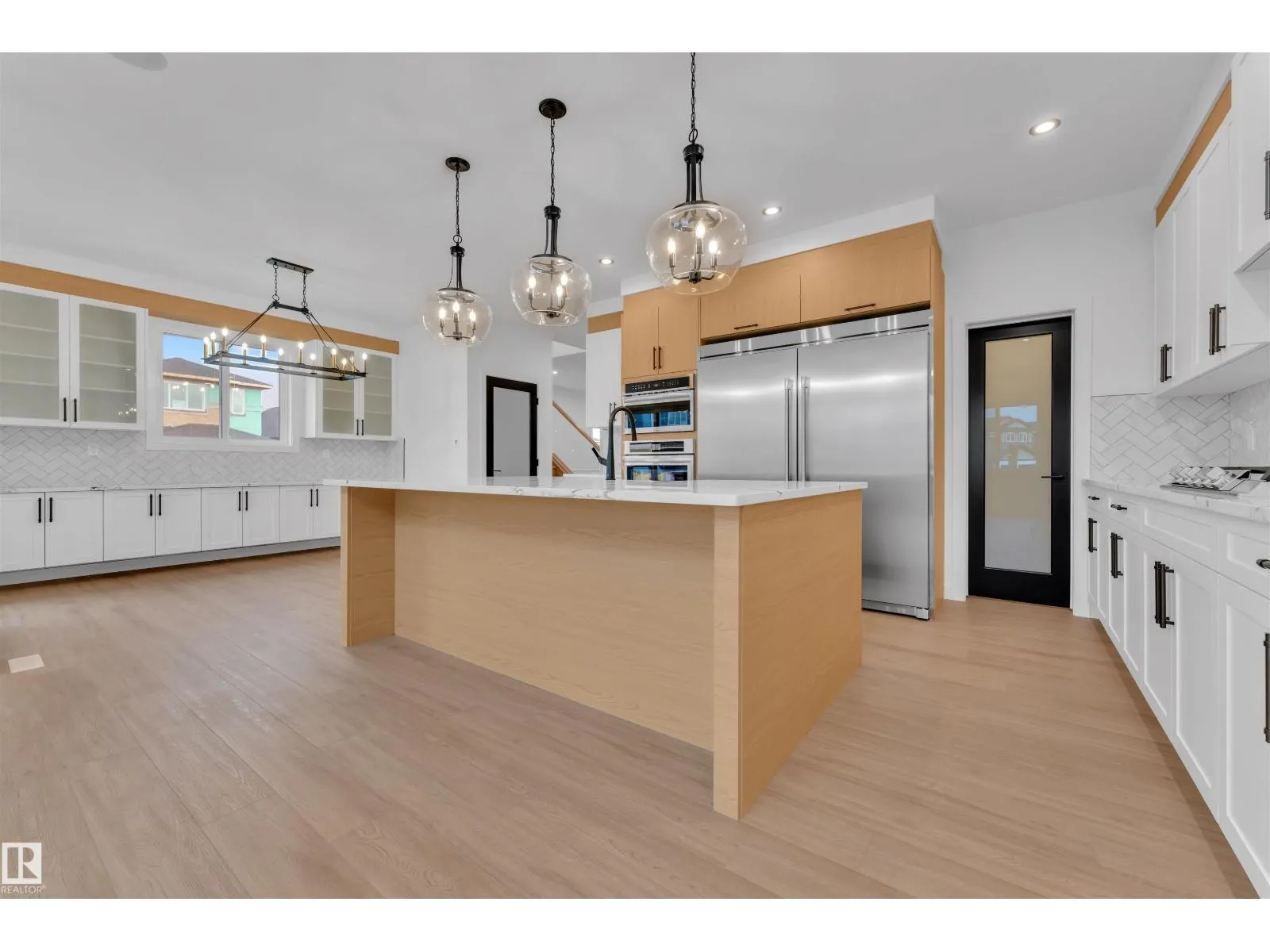 Triple Car Garage || Stunning home with luxury and functionality for modern family living. Open-to-above living room with lot of windows, fireplace & beautiful feature wall. A convenient main-floor bedroom with a full bathroom is perfect for guests or extended family. The heart of the home is its modern kitchen, flowing into a dining area and expansive deck, ideal for summer gatherings. Upstairs beautiful bonus room with fireplace & feature wall, perfect for family entertainment, along with a private office/gym. The spacious primary suite with stunning ceiling & wall design offers a custom ensuite with a soaking tub, dual vanities, and a walk-in closet. Two additional bedrooms share a full bath. An upper balcony adds a peaceful retreat for morning coffee or evening relaxation. Every corner of this home has been thoughtfully designed, checking all the boxes for style, comfort, luxury and convenience. (id:27476)