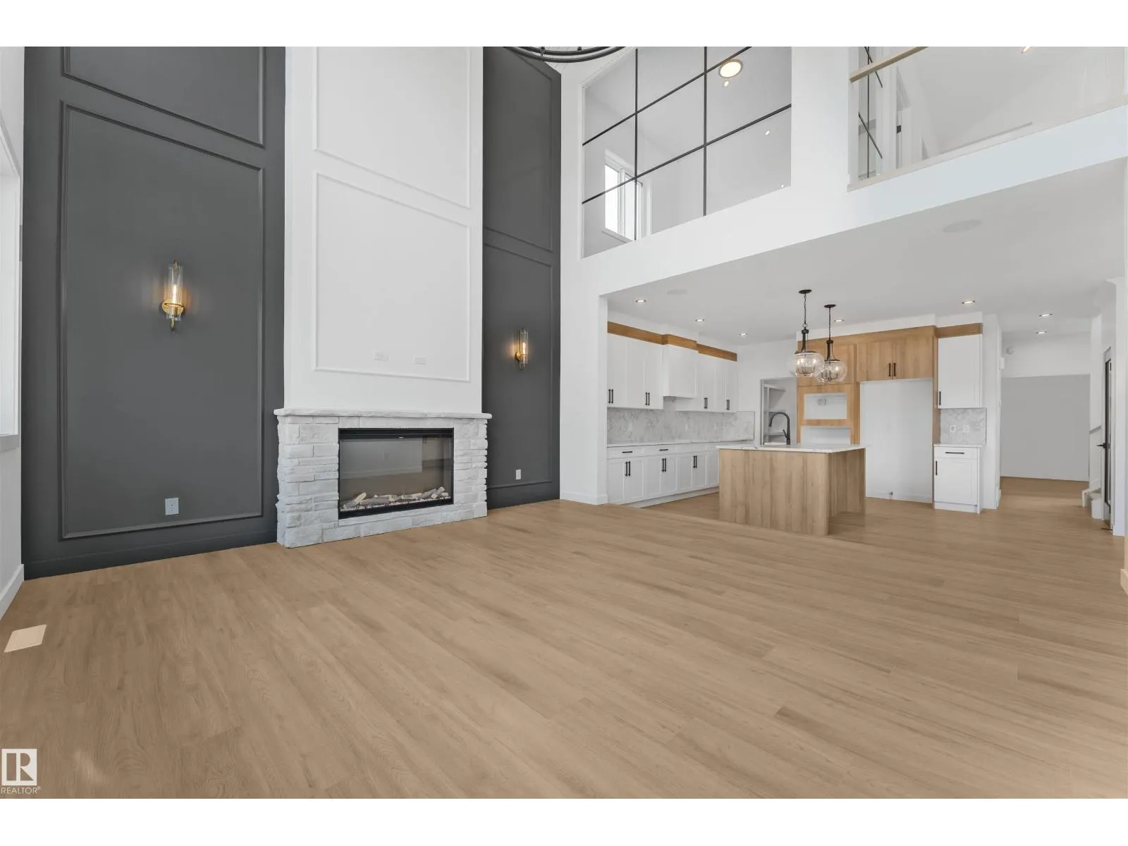 Stunning home with luxury Upgrades. Open-to-above living room with lot of windows, fireplace & beautiful feature wall. A convenient main-floor bedroom with a full bathroom is perfect for guests or extended family. The heart of the home is its modern kitchen, flowing into a dining area and expansive deck, ideal for summer gatherings. Upstairs beautiful bonus room with fireplace & feature wall, perfect for family entertainment, along with a private office/gym. The spacious primary suite with stunning ceiling & wall design offers a custom ensuite with a soaking tub, dual vanities, and a walk-in closet. Two additional bedrooms share a full bath. An upper balcony adds a peaceful retreat for morning coffee or evening relaxation. Every corner of this home has been thoughtfully designed, checking all the boxes for style, comfort, luxury and convenience. (id:27476)