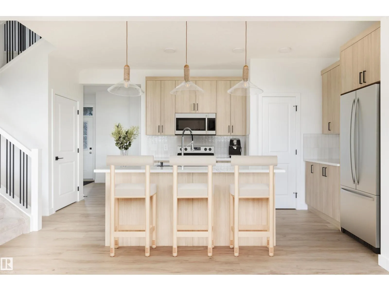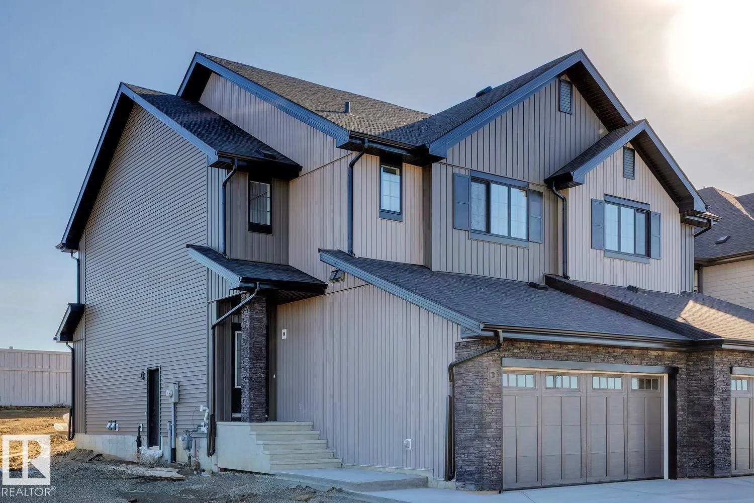 FULL LANDSCAPING & BACKING A GREEN SPACE! Welcome home to the âDallasâ in Cherot by multi-award-winning builder, Rohit! This stunning 2-storey duplex offers thoughtfully designed living space with the bold âHaute Contemporaryâ interior palette and a landscaped backyard. The main floor offers a wide-open layout where the kitchen, dining, and living areas flow seamlessly togetherâideal for entertaining or cozy nights in. A massive quartz island, ample cabinetry, and a spacious pantry add both style and function, while a half bath and attached double front garage complete the floor. Upstairs, retreat to the large primary bedroom with full ensuite and walk-in closet, accompanied by two additional bedrooms, a full bath, convenient upper-floor laundry, and a versatile flex room. Ideally located in Cherot with access to parks, playground, a future school, shopping, and major routes. Property is under constructionâphotos are of a show home with the same layout and a different interior, some are virtually staged. (id:27476)