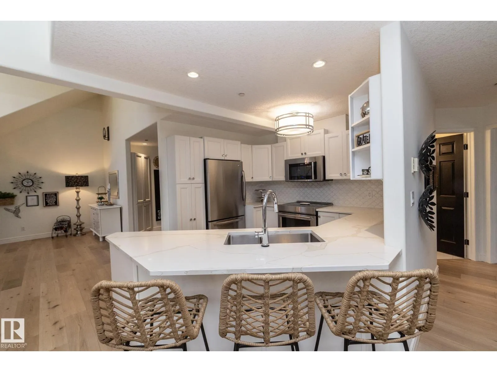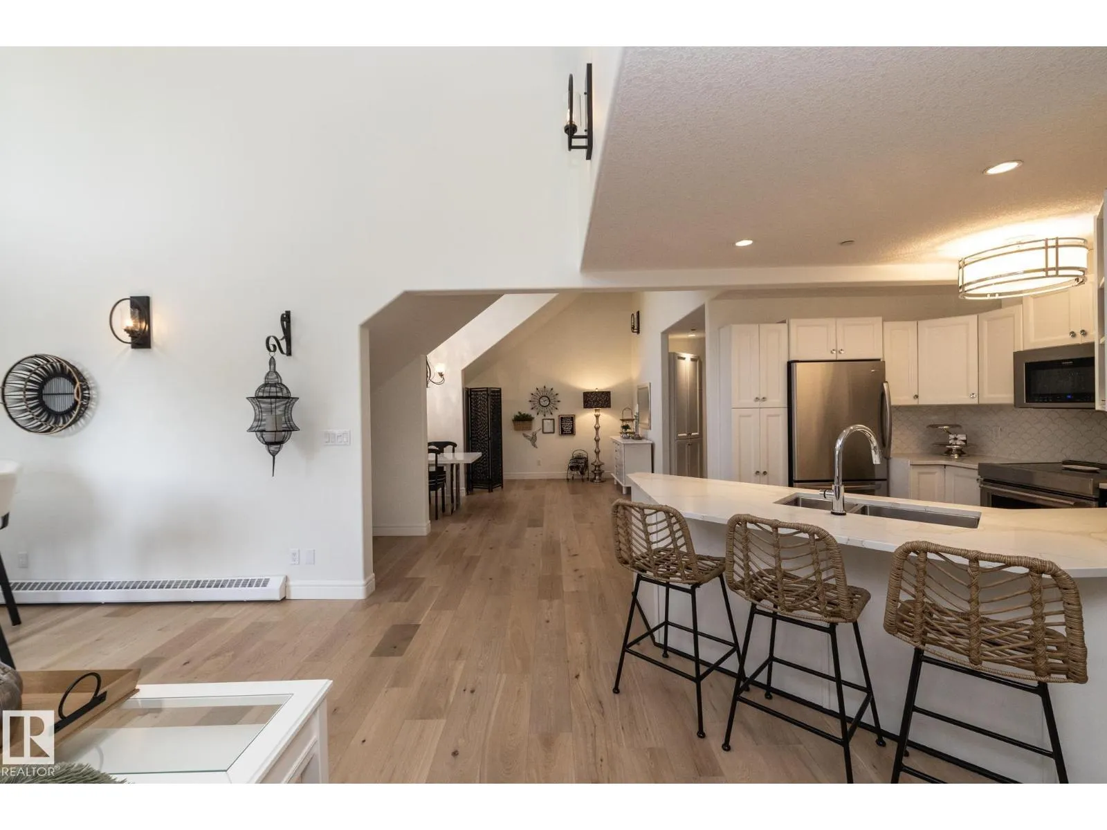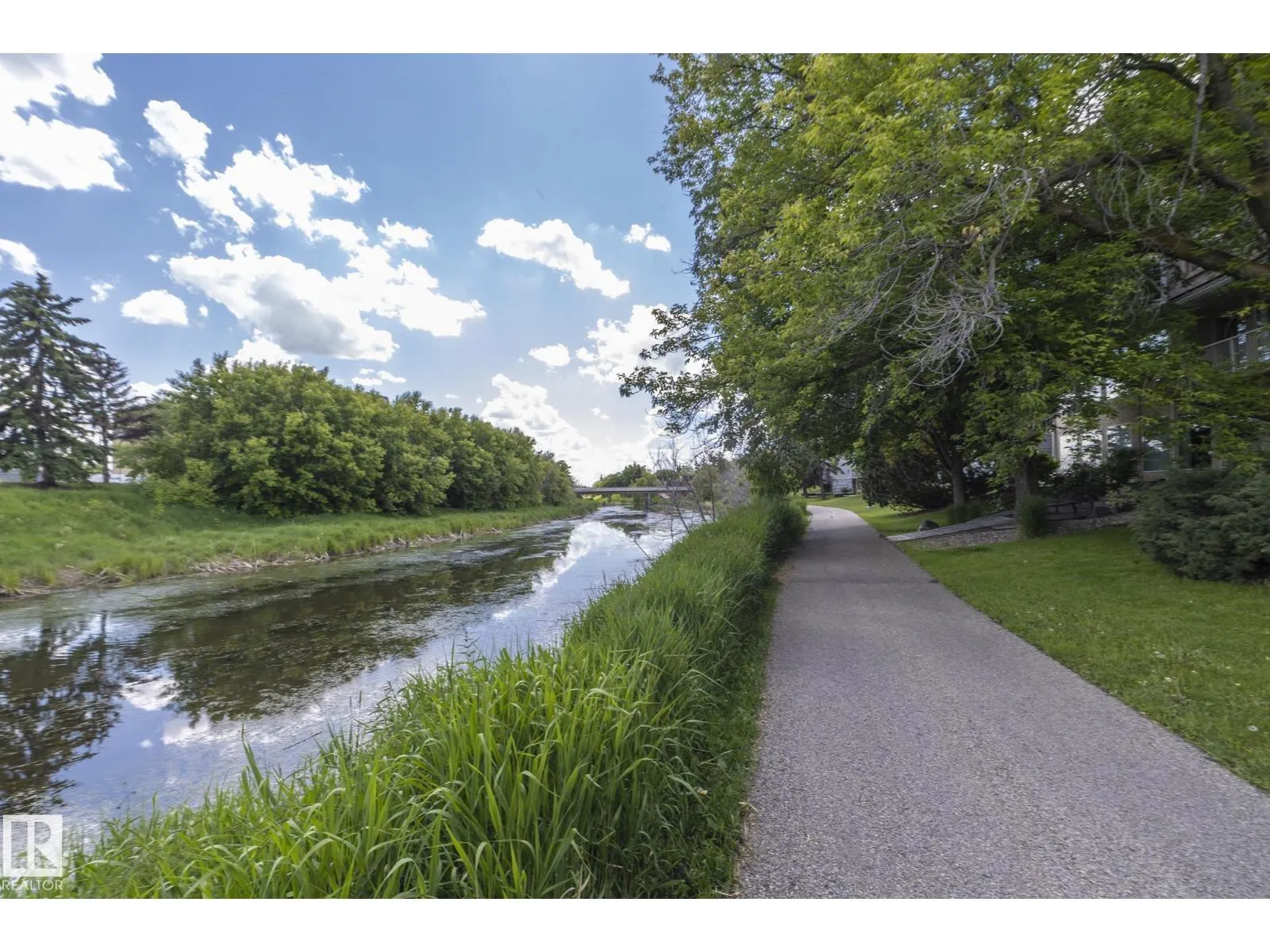 Great Value, Low Condo Fees & Prime Location ! Backs onto river valley trail system and just a short walk to farmers market & numerous amenities. Stunning, Unique & Immaculate! This 1,907sqft loft style condo is magazine ready. The unit has gone through a major renovation using tasteful, timeless and quality materials. The floor plan on each level was brilliantly planned leaving no wasted space. Upper level has been designated to the primary bedroom and Ensuite making up 771sqft. The fixtures are eye-catching and the high-end steam shower takes the space to another level. These two combined spaces will rival that of many homes far in excess of this price point. The 2nd bedroom is on the main with adjacent 4 piece bath. Balance of main level is open concept and lends well to accommodating large gatherings. Other features include 2 parking stalls, vaulted ceilings, large banks of windows, hardwood floors, gas fireplace & stainless appliances with induction stove. GREAT PUBLIC TRANSIT SERVICE TO EDMONTON! (id:27476)