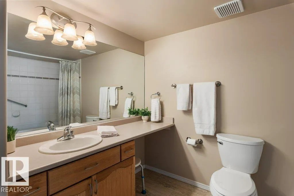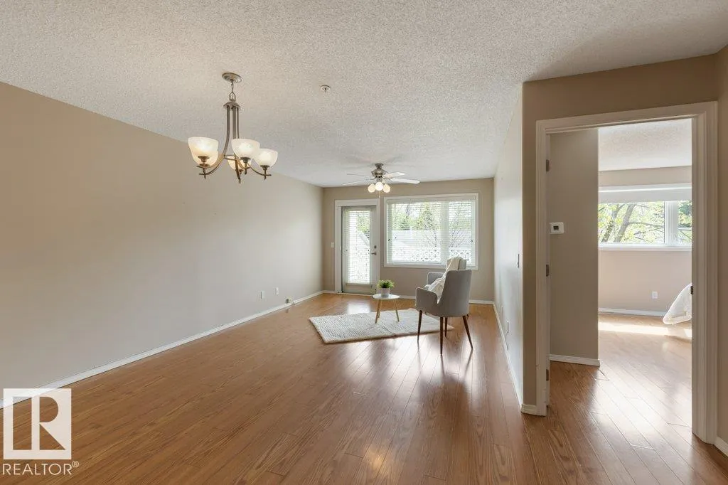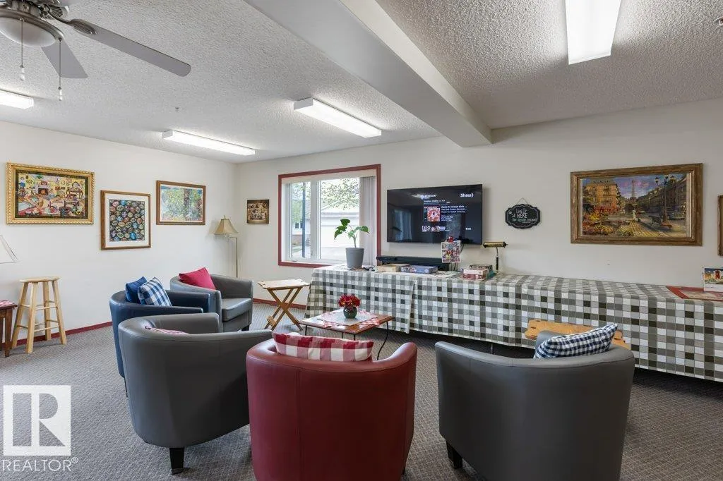 Welcome to this bright and spacious 55+ apartment condo in the desirable community of Kingswood, St. Albert! This well-maintained 830 sq ft unit features an inviting open layout with open kitchen that flows seamlessly into the dining area. Enjoy rich cabinetry, ample cupboard space & some newer SS appliancesâperfect for preparing meals & entertaining with ease. The home includes one large bedroom, a full 4-piece bathroom (with access from primary) a versatile den for office/hobby use & convenient in-suite stacked laundry.The sunny south-facing balcony fills the space with natural light & offers a peaceful place to relax. The well-managed building boasts a wide range of amenities including a guest suite, social room, craft room, book nook, & more. It also features underground parking & is fully wheelchair accessible. Located close to public transportation, Servus Place, walking trails, this condo offers comfort, community & convenience in a fantastic location. A perfect place to call home! (id:27476)