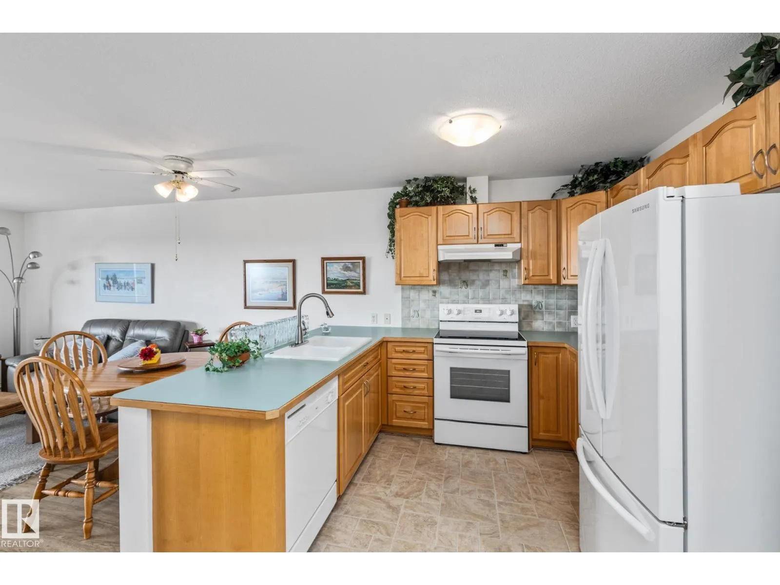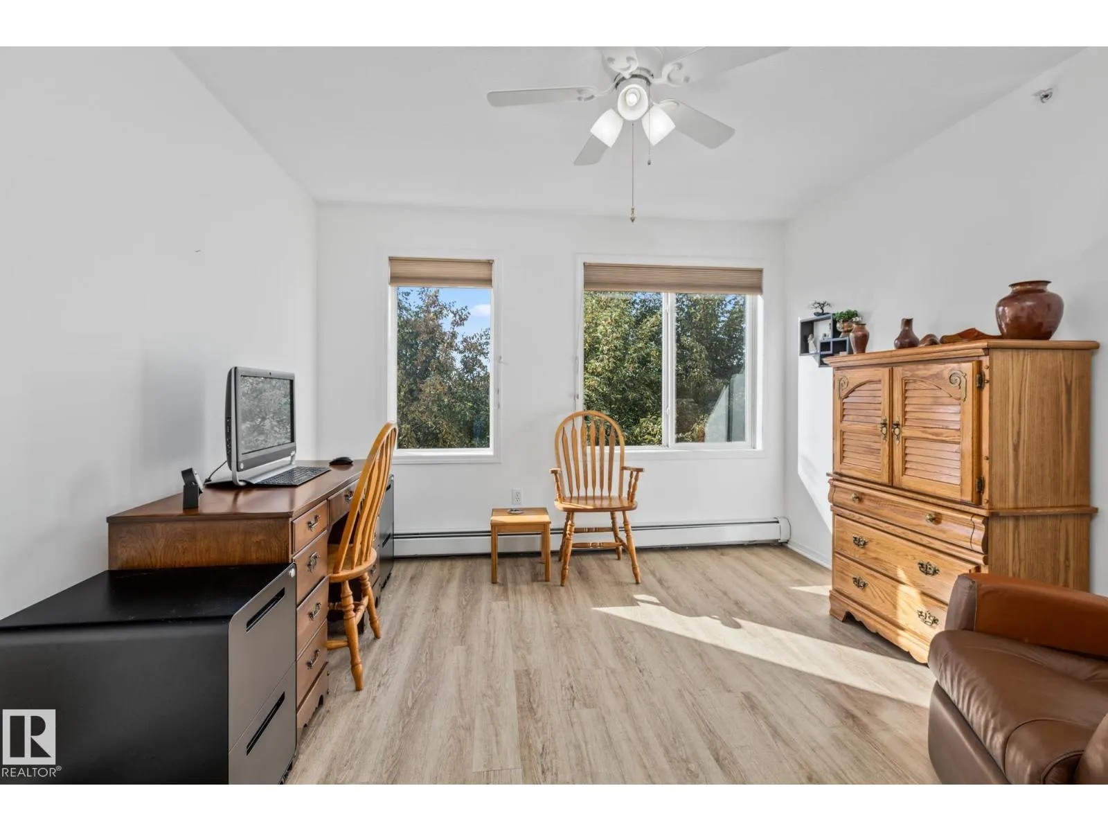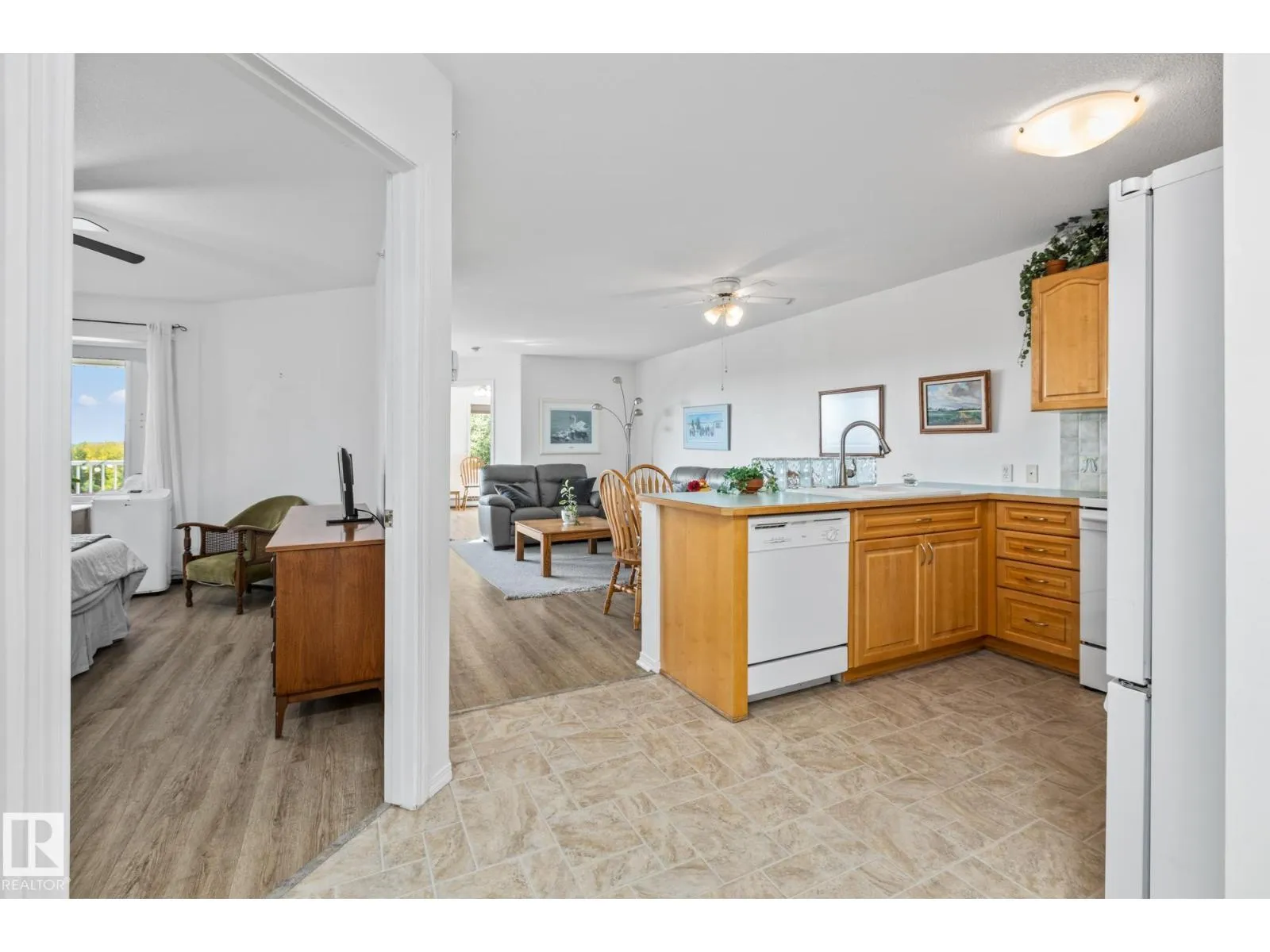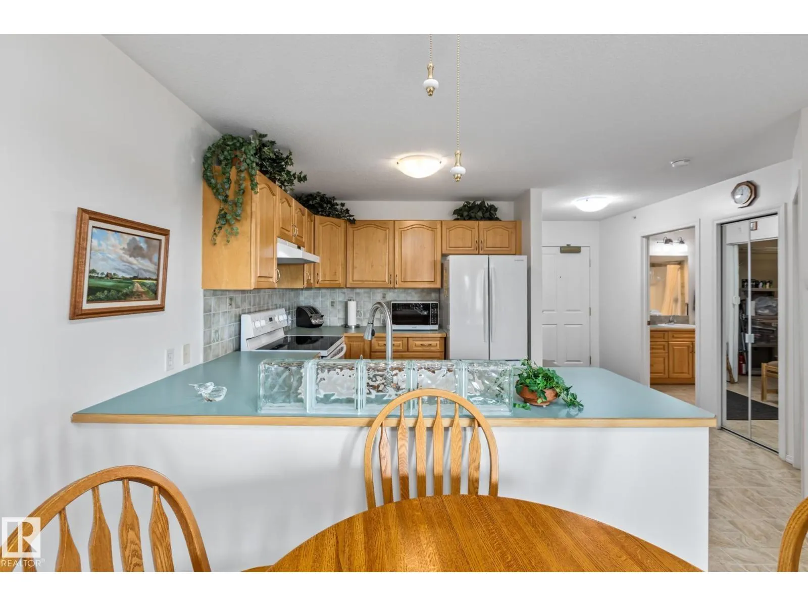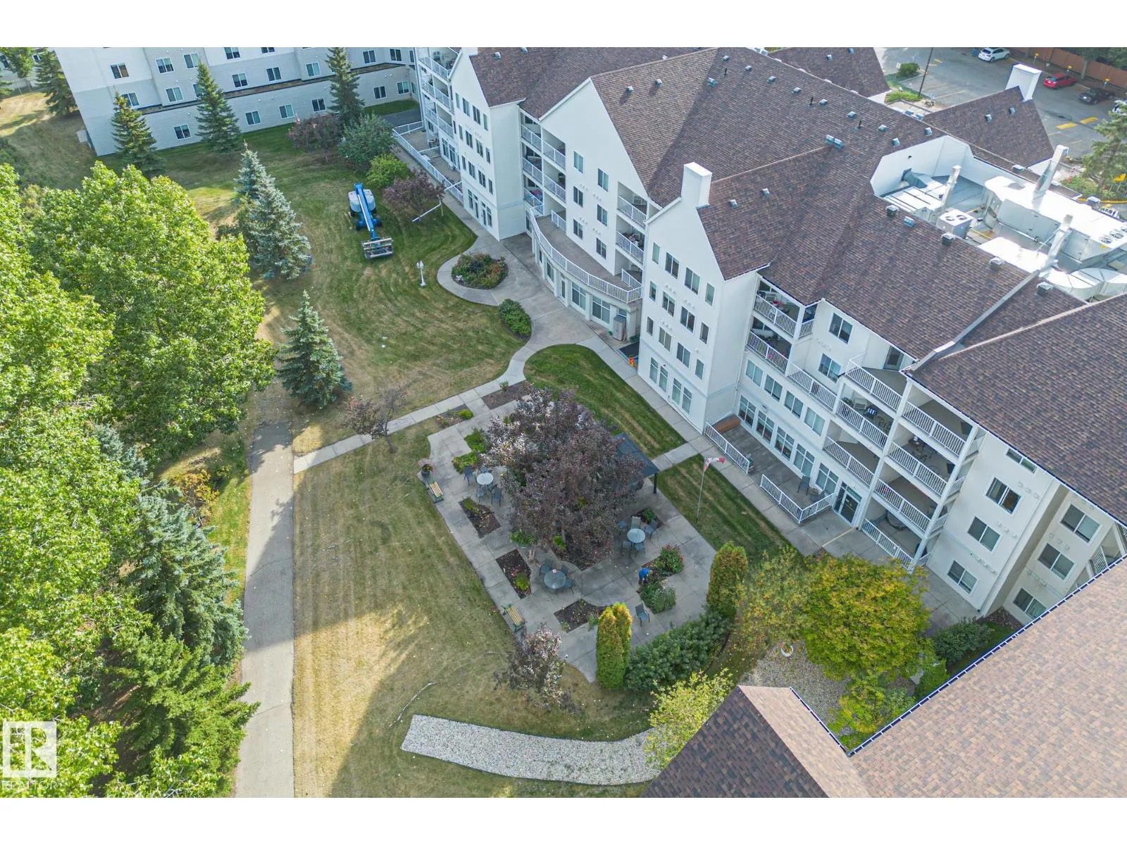 Have you been on the fence about moving into an adult community? Well here is your sign! Not only are you able to own your place you have such a variety of amenities without ever leaving. From the large dining hall where meals are served daily and multiple sitting areas for socializing to the gym, sewing room, pool table and others! There is truly something for everyone here. Plus beautiful outdoor spaces surrounded by flowers. Inside this 2 bedroom 813 SQFT home is just as lovely. With a large full laundry room with plenty of storage space. A full bathroom that has space to accommodate mobility aids and a heat lamp. The ample open kitchen looks over the main living space and tons of windows letting all the sun in. The primary suite leaves room for a king-size bed and bureaus. A second bedroom is perfect for an office space. Enjoy your morning coffee on your private balcony overlooking St. Albert. Close to shops, restaurants, walking trails and more. This is the adult living dream! (id:27476)