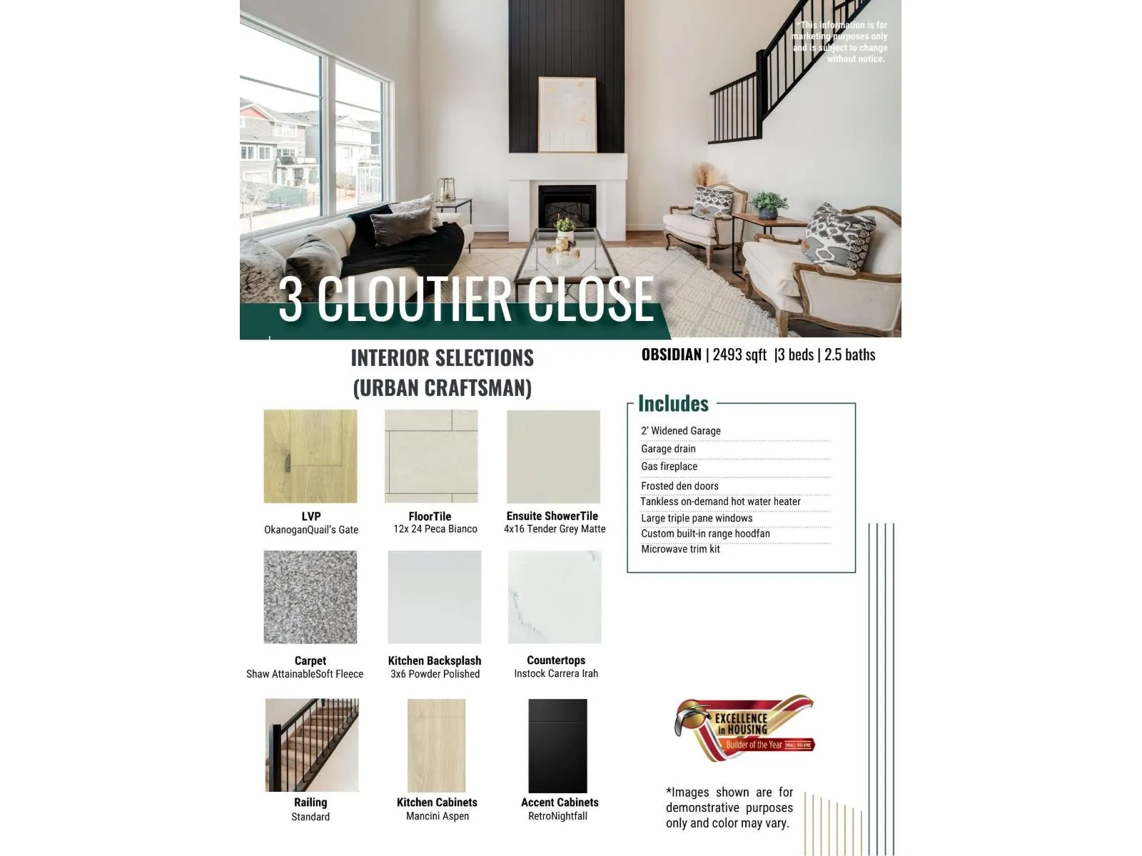 Welcome to the OBSIDIAN model by award winning builder Justin Gray Homes! This model designed in the professionally curated Urban Craftsman colour palette is sure to impress! With just under 2500sqft of living space, this home is the perfect place for those with growing families to call home. The main floor presents an open concept living space, featuring a GAS FIREPLACE, a private DEN w/frosted doors, a chef inspired kitchen w/arched walkthrough pantry and a 2pc bathroom. The large triple pane windows provided in this home also guarantee a ton of NATURAL LIGHT in almost every location of this home. Upstairs, you'll find plush carpet throughout your large BONUS room and all 3 bedrooms as well as the ideal upstairs laundry unit added for your convenience. The breathtaking primary suite w/tray ceilings offers a sleek 5piece ensuite alongside a spacious walk-in closet. Situated on a 30' pocket lot in St. Albert's 2025 best new community. *Photos of similar model,finishes/layout may differ* (id:27476)