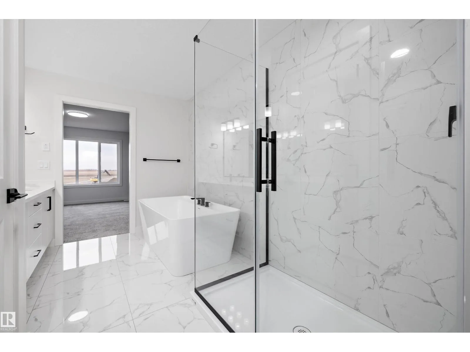 Welcome to this brand new 2115 SQFT, Chelsea Model by award winning builder Blackstone Homes in upscale Cherot St. Albert. Upon entering you will be welcomed by nice foyer finished with beautiful wainscoting leading to a much needed bedroom, perfect for work from home days,/guest, mudroom with built ins, walk through pantry leading to beautiful kitchen with huge island. Dining room with nice windows overlooking the backyard with beautiful deck. Great room offers 18' open to below ceiling with linear fireplace with tiles & coffered ceiling. The 2nd floor offers 3 big size bedrooms, bonus room. Big size master bedroom with beautiful spa like ensuite offering double sinks, shower & freestanding tub, WIC with access to laundry. Other features - Upgraded architecture w/ black windows, Separate entrance, 9' main/basement ceiling, upgraded shower with 10mm frameless door, MDF shelving, feature walls, black plumbing and quartz, all appliances, New Home Warranty. Close to park & shopping and Ray Gibbons Dr. (id:27476)