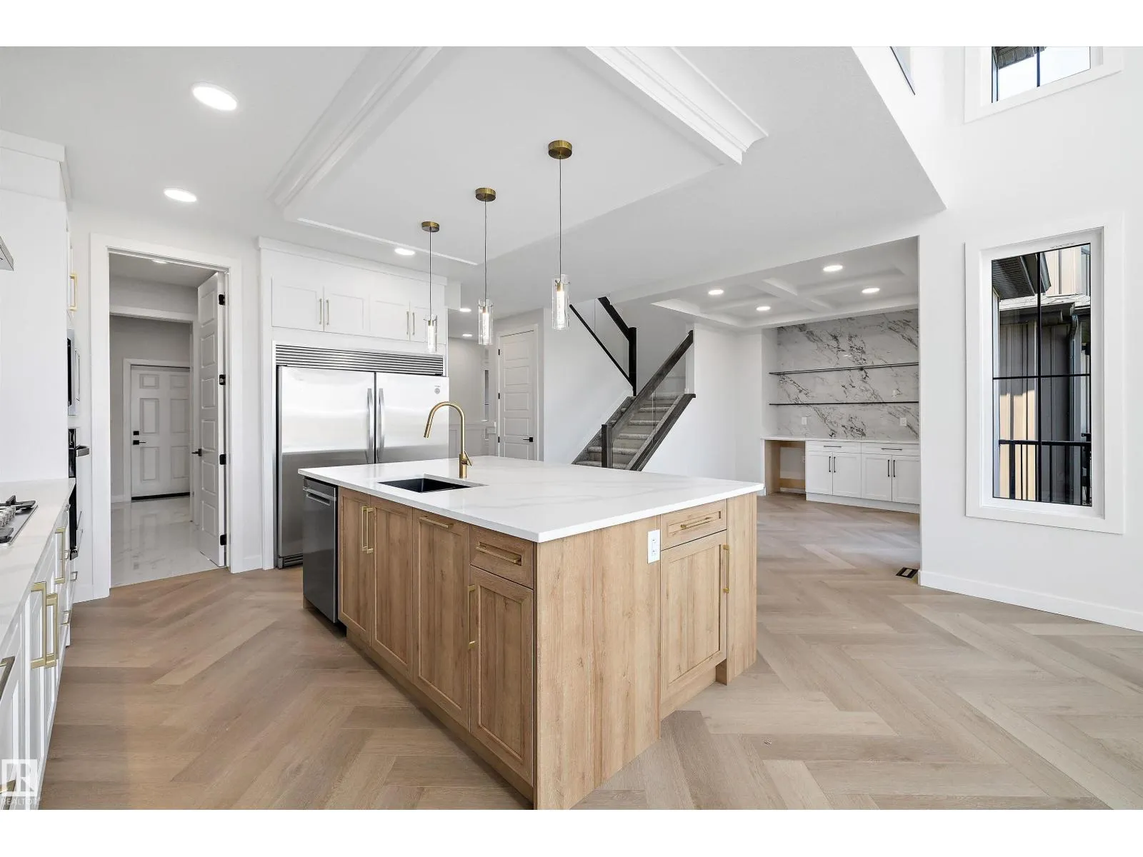 Welcome to this beautiful WALKOUT 2381 SQFT award winning OXFORD model by BLACKSTONE HOMES in Cherot, in St. Albert offering the exceptional architectural & magnificent PARIS Playground making this neighbourhood unique. This model won the best home with BILD awards 2024. As you enter, you will be impressed by the huge foyer, main floor den, dining room with bar, great room offering open to below high ceiling with coffered ceiling, linear fireplace with stone wall, chef's dream kitchen with up to the ceiling & soft closing cabinets with huge island & much needed mudroom with built ins and bench. On the 2nd floor you will find 3 bedrooms, 2 baths, laundry room, bonus room with fireplace & overlooking the great room. Master bedroom offers luxury ensuite with double sink, frameless upgraded shower, tub and huge WIC. Other features - 9' main/basement ceiling, upgrade quartz , MDF Shelving, black plumbing & fixtures, Built in appliances in Kitchen, New Home Warranty. Close to all amenities and Ray Gibbons dr. (id:27476)