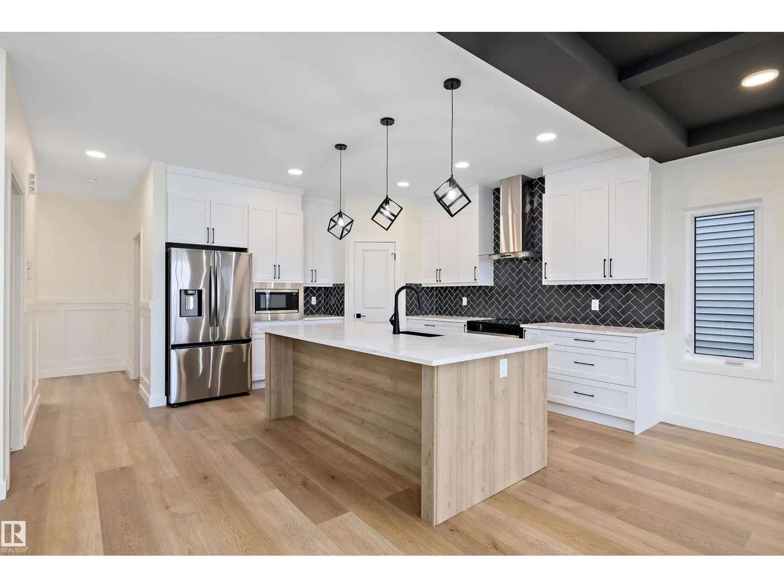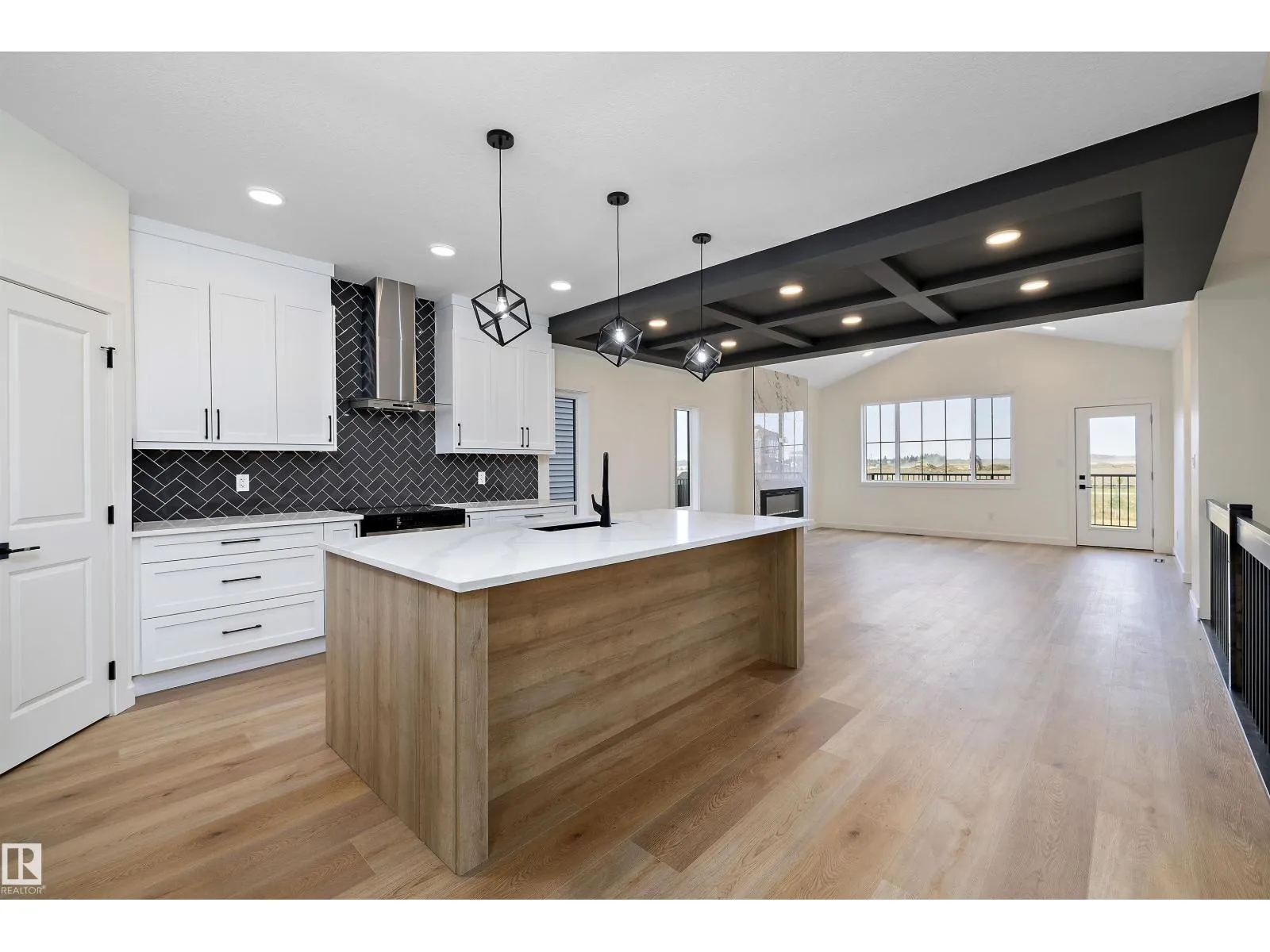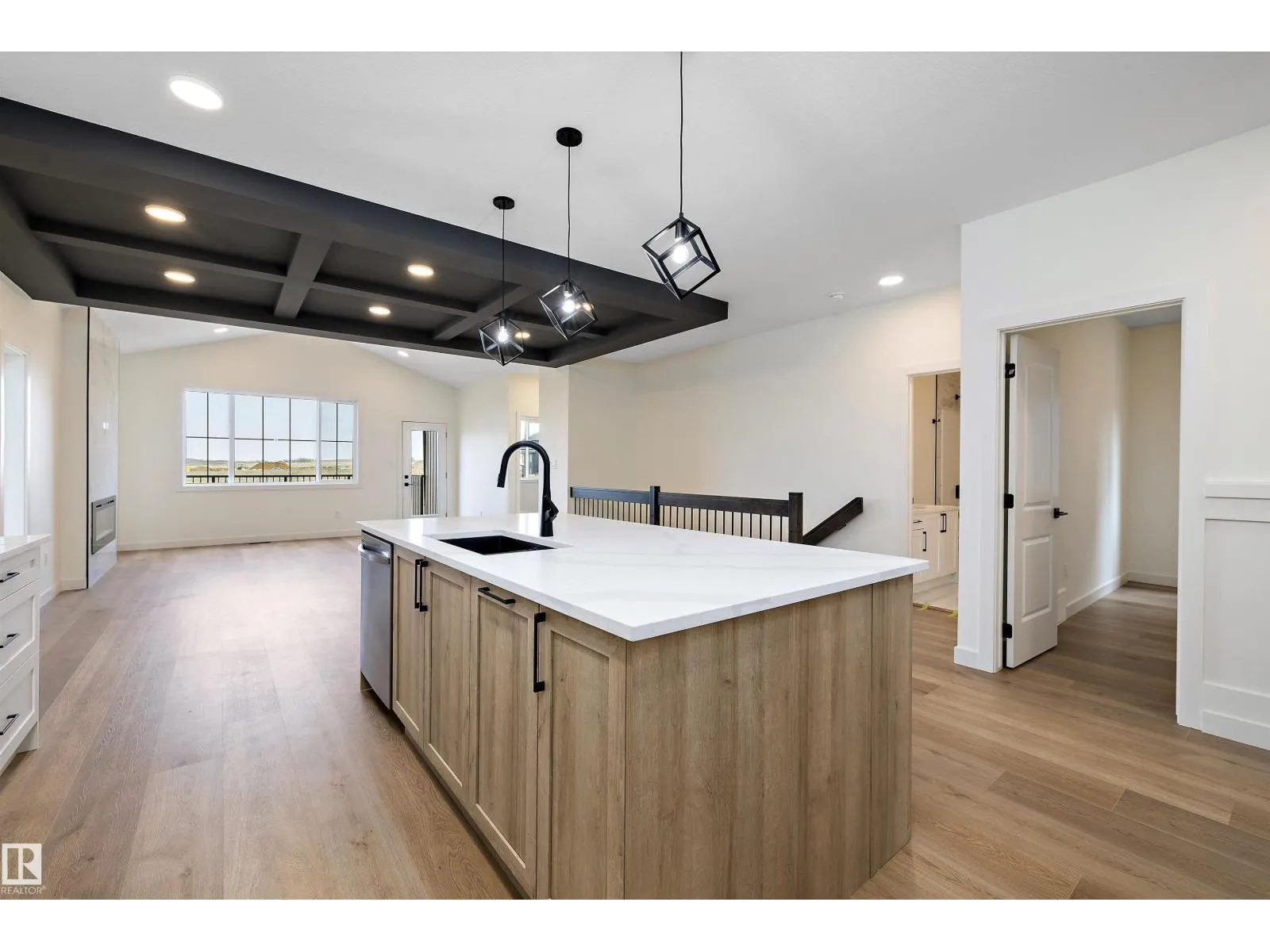 Welcome to this beautiful WALKOUT 1504 Sq.ft award winning Coventry Bungalow built by Blackstone Homes in Cherot St. Albert. The exceptional architectural & magnificent PARIS Playground makes this neighbourhood unique.This home has won the best home with Canadian Home Building Association. Upon entering you will be impressed by the huge foyer with beautiful wainscotting. Built in chef's dream kitchen offering up to the ceiling cabinets large island open to dining room with beautiful coffered ceilings. Great room with vaulted ceilings & fireplace with up to the ceiling tiles. On the main floor you will find huge Master bedroom with beautiful ensuite - stand alone tub, double sinks shower & 10MM frameless glass, Mudroom with bench, built ins & laundry. Other features - MDF shelving, walkout deck with metal railing, feature wall, black plumbing and fixtures, maple railing, quartz countertops, 9' main & basement ceilings & Alberta New home warranty. Close to park and Ray Gibbons Dr. (id:27476)