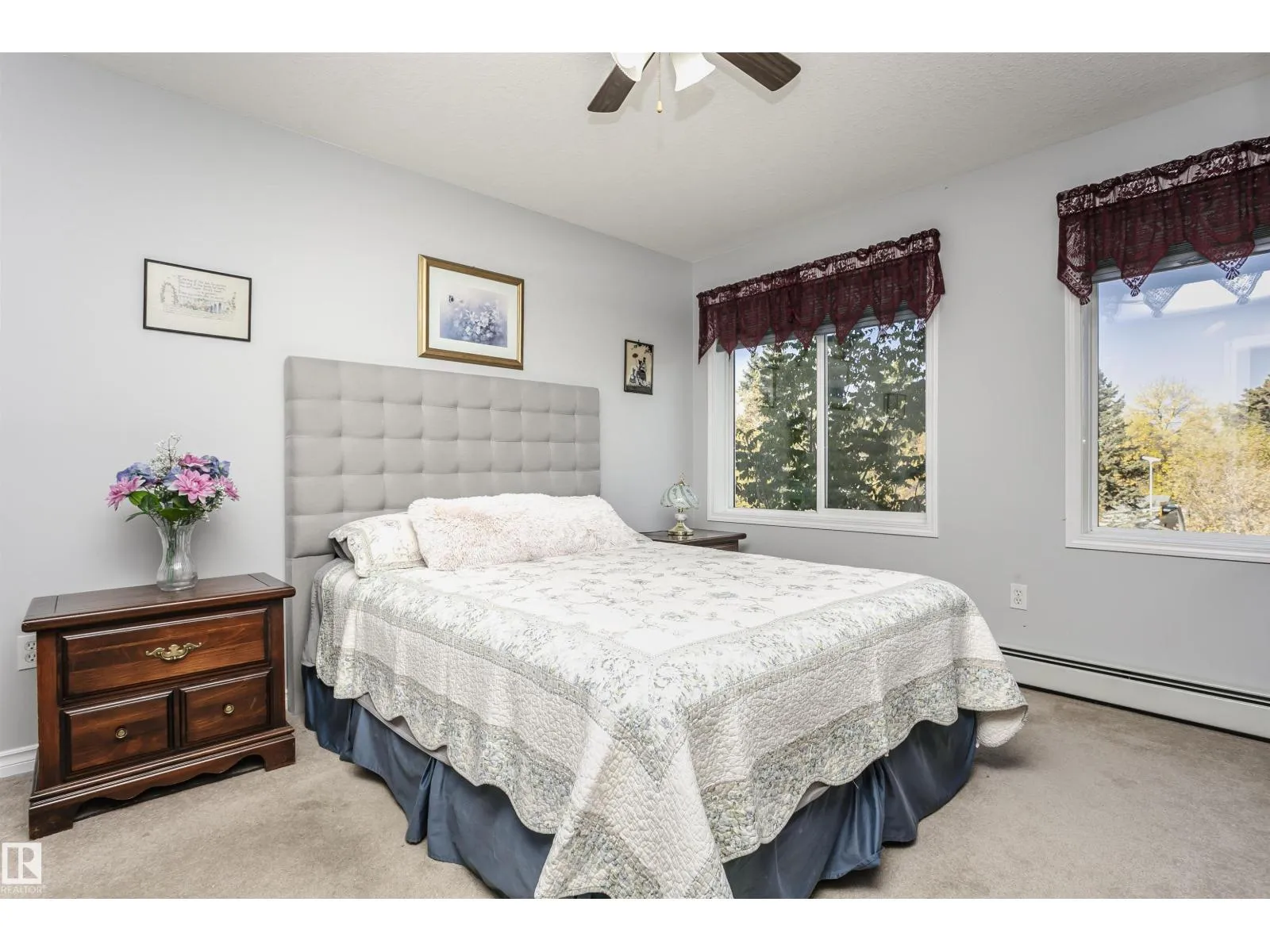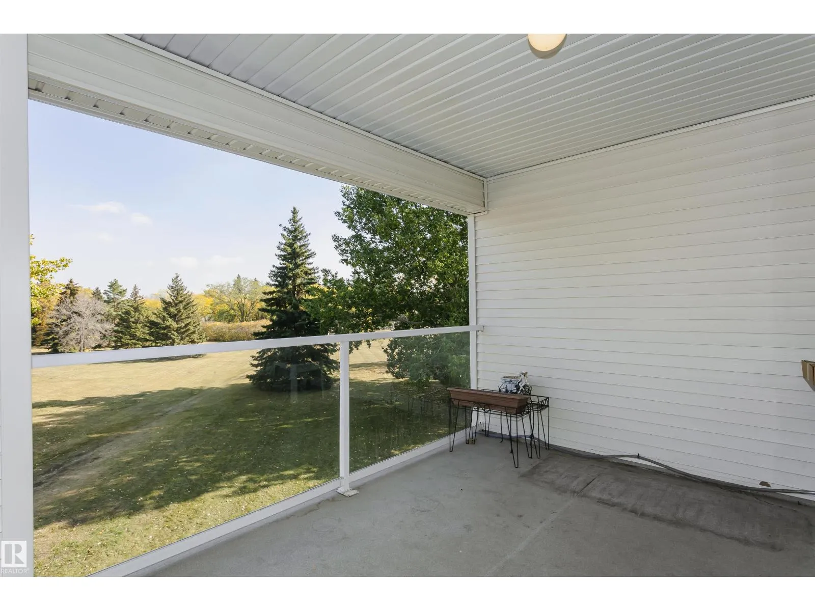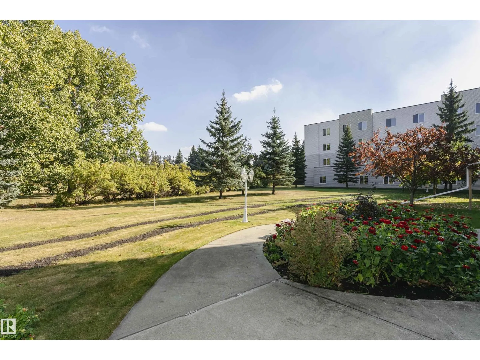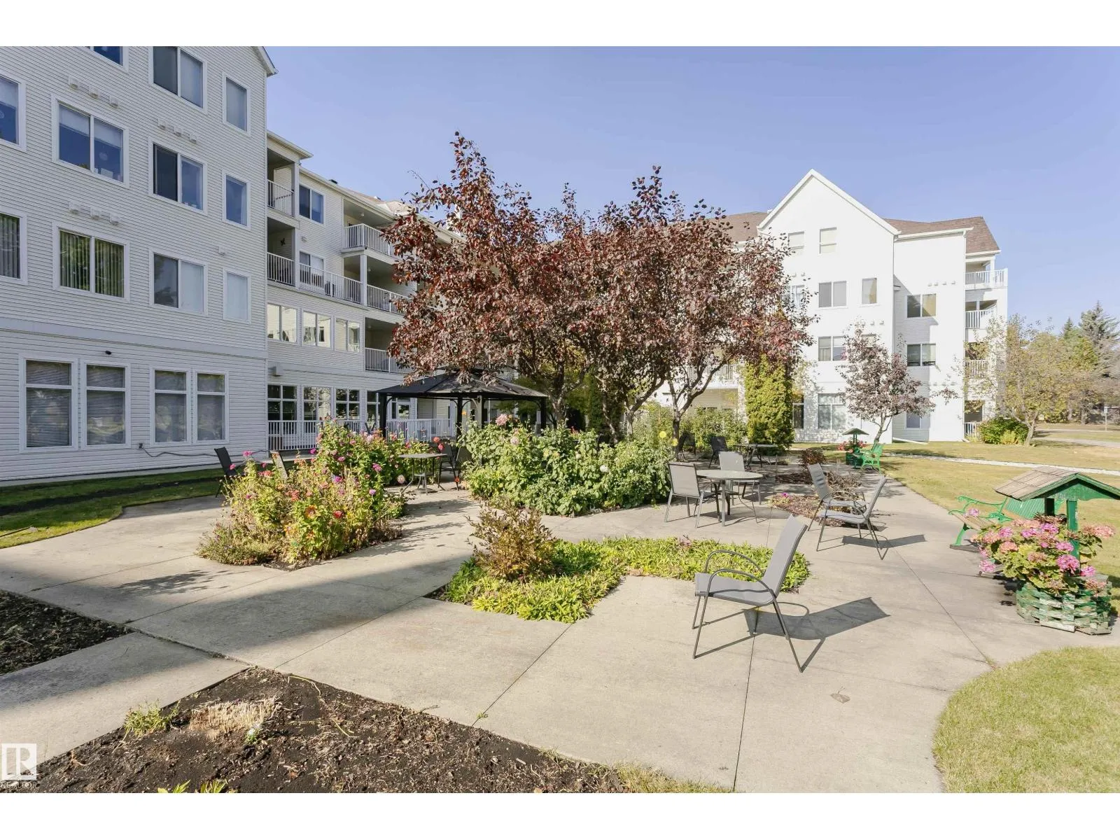 ACTIVE ADULT LIVING AT ITâS FINEST! Large windows in this corner unit offer tons of natural light. The spacious living area leads to an expansive balcony with a view of the green space. The primary suite offers a walk through closet & 2 pc. bath. The 2nd bedroom could be used as a den, media room, craft room, etc. The 4 pc. main bath features a custom walk-in tub/shower. Enjoy the in-suite laundry/storage room. Recent upgrades include A/C, flooring, paint, S/S appliances, counter tops & remote blinds. The social, community feel in this well-maintained building begins with an on-site manager & features UNSURPASSED AMENITIES such as a library, party room, hair salon, exercise room, woodworking shop, craft room, theatre room, computer area, coffee bar and 4 rental guest suites. A social committee plans indoor activities, excursions, celebrations, craft/bakery sales, etc. A commercial kitchen even prepares meals for those nights you donât feel like cooking. THIS COMPLEX HAS NO EQUAL IN ST. ALBERT!! (id:27476)
