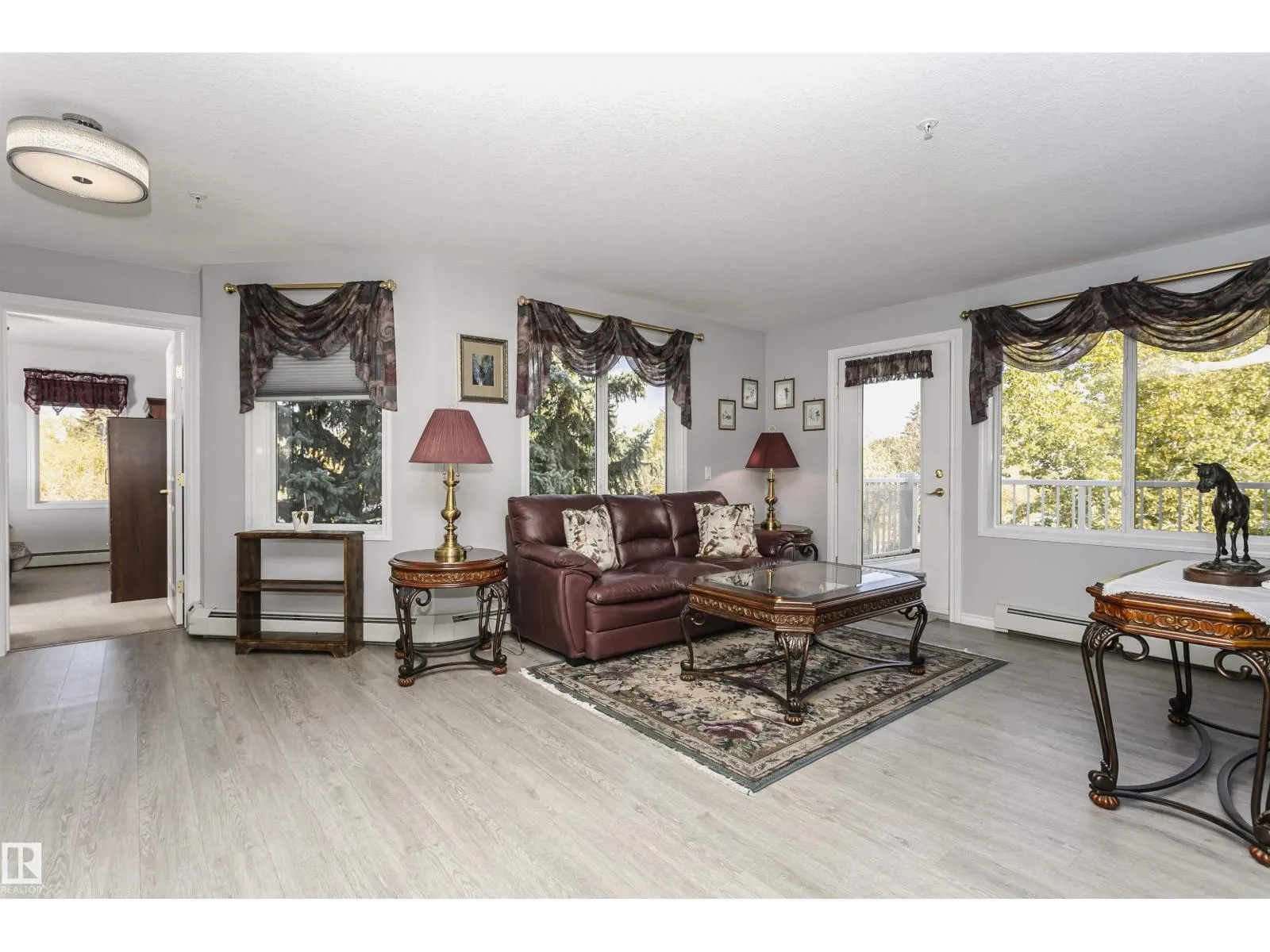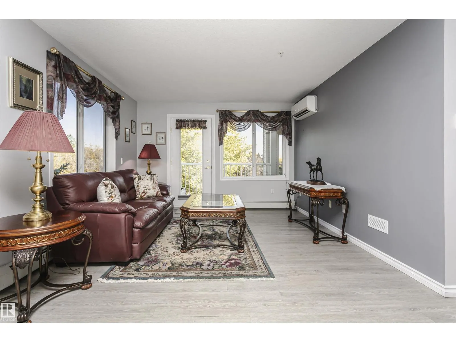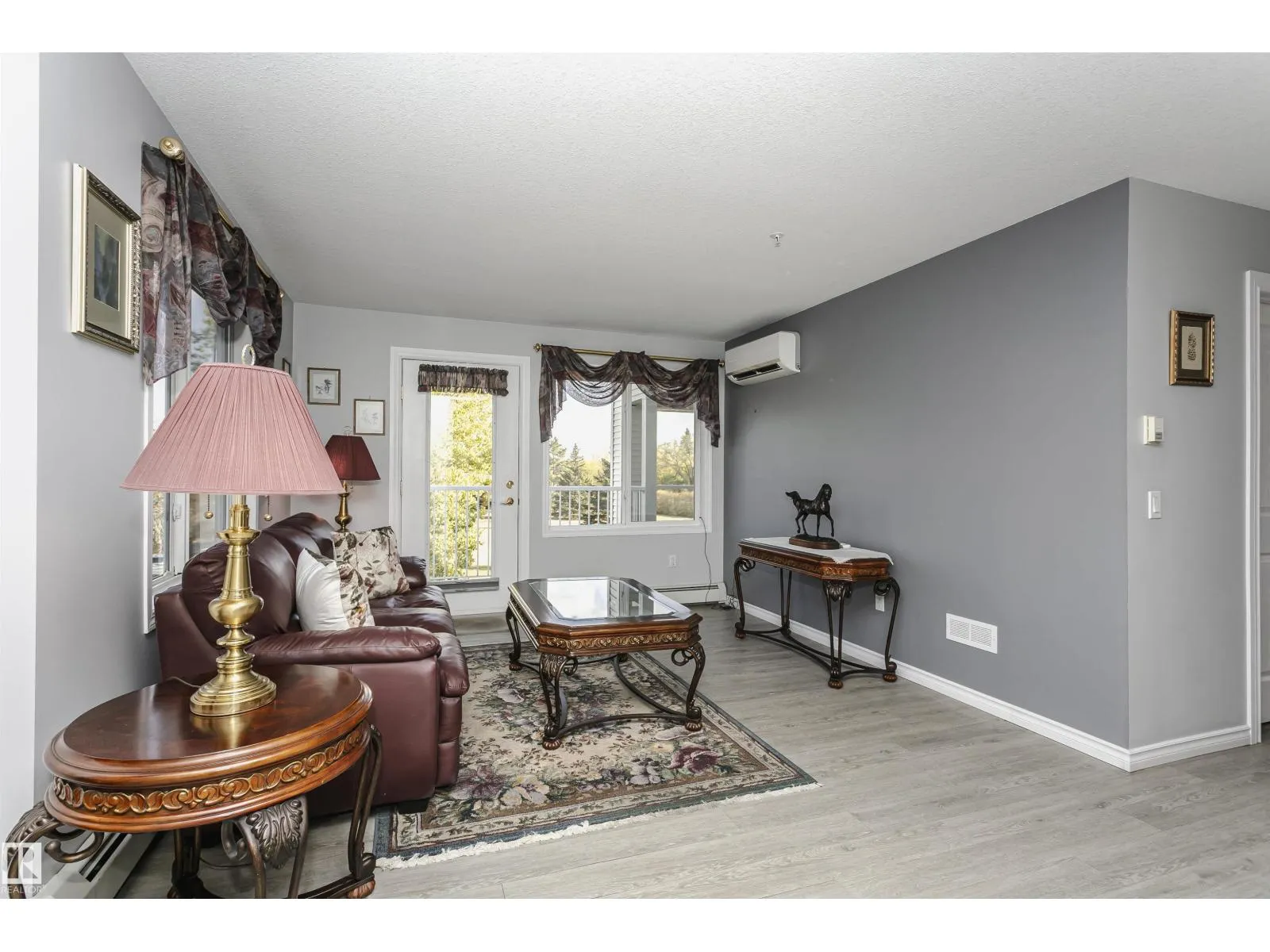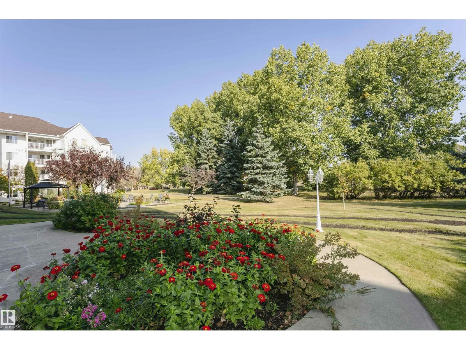 ACTIVE ADULT LIVING AT ITâS FINEST! Large windows in this corner unit offer tons of natural light. The spacious living area leads to an expansive balcony with a view of the green space. The primary suite offers a walk through closet & 2 pc. bath. The 2nd bedroom could be used as a den, media room, craft room, etc. The 4 pc. main bath features a custom walk-in tub/shower. Enjoy the in-suite laundry/storage room. Recent upgrades include A/C, flooring, paint, S/S appliances, counter tops & remote blinds. The social, community feel in this well-maintained building begins with an on-site manager & features UNSURPASSED AMENITIES such as a library, party room, hair salon, exercise room, woodworking shop, craft room, theatre room, computer area, coffee bar and 4 rental guest suites. A social committee plans indoor activities, excursions, celebrations, craft/bakery sales, etc. A commercial kitchen even prepares meals for those nights you donât feel like cooking. THIS COMPLEX HAS NO EQUAL IN ST. ALBERT!! (id:27476)