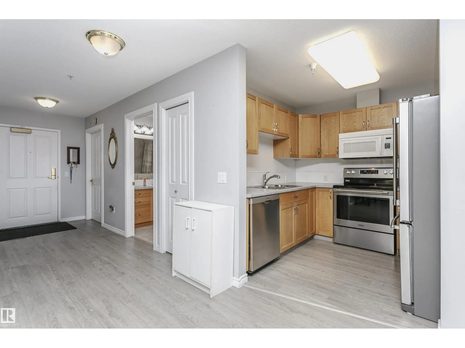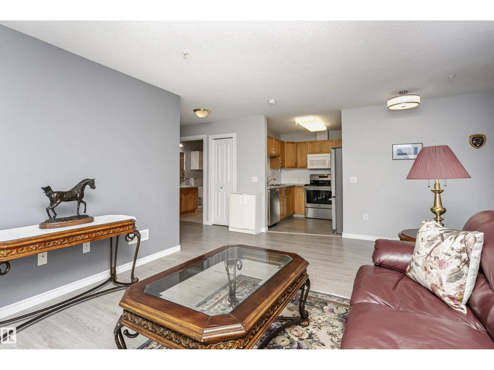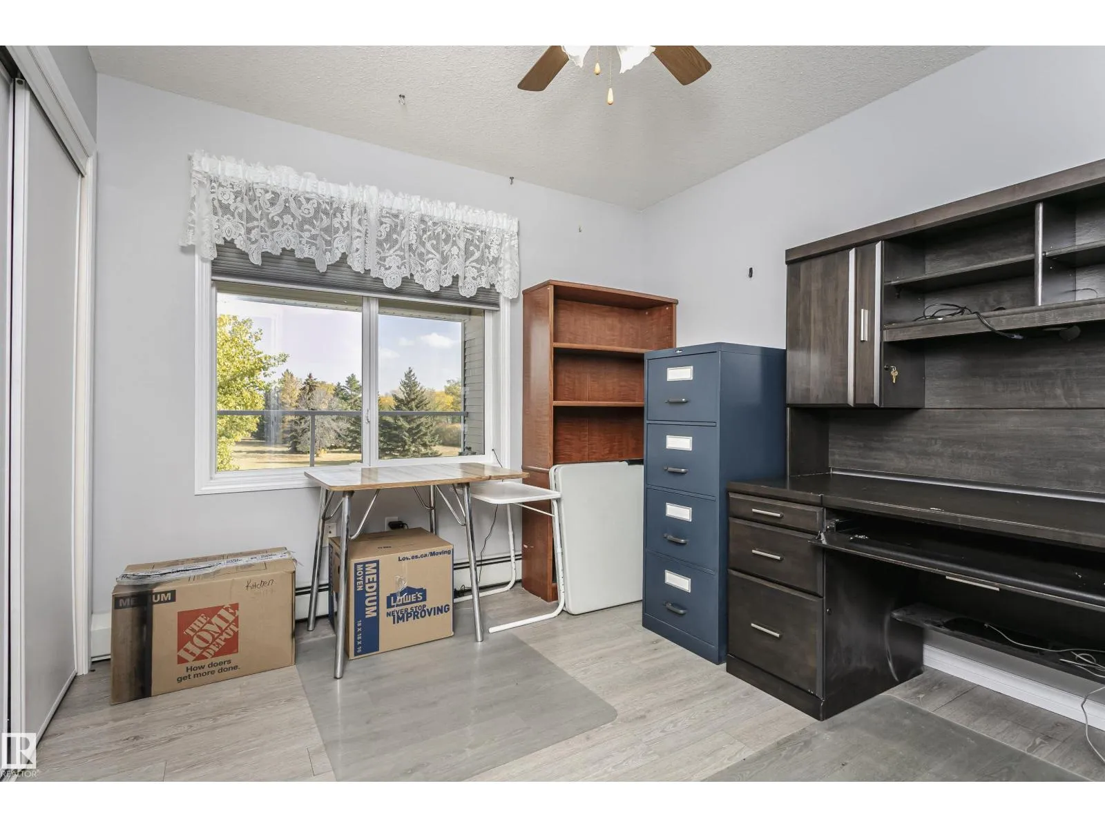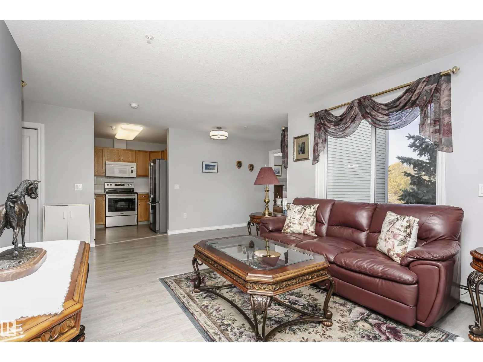 ACTIVE ADULT LIVING AT ITâS FINEST! Large windows in this corner unit offer tons of natural light. The spacious living area leads to an expansive balcony with a view of the green space. The primary suite offers a walk through closet & 2 pc. bath. The 2nd bedroom could be used as a den, media room, craft room, etc. The 4 pc. main bath features a custom walk-in tub/shower. Enjoy the in-suite laundry/storage room. Recent upgrades include A/C, flooring, paint, S/S appliances, counter tops & remote blinds. The social, community feel in this well-maintained building begins with an on-site manager & features UNSURPASSED AMENITIES such as a library, party room, hair salon, exercise room, woodworking shop, craft room, theatre room, computer area, coffee bar and 4 rental guest suites. A social committee plans indoor activities, excursions, celebrations, craft/bakery sales, etc. A commercial kitchen even prepares meals for those nights you donât feel like cooking. THIS COMPLEX HAS NO EQUAL IN ST. ALBERT!! (id:27476)